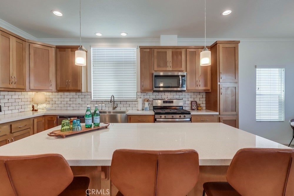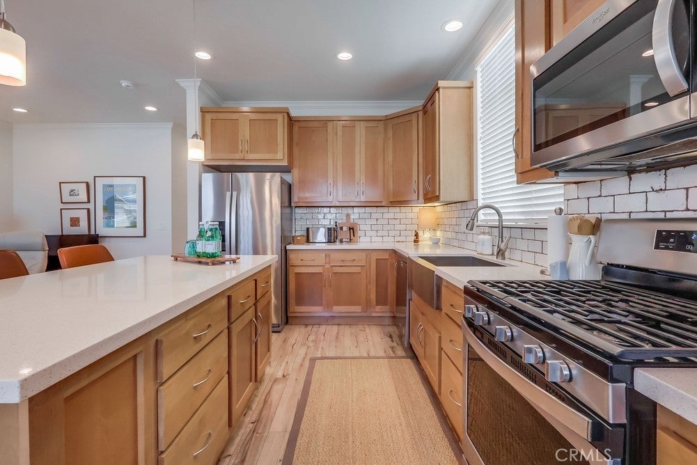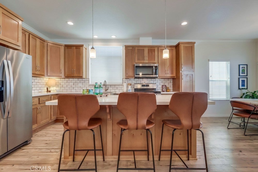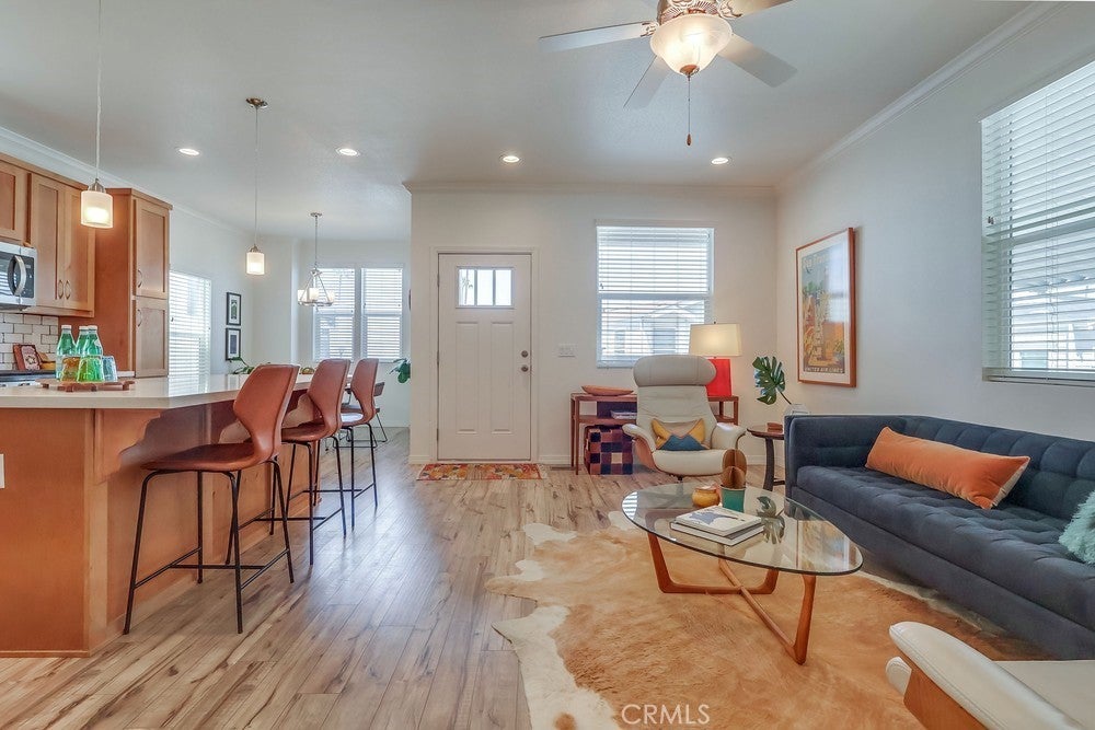 Welcome to 2550 Pacific Coast #143, a spectacular Craftsman-style 2-bedroom, 2-bathroom 1,200 sf designer home in the Skyline Mobile Community! Charming newer 2019 build turnkey home is located on a quiet walk street in an excellent school district. Open & airy home offers tranquility & ease featuring sunrises & sunsets, multiple outdoor seating areas, low maintenance yard, central A/C & heat, dual pane windows, 9-feet high ceilings, laminate floors, ceiling fans, custom blinds & crown molding. As you enter the home you walk into the spacious living room boasting natural light, high ceilings, recessed lights, laminate floors, ceiling fan & custom blinds. Kitchen opens to the living room & dining area. Kitchen is well equipped w/island, storage & shelving, 3-seat breakfast bar, recessed lights, farmhouse sink, stainless steel appliances including gas stove, oven, fridge (w/built-in ice maker/water), microwave, dishwasher, tile backsplash, butternut shaker hardwood cabinets, plentiful countertop space, custom blinds & laminate floors. Cozy dining area stuns w/exquisite chandelier, laminate floors & 3 windows pouring in natural light. Primary bedroom features massive closet, new carpet, ceiling fan, natural light, high ceilings, recessed lights & bathroom ensuite. Primary bathroom showcases soaking tub, walk-in shower, laminate tile floors, dual sink vanity, Quartz countertops, butternut hardwood cabinets & linen closet. Guest bedroom is the perfect size to convert to an office & home gym! Guest bedroom offers plentiful closet space, ceiling fan, laminate floors, custom blinds & exquisite wallpaper. Guest bathroom has a tub/shower combo, single sink vanity, butternut hardwood cabinets, Quartz countertops, recessed lights, medicine cabinet & laminate tile floors. Laundry room comes fully equipped w/washer & dryer, cabinets for storage & pet door. Exterior home offers quaint Trex deck w/brick skirting & garden planter, low maintenance landscaping & spacious back patio/terrace. Carport fits 3 cars on newer concrete driveway. Property taxes are ~$1,400/yr. Home located in excellent school district & near Whole Foods, Trader Joe’s, Starbucks, movie theater, restaurants, hospitals, freeway & beaches. Community boasts amenities including security guard gate, rec center, pool, hot tub, BBQ, billiards, shuffleboard, kitchen, darts, putting green & on-site manager. Monthly events include movies, water aerobics, yoga, poker, line dance, karaoke, guitar, tai chi & Bingo.