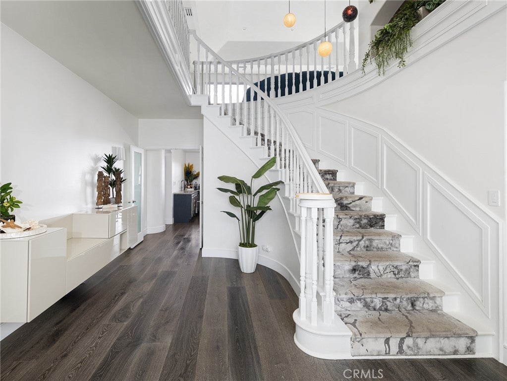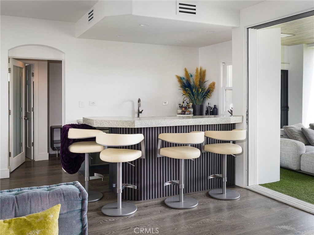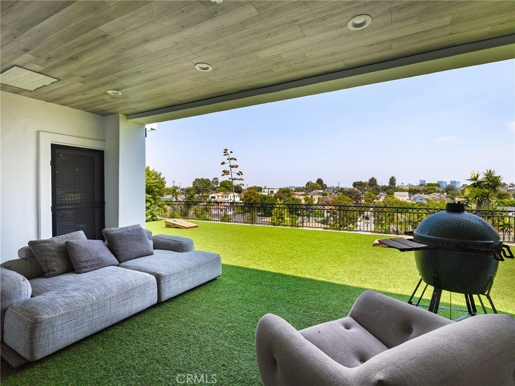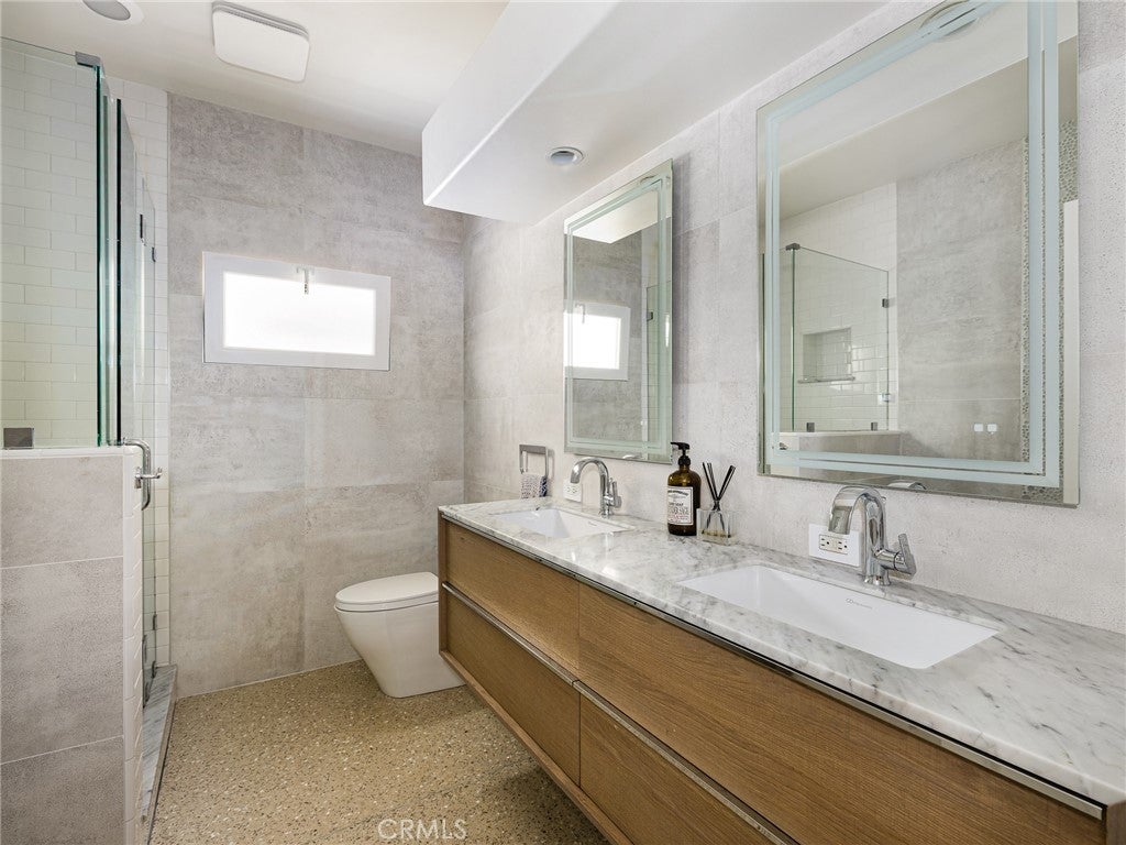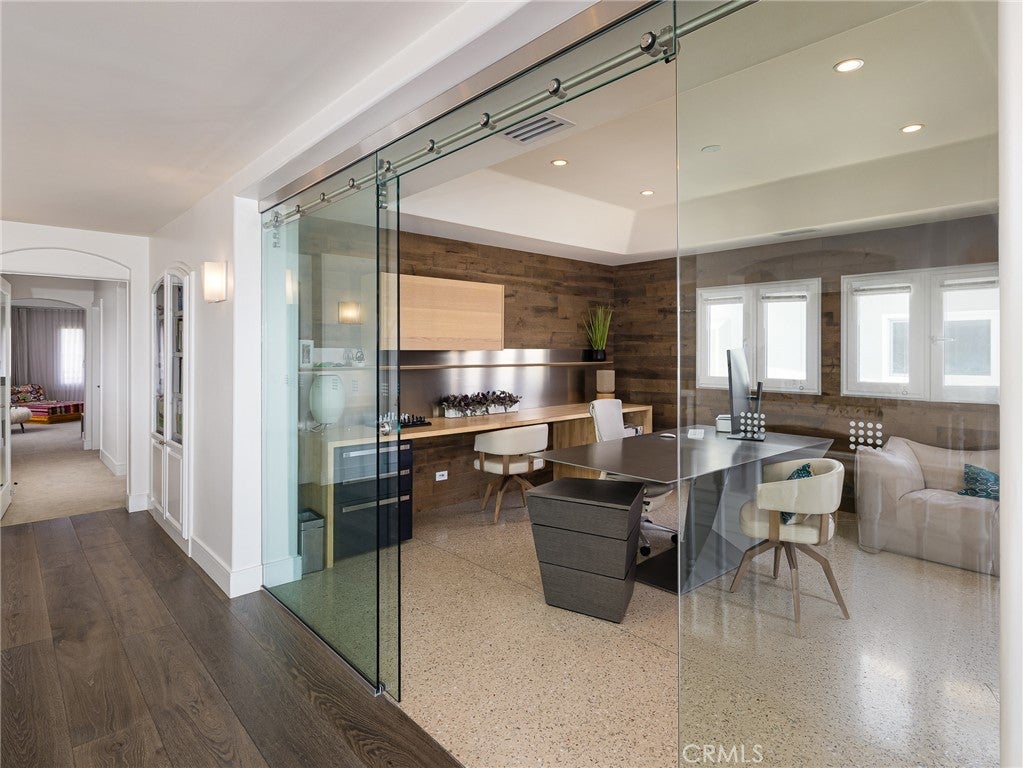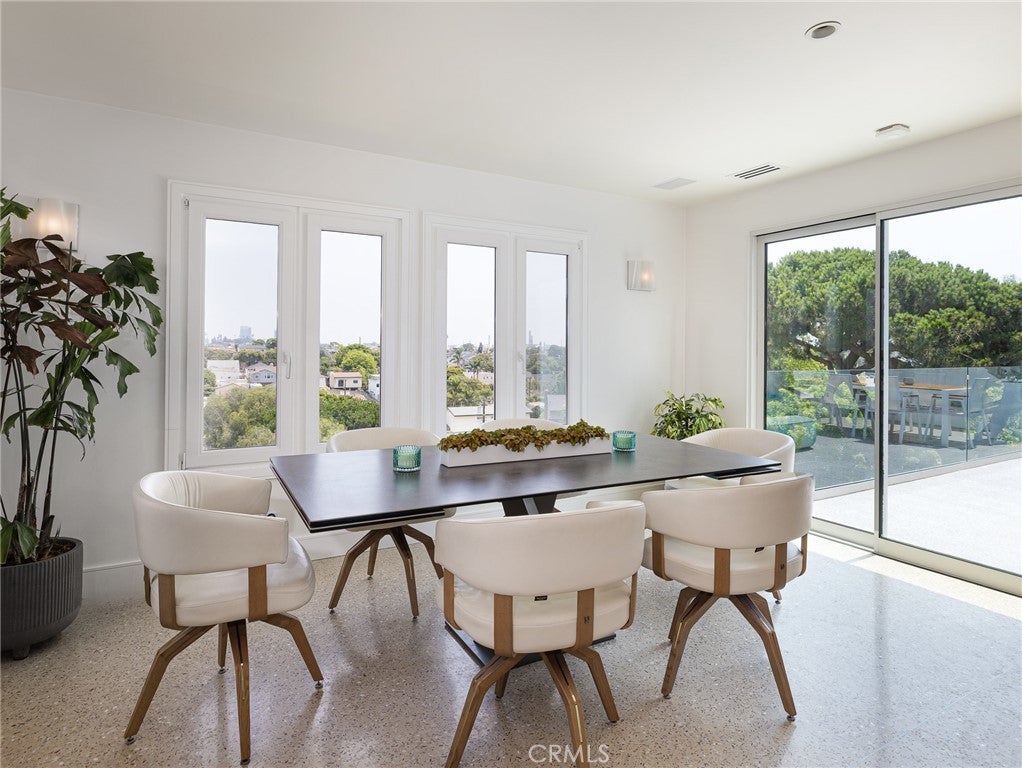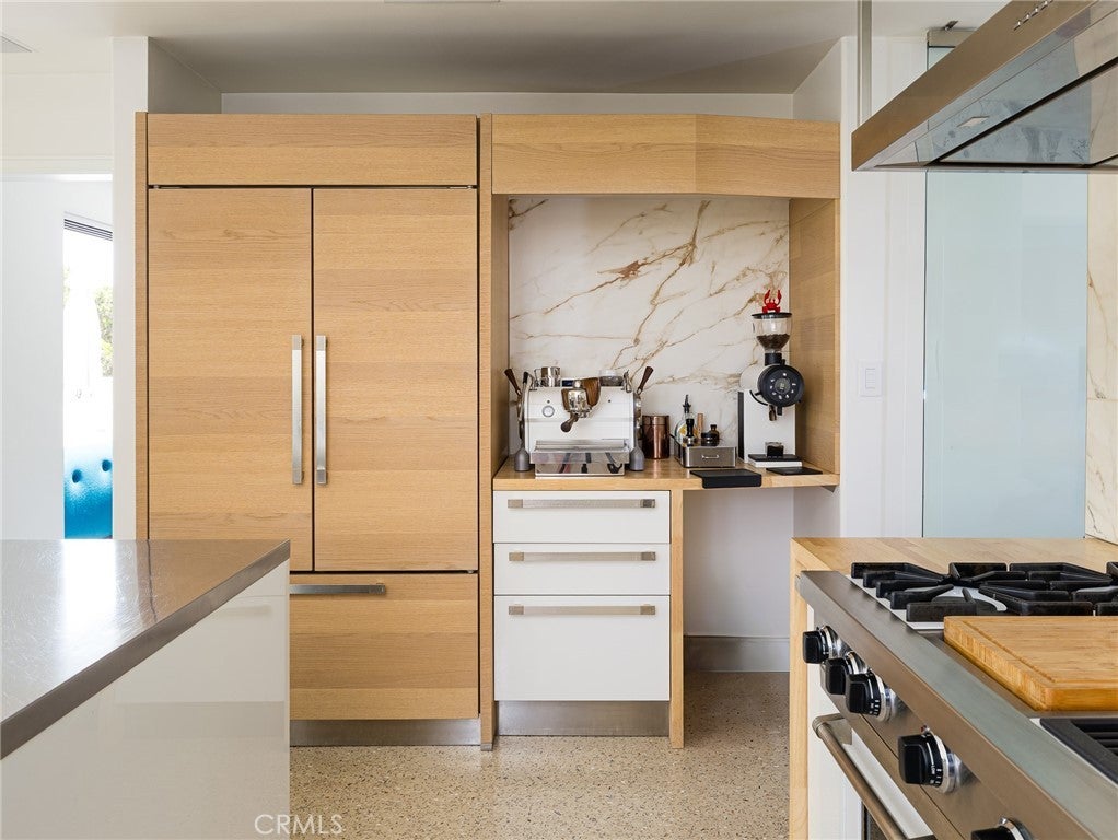 Perched on one of El Segundo’s most elevated and sought-after streets, this fully updated Mediterranean luxury estate sits at the end of a quiet cul-de-sac, offering unobstructed, breathtaking views of the city skyline. With over 4,500 square feet of refined living space, this home was thoughtfully designed for both elegant living and effortless entertaining. Upon entry, you're greeted by a seamless blend of indoor and outdoor living. Both levels feature 16-foot stacking glass multi-slide doors, creating a smooth connection between the sunlit interiors and expansive outdoor terraces. The result is a true entertainer’s dream, where panoramic views and sophisticated finishes set the tone. The first floor offers a media and entertainment space unlike any other, complete with a 97” Samsung TV, embedded Bowers & Wilkins speakers, a handcrafted terrazzo glass bar, sleek fireplace, wet bar, and custom feature wall. Slide open the aforementioned doors to reveal a beautifully remodeled backyard perfect for entertaining. This level also includes a large primary suite with a fully updated bath, a second spa-like bathroom with sauna situated between two spacious bedrooms, and a conveniently located laundry room. Upstairs, the gourmet kitchen—crafted by Euroconcepts of Beverly Hills—features Italian Arclinea custom cabinetry, Sub-Zero refrigeration, Wolf appliances, an espresso bar, floating hood, and sweeping neighborhood and park views. The open-concept layout flows into the stylish living room, anchored by a modern fireplace and opening to an expansive deck—ideal for indoor-outdoor gatherings. The second-floor primary suite is a sanctuary of its own, boasting high-end finishes, a huge walk-in closet, a dedicated laundry area, and an updated bathroom with separate tub and shower. Two additional office spaces and another upgraded full bath complete the upper level. Additional highlights include: central AC throughout, a private elevator, an oversized driveway fitting multiple cars, and two separate garages offering a total of 3 garage spaces A rare offering with commanding views, cutting-edge design, and exceptional functionality—this estate is a must-see for buyers seeking luxury living in El Segundo.
