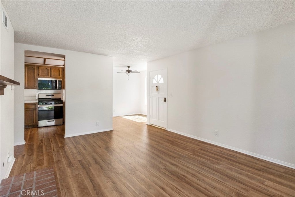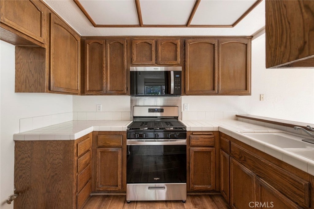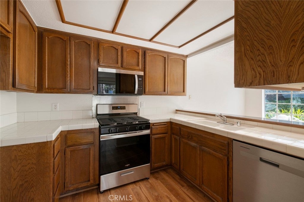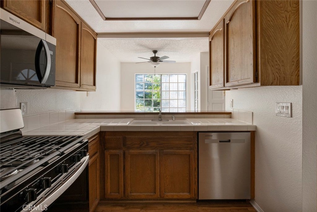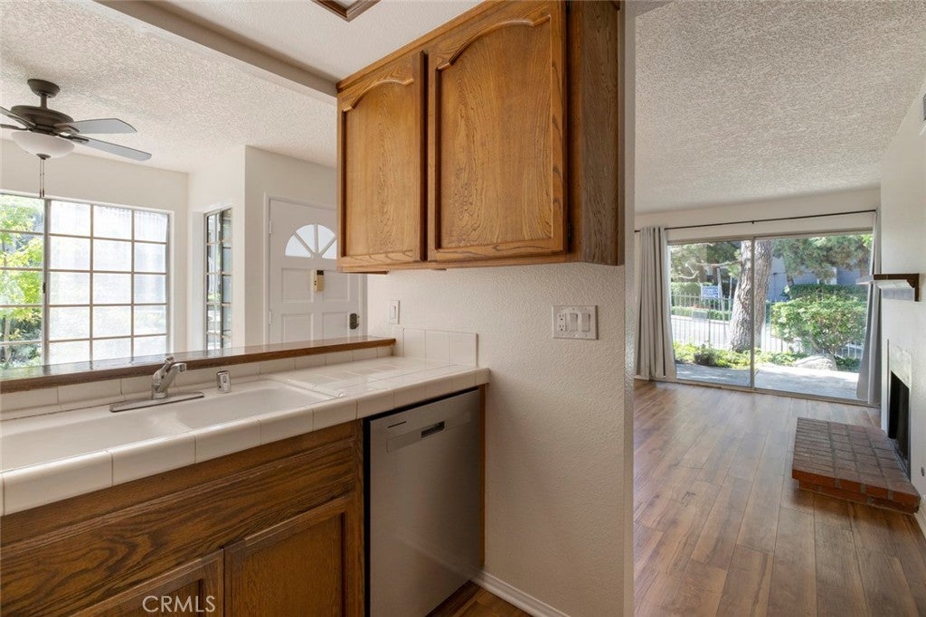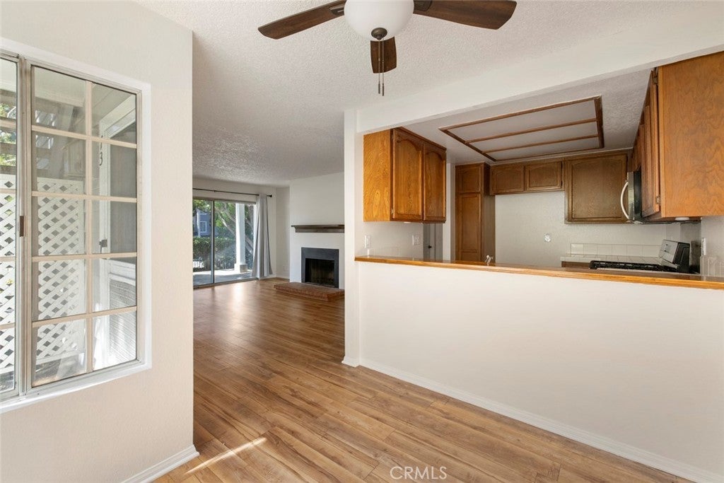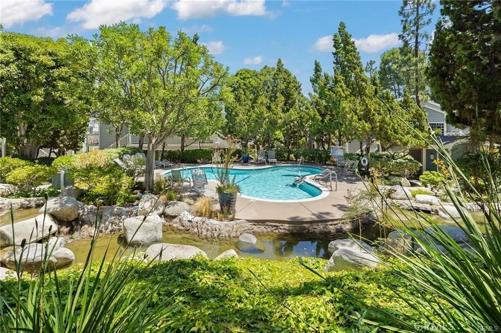 Welcome to Ponderosa Springs! Entering this idyllic, gated community, is like taking a stroll through nature. Known for its lush mature landscaping, calming streams, babbling brooks and cascading waterfalls with multiple swimming pools and spas. Fantastic move-in ready ground level (no stairs) one bedroom condominium flooded with natural light. The convenient location is just steps to Entry Gate D on Capitol Dive with plenty of street parking. A functional floorplan that flows to the private patio. The efficient kitchen features ample cabinet space and brand new appliances which opens to the adjacent dining area. The Living room features a fireplace and sliding glass door leading to the private patio. A serene bedroom retreat provides a spacious walk-in closet. Additional features include air conditioning, updated wide plank laminate flooring through-out, in unit laundry, a good-sized utility closet on the private patio, two designated tandem parking spaces in the secure gated garage plus several additional off street guest parking spaces. This is a must-see property, and one of the most affordable in San Pedro. Close proximity to shopping, restaurants and banking. Easy freeway access! Ready for you to move in & enjoy the tranquility!