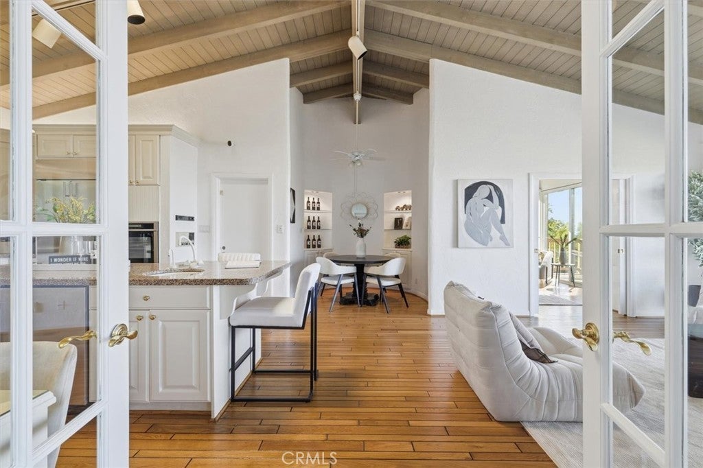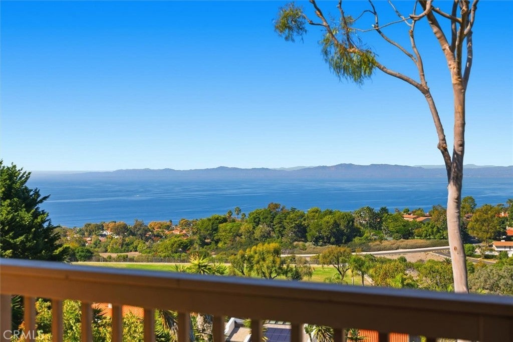 Nestled atop a hillside in exclusive Lunada Bay, this elegant 3,558 square foot home features sweeping panoramic ocean and coastline views from Redondo Beach to Santa Barbara Island. With vaulted ceilings and full-length windows in every room, the home is flooded with natural light, and an inviting wraparound deck offers access to the vista of rolling hills, sky and sea. The main level features a spacious open living room with a fireplace, a skylit chef’s kitchen, including a stylish dining nook, formal dining area, study and family room—ideal for entertaining or relaxing. The gracious primary suite offers two private bathrooms and a cozy fireplace. In total, there are five bedrooms plus a sitting room with its own bath that can serve as a sixth bedroom or guest suite. A flat backyard provides a rare blend of usable outdoor patio and lengthy lawn space to run around. Lovingly maintained and thoughtfully designed for gatherings, this home offers a rare opportunity to experience breathtaking sunsets and timeless California living in gorgeous Palos Verdes Estates.