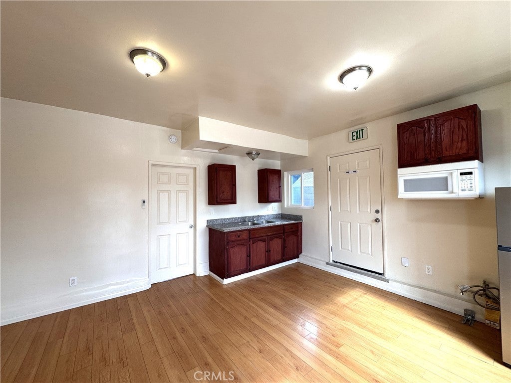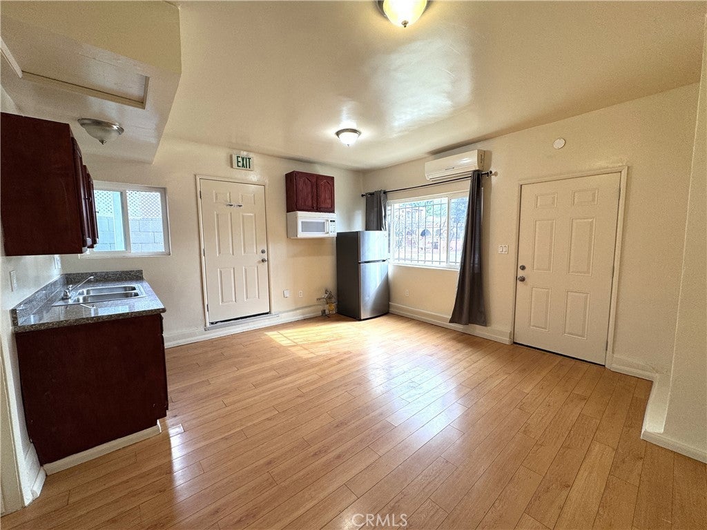Check out this ground floor, 1 bedroom 1 bathroom apartment in Los Angeles! This freshly painted unit features hardwood flooring throughout, blinds for your privacy and comfort, and a nice, deep mirrored closet! The kitchen showcases quartz counter-tops, a double sink, handsome wood cabinets, a stainless steel stove, microwave, and refrigerator. Bedroom includes an AC wall unit. Bathroom includes vanity like lighting and a ample stand-up shower. Located near Hyde Park Branch Library, Edward Vincent Jr. Park, Harvard Park, Mann UCLA Community School and all the food and shops this area has to offer.