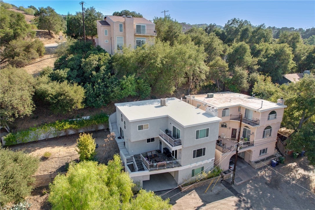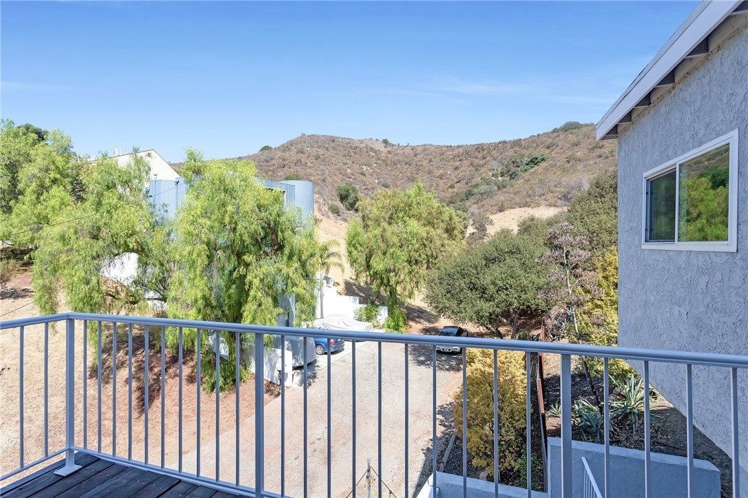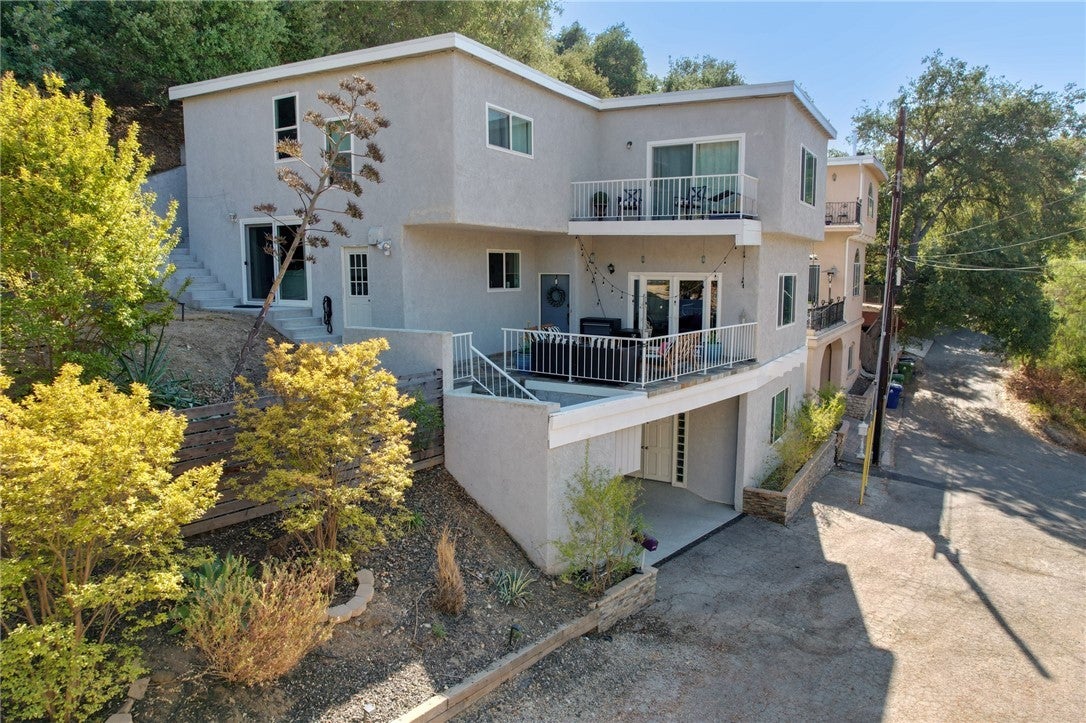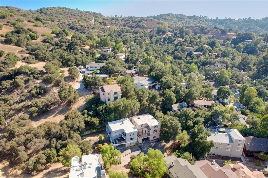 Do you like the tranquility of being in the outdoors? If so, then this home is for you! Located on a quiet cul-de-sac street surrounded by lush trees and just a stone throws away from incredible hiking trails that will take you to Mulholand while you enjoy all the beautiful mountain scenery. This large 4-bedroom 3 bath home sits on 2 separate parcels with separate APN's giving you plenty of space to possibly build an ADU or other possibilities. There are plenty of outdoor sitting areas for you to entertain and take in the incredible views from the large porch. The home has high ceilings, newer windows and doors letting in all that natural light. there are 2 separate living rooms giving you ample space for entertaining. The home has 2 fireplaces, 1 in the living room and another in the large primary suite. all 4 bedrooms are on the upper floor with a remodeled bathroom between bedrooms and a remodeled bathroom in the primary suite with large walk-in shower and soaking tub. there are dual sinks vanities a walk-in closet and a balcony with incredible mountain views, perfect for those relaxing mornings. Connected to the living room is a dining room that is right off the kitchen. Adjacent to the kitchen is the laundry room with a door that leads out to the side property. The adjacent property has sprinklers as well as a drip irrigation system and a wood fence. The 384 square foot bonus space on the ground level has dual entry doors and would make a great office space, studio, workshop or a possible rental unit. Come see what this fabulous home has to offer.