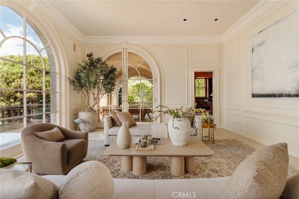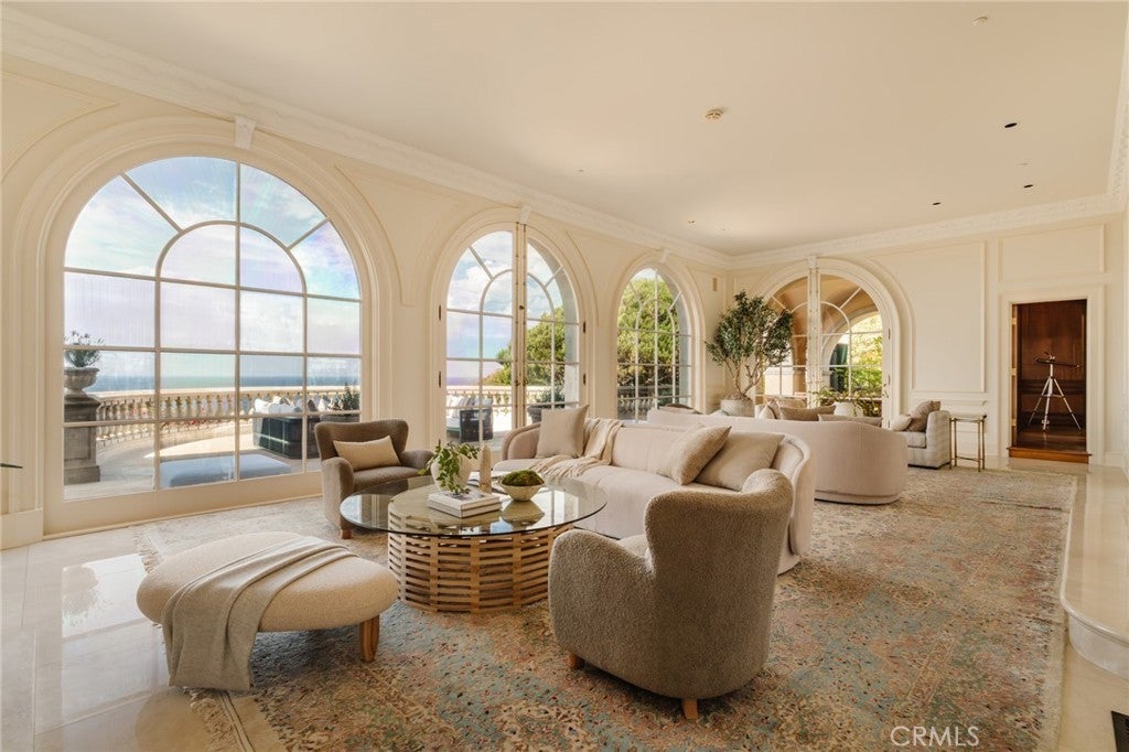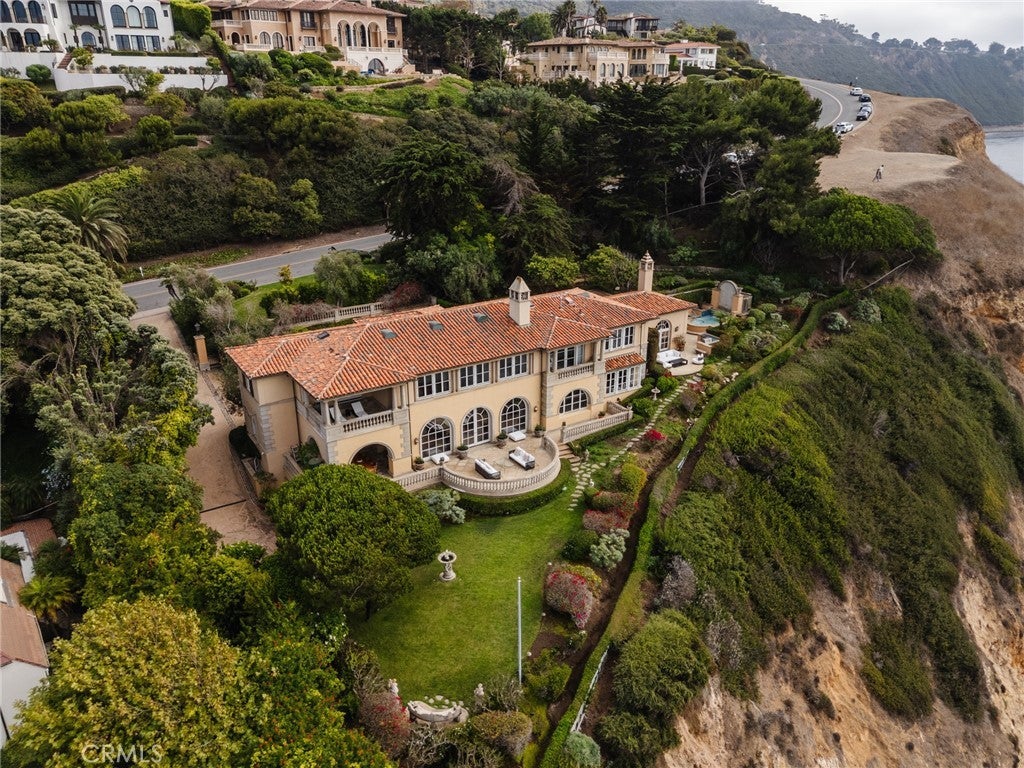 Pedigree. Timeless. Irreplaceable. Set behind a gated private drive, 609 Paseo Del Mar, known as Villa Sul Mare (“Villa by the Sea”), is an iconic estate exuding Italian-inspired sophistication. Perched on the bluffs of Malaga Cove, this residence offers a rare blend of European grandeur and California coastal living. With approximately 270 feet of bluff-top frontage, it commands panoramic ocean vistas stretching endlessly across the Southern California coastline. From its red-tiled rooflines to graceful loggias and intricate detailing, every element reflects enduring craftsmanship. An electronic gate opens to dual driveways: a welcoming guest drive and a separate entrance leading to a six-plus car garage with a private elevator serving all three levels of the home. The approach is crowned by a stone tiered fountain and mature landscaping, creating a sense of seclusion and grandeur. Inside, a two-story circular foyer frames the estate’s crown jewel — a wall of arched windows unveiling unobstructed Pacific views. The main level unfolds with a double-sized living room anchored by a commanding fireplace, flowing to a rare half-moon terrace that immerses the home in its coastal setting. A formal dining room adjoins the chef’s kitchen with oversized island, custom range, dual sinks, and breakfast nook. Additional spaces include a regal wood-paneled study with a coffered metal ceiling, a hand-painted powder room, an inviting family room with bar, and direct access to the spa and grounds. Upstairs, three secondary bedrooms — one ensuite, two with Jack-and-Jill bath — balance comfort and privacy. The primary suite lives like a residence within itself, with a sitting area, fireplace, coffee bar, dual closets, and spa-inspired bath with soaking tub, oversized shower, and terrace overlooking the Pacific. The lower level hosts a wellness center with gym, dedicated massage area, Mr. Steam shower/sauna, and a circular wine room reminiscent of Tuscany. Outdoors, the half-acre grounds unfold with mature trees, intimate pathways, built-in BBQ, oversized spa, and sprawling lawn with potential for pool or sport courts. Discreetly nestled behind its gates, Villa Sul Mare is one of only four estates along this coveted stretch of Paseo Del Mar — and one of only two end lots. With unrivaled architecture, bluff-top frontage, and timeless European character, this irreplaceable estate presents a once-in-a-generation opportunity.