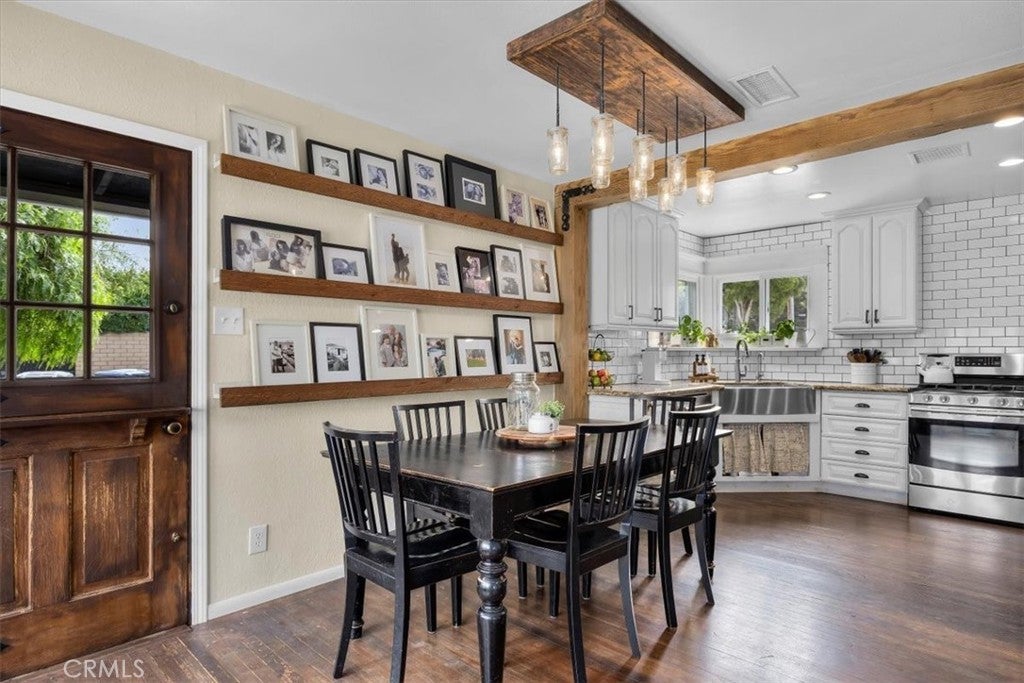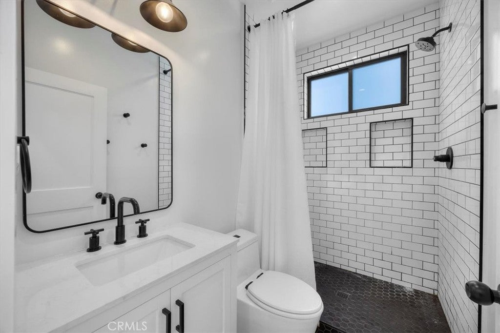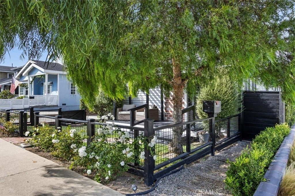 Discover a property that beautifully blends classic charm with modern design, offering 2,708 sq. ft. of versatile living space across a 3 bedroom, 2 bath main residence, a newly built (2024) ADU, a finished recreation room with loft, and an upgraded two-car garage with studio. The main home exudes farmhouse warmth with original hardwood floors, remodeled bathrooms (2020 & 2025), a spacious kitchen with farmhouse sink, subway tile, and granite countertops, plus cozy touches like an electric fireplace. Thoughtful upgrades include central heat and A/C, tankless water heater, copper/PEX plumbing, new roof, solar, and a 200-amp panel (2023). Outdoor living is highlighted by a gated front yard, mature landscaping, automated sprinklers, a new 200 sq. ft. deck, and backyard plumbing for a future fire feature. The newly built (2024) two-story ADU offers a sleek modern contrast, with 2 bedrooms, 2 bathrooms, polished concrete floors, 10’ ceilings, a custom kitchen with new appliances, gas fireplace, upstairs bedrooms with ceiling fans, luxury laminate flooring, and independent solar and utilities. A finished rec room with half bath, kitchenette, and vaulted loft provides additional living or creative space. The polished concrete garage impresses with a full glass high-lift door, beverage refrigerator, custom storage, and a finished studio with wired speakers and A/C. Perfect for multi-generational living, private retreat, or rental income, this unique property blends rustic comfort with modern convenience, all within walking distance to Main Street dining, shops, and the beach, with easy freeway access.