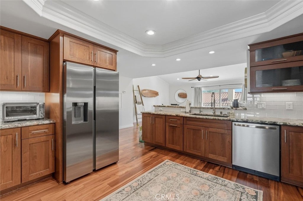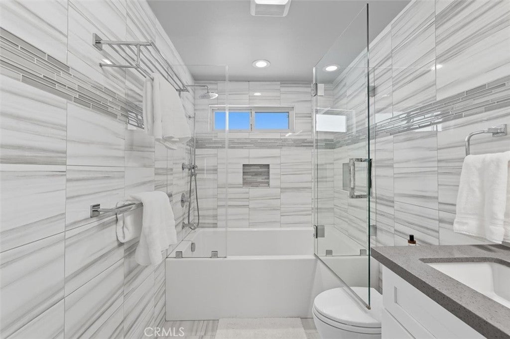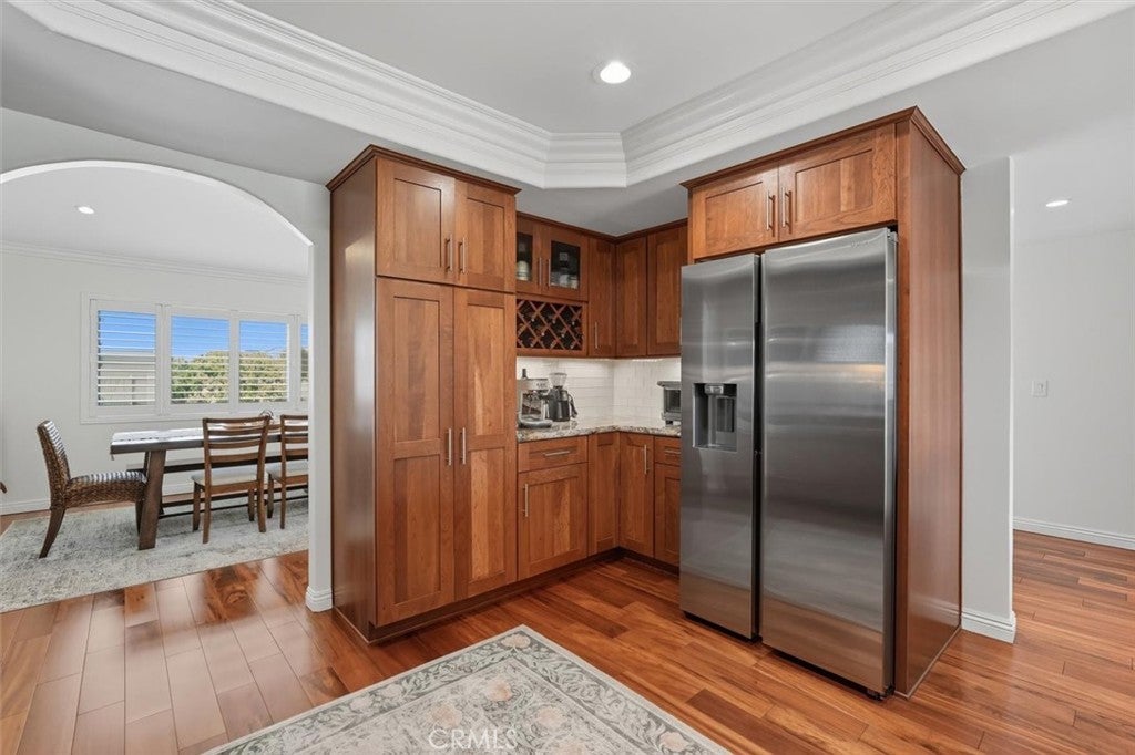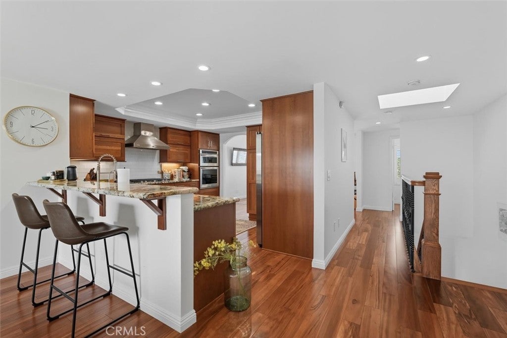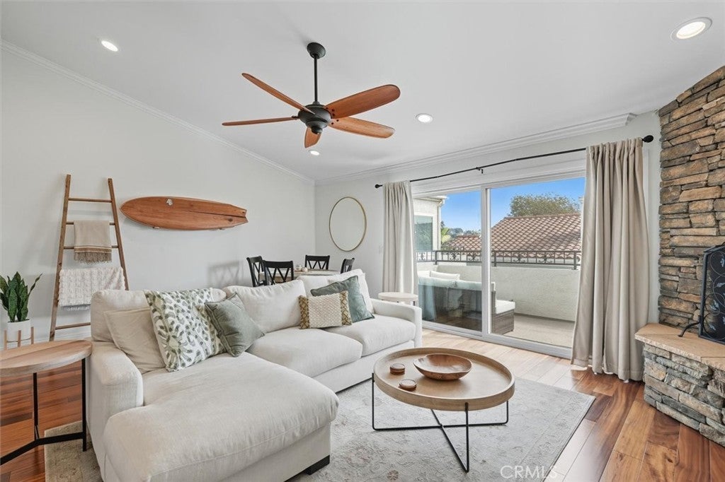Remodeled townhome blocks from the beach and pier offering nearly 2,000 sq. ft. of thoughtfully designed living across three levels. Step inside through the private gated courtyard and enter through the private gated front patio. The main entry level features two bedrooms—including the primary suite—and two full ensuite baths. Head downstairs to find a third room, although with no window, is spacious with it's own closet. This level also has direct access entry to the two-car garage with side-by-side washer and dryer hookups. Upstairs on the top floor, the open-concept living area is filled with natural light, vaulted ceilings, and a custom stone fireplace. The chef’s kitchen has been fully upgraded with custom cabinetry, granite counters, stainless steel appliances, and a breakfast bar. An effortless floor plan flowing seamlessly from the kitchen into the separate dining room and living spaces. From the top floor balcony, unwind and soak in the breeze while enjoying the city lights and peek-a-boo ocean views. With enough space for a bbq, this is effortless guest entertainment. Extensive updates throughout include Brazilian Tigerwood flooring, plantation shutters, remodeled baths, custom stair railings, new windows and doors, upgraded electrical, water filtration system, and a motorized awning for shaded outdoor living. With only six homes in this boutique community, you’ll enjoy both privacy and convenience, and the coastal dream of living a short distance to the sand, restaurants, and shops, with award-winning Redondo schools just around the corner. Low HOA fees $293.80/mo.