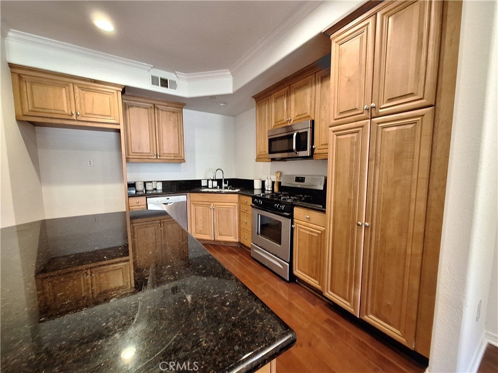 Experience luxury living in the gated Bay Harbor community with this bright and open 3-bed, 2-bath end unit condo featuring laminate floors throughout, a gourmet kitchen with granite countertops, stainless steel appliances, a cozy living room fireplace, a master suite with a walk-in closet, and a private balcony with direct access to BBQ units in the courtyard. Enjoy convenient access to shopping, dining, the 110 FWY, and two assigned tandem parking spaces in this secure, amenity-rich complex.