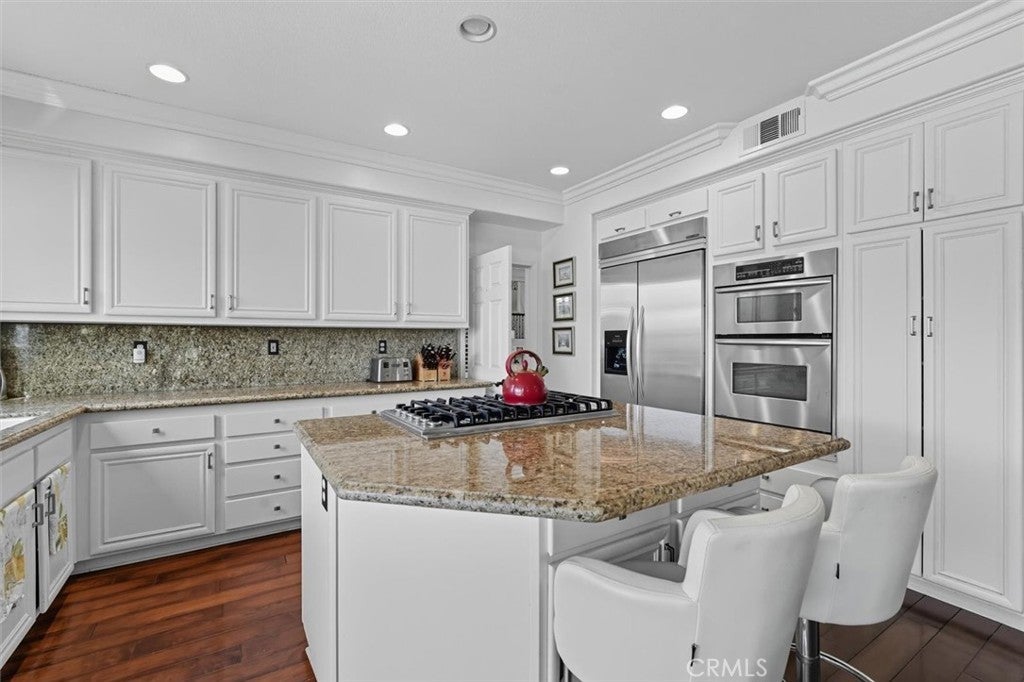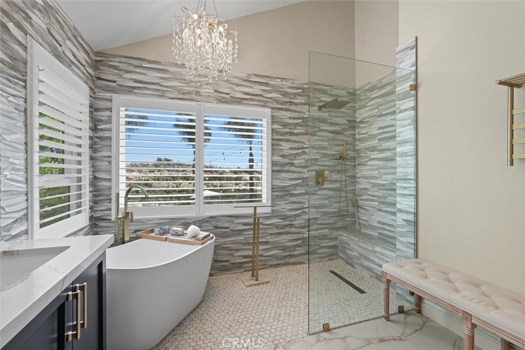 At the crest of a quiet cul-de-sac, this San Marin residence welcomes you with soaring cathedral ceilings, chandeliers shimmering above the elegant living and dining rooms, and a sense of openness that instantly feels both grand and inviting. On the main level, a guest bedroom with a fully renovated bath offers comfort and flexibility. The family room and casual dining flow seamlessly outdoors, while the Gourmet kitchen—complete with Viking cooktop, is a chef’s delight. A side-entry laundry completes this level with ease. The staircase leads to a balcony overlooking the formal rooms, then continues to three spacious bedrooms with custom closets and a fully remodeled bath. The primary suite is a true sanctuary: cathedral ceilings, double shuttered doors to a private dressing room and spa-like fully remodeled bath with dual vanities, separate shower, and private commode. Outdoors, the story unfolds in full color: a Pebble-finished pool and spa sparkle like jewels, an alfresco dining terrace invites summer evenings, and citrus trees—avocado, lime, lemon, and tangerine—bring seasonal joy. Whether it’s morning yoga by the pool, kids laughing on the lawn, or friends gathered under the stars, this space was designed for life’s most memorable moments. Beyond the gates, the dream continues. Stroll the scenic bike trail to the Ritz-Carlton or Monarch Beach Golf Club, feel the sand at Salt Creek Beach, or explore Dana Point Harbor’s sailing, dining, and boutiques. Just minutes to Laguna’s coves, with Ocean Breeze Park and John Malcolm Elementary steps away, the setting balances prestige, connection, and coastal ease. This is more than a home—it’s a stage for stories, a retreat of refinement, and a promise of the great California coastal lifestyle. Come experience it for yourself. (See supplements for extensive list of upgrades to this beautiful home!)