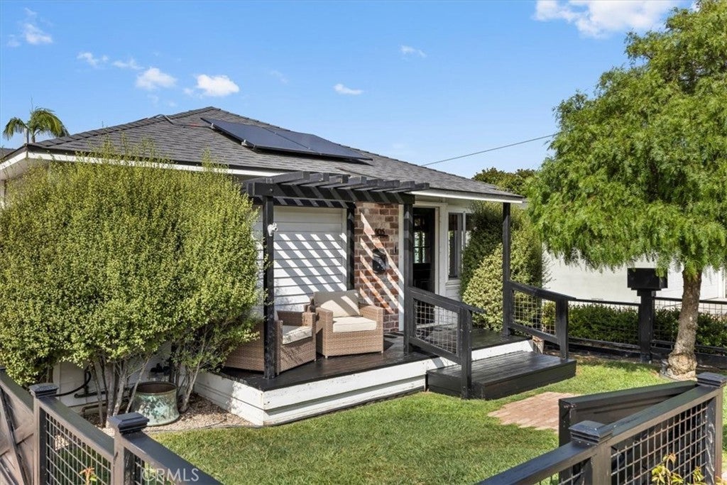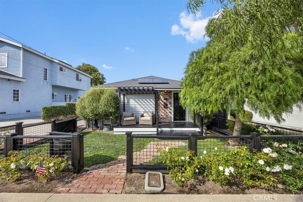 Discover a property that beautifully blends classic charm with modern design, offering 2,708 sq. ft. of versatile living space across a 3 bedroom, 2 bath main residence, a newly built (2024) ADU, a finished recreation room with loft, and an upgraded two-car garage with studio. The main home exudes farmhouse warmth with original hardwood floors, remodeled bathrooms (2020 & 2025), a spacious kitchen with farmhouse sink, subway tile, and granite countertops, plus cozy touches like an electric fireplace. Thoughtful upgrades include central heat and A/C, tankless water heater, copper/PEX plumbing, new roof, solar, and a 200-amp panel (2023). Outdoor living is highlighted by a gated front yard, mature landscaping, automated sprinklers, a new 200 sq. ft. deck, and backyard plumbing for a future fire feature. The newly built (2024) two-story ADU offers a sleek modern contrast, with 2 bedrooms, 2 bathrooms, polished concrete floors, 10’ ceilings, a custom kitchen with new appliances, gas fireplace, upstairs bedrooms with ceiling fans, luxury laminate flooring, and independent solar and utilities. A finished rec room with half bath, kitchenette, and vaulted loft provides additional living or creative space. The polished concrete garage impresses with a full glass high-lift door, beverage refrigerator, custom storage, and a finished studio with wired speakers and A/C. Perfect for multi-generational living, private retreat, or rental income, this unique property blends rustic comfort with modern convenience, all within walking distance to Main Street dining, shops, and the beach, with easy freeway access.