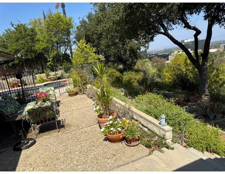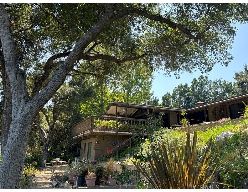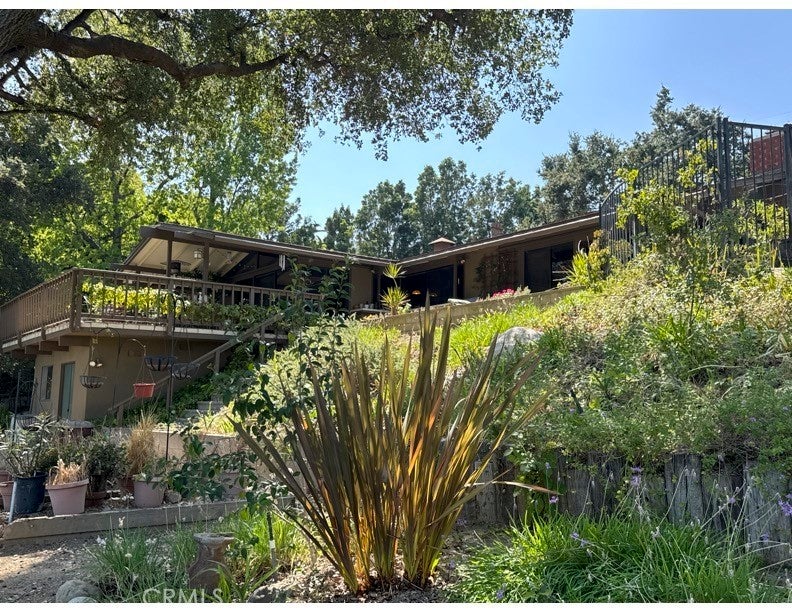 This mid-century modern home offers a beautiful blend of comfort, tranquility, and California living. Nestled in a desirable Encino hillside neighborhood on a quiet cul-de-sac, the residence showcases clean, geometric lines and natural materials like wood and glass. Designed with an open floor plan that seamlessly integrates indoor and outdoor spaces, it sits on an expansive over 23,000-square-foot lot featuring a pool and spacious patio deck area that open to breathtaking panoramic hillside views. A welcoming entrance with charming pathways leads to warm, inviting living areas highlighted by beautiful exposed beams—perfect for both relaxation and entertaining. The backyard oasis, framed by serene hillside scenery, creates a true retreat with the opportunity to renovate to your own style.