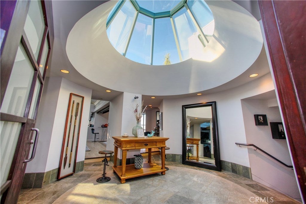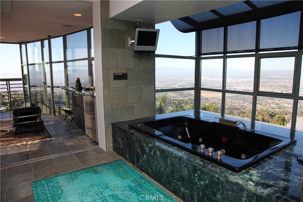 The Summit! A stunning, one of a kind Architectural pinnacle, above cloud level with panoramic ocean and city view of Malibu, Santa Monica, Hollywood (SIGN), downtown LA, San Gabriel Valley, Big Bear mountain, San Pedro and Long Beach shore. (Approximately 8533square feet Hillside Home on three levels (Approx. 7315 Main House + 540 SF enclosed Gym with Sauna + 678 SF Guest House) Designed by Ghanaian-born, world renowned International Architect, Joe Osae-Addo. Minutes to ocean, Trump National Golf Course & Terranea Resort. Freeway close, and close to LAX. Featuring elevator, guest house, annex, office, 6 zone HVAC, wine cellar, gym sauna, pool, whirlpool jacuzzi, European kitchen appliances & cabinets, subzeros, security system, 4 fireplaces, 3 wet bars, custom skylights, dry aquarium, sun deck, fruit orchard, and the list goes on. This house is built from street to street with access to the main and guest house from two different streets. Featured in LA Times, New York Times, and Spaces magazine. Great home to showcase and entertain. Pictures of the night lights and the sunset over the Santa Monica and Malibu coast line are from the master balcony patio.