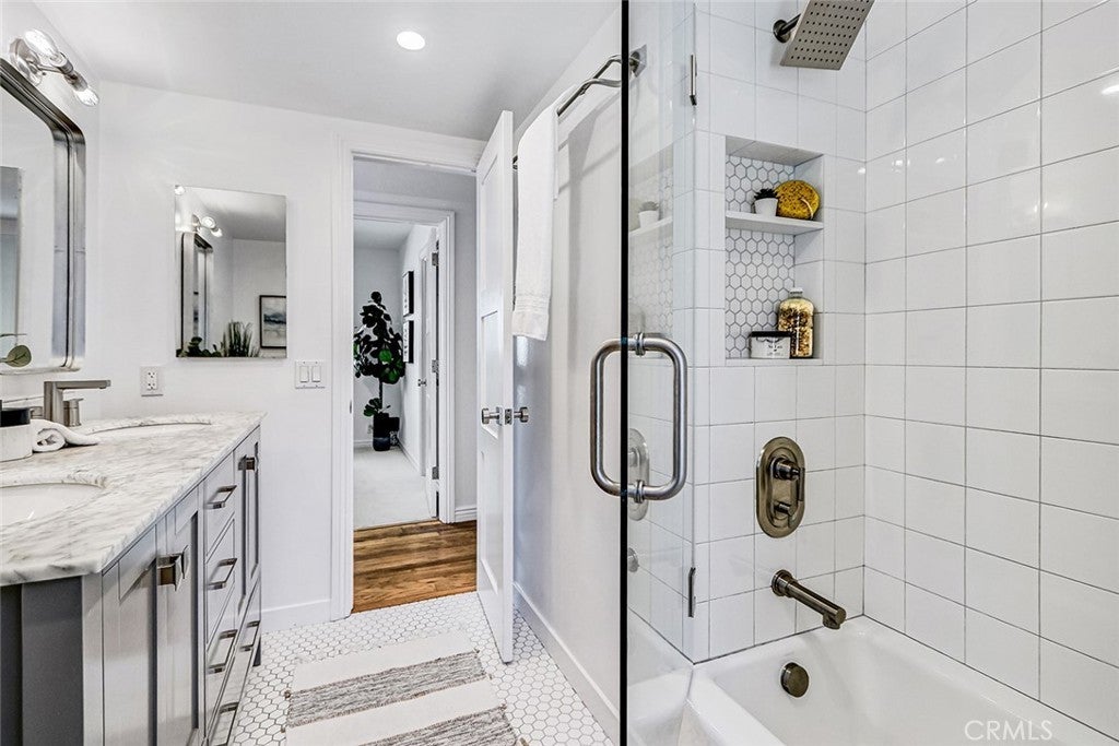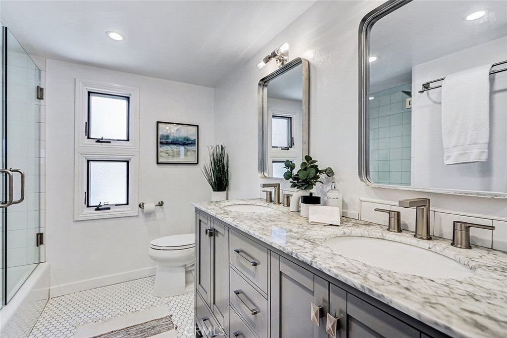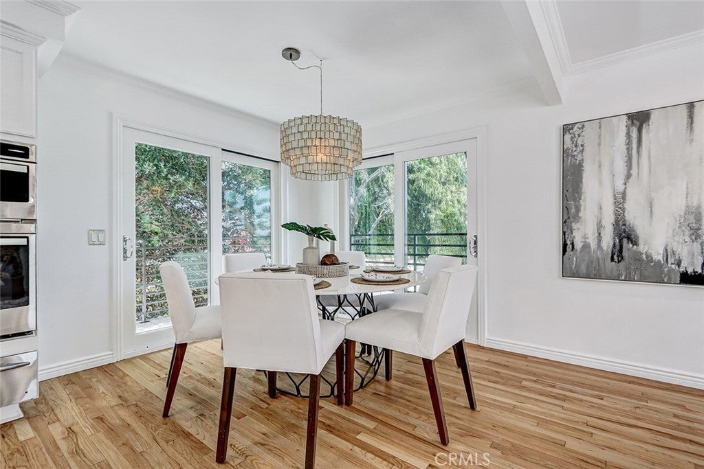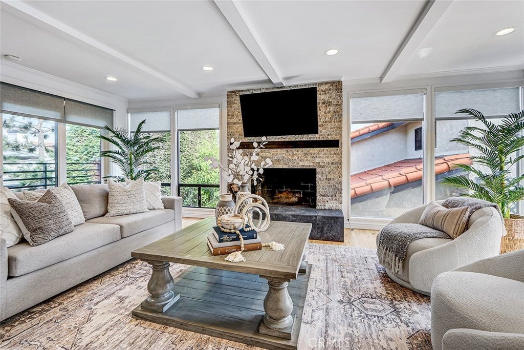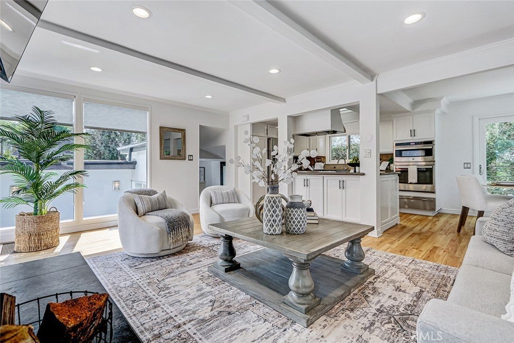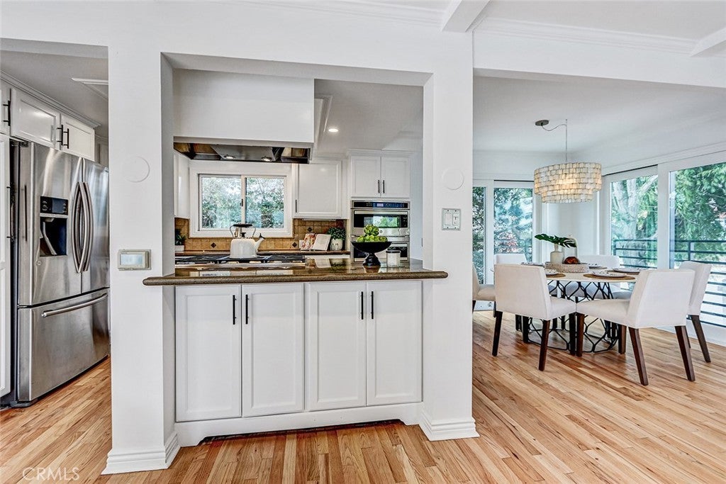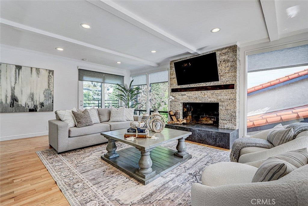 Located in the high sought after Mira Costa area of East Manhattan lies this entry level contemporary home. Entering at the split-level floor welcomes you with an abundance of natural light as you are greeted with a warm, private courtyard with potted plants. Upstairs is an ideal entertaining space with floor-to-ceiling windows that showcase the outdoor greenery. The great room offers refinished hardwood floors transition through the living, dining, and kitchen areas. The dining room includes sliding glass doors allowing for the desired indoor-outdoor space. The kitchen includes recently painted cabinets, stainless steel appliances, and an ideal layout for both everyday living and entertaining. The lower level offers four bedrooms, three nicely sized secondary bedrooms, filled with natural light, while the master suite offers custom built-ins, and a recently renovated ensuite bathroom. For guests, there is an additional full bathroom. The oversized garage offers flexibility to be converted to a rec. area. Other amenities include AC, private exterior landscaping off the entry, carpet in all bedrooms. Don't miss out on this very rare opportunity!!!