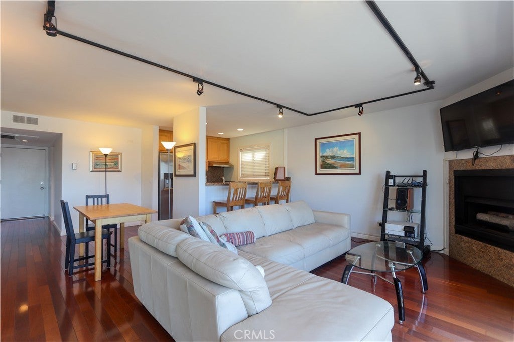 Enjoy the best of coastal living in this bright and welcoming corner front unit with parking garage below for more privacy. It is perfectly located down the walk street from the sand with a beautiful ocean and whitewater view. Relax on your ocean-view balcony off the living room, where you can watch the waves and feel the sea breeze. The open living room and kitchen layout is great for entertaining or just enjoying everyday life, featuring hardwood floors, a cozy fireplace, and double-pane windows that bring in plenty of natural light. The kitchen offers granite countertops and white tile finishes that carry through to the bathroom, giving the home a clean and classic beach feel. The building includes secure key entry, a gated garage, a laundry room, and a lovely common patio for outdoor relaxation. With an unbeatable location and ocean views from your living room, this home offers the perfect beachside lifestyle — close to the sand, shops, and great local dining!