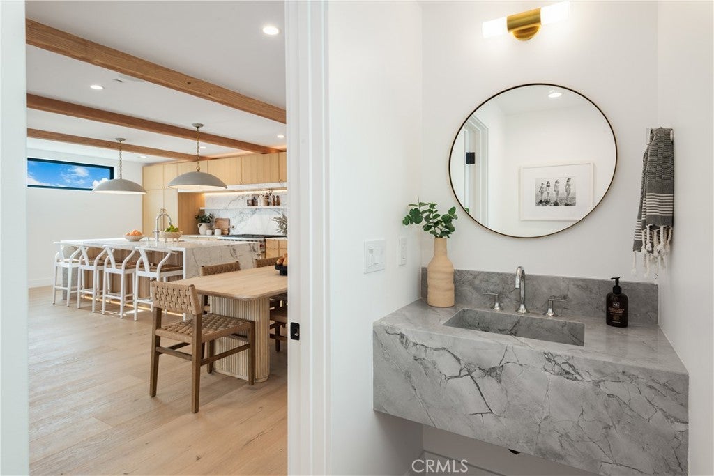 Brand New Construction. Coastal modern townhome offering 4 bedrooms and 4.5 baths across 2,675 square feet. Open-concept layout features 12-ft Fleetwood sliders, solid white oak floors, and Douglas fir beams. Chef’s kitchen includes 48" Wolf range, Sub-Zero refrigeration, Bosch dishwasher, and 10-ft Arabescato Belgia marble island with ribbon lighting. Primary suite offers private balcony, Calcutta marble vanity, soaking tub, and glass walk-in shower with peekaboo ocean views. Smart home with Nest hub, Ring doorbell, Klipsch audio, Tesla Powerwall, six solar panels, and three-zone climate control. Includes wine closet, three-stop elevator, two tankless heaters, and architectural exterior lighting. Includes 3D walkthrough and video tour. 0.2 mi to Two Guns Espresso and Hi-Fi Espresso • 0.5 mi to Hermosa Beach Strand • Panoramic Queen’s Necklace views from rooftop deck with gas and water hookups • EV charger and solar energy.