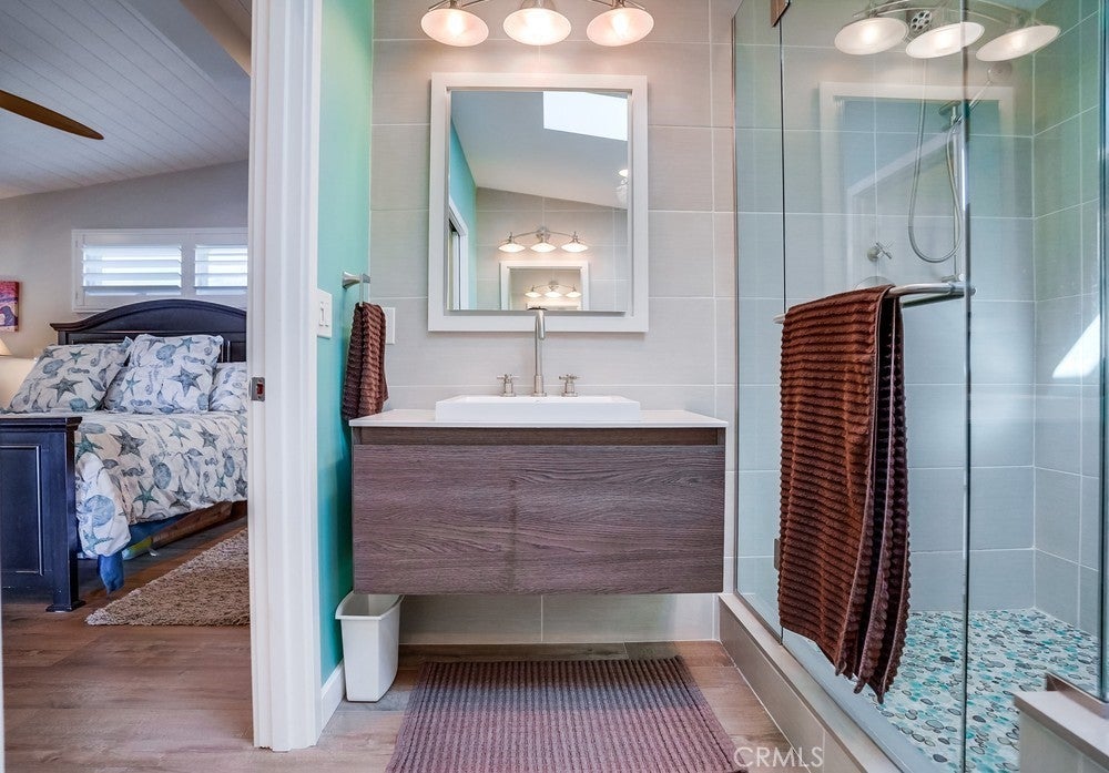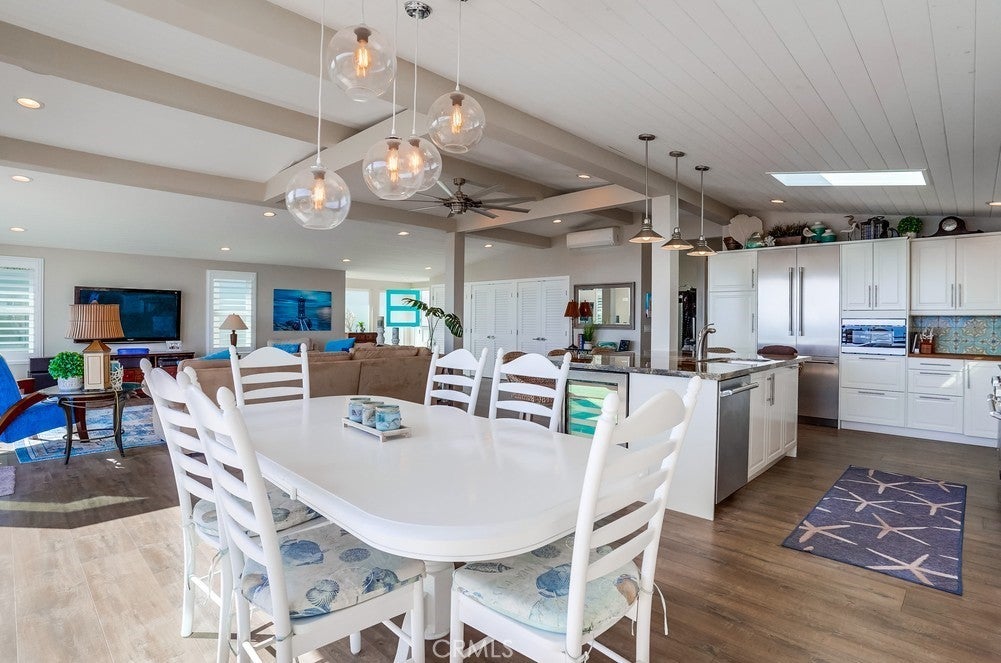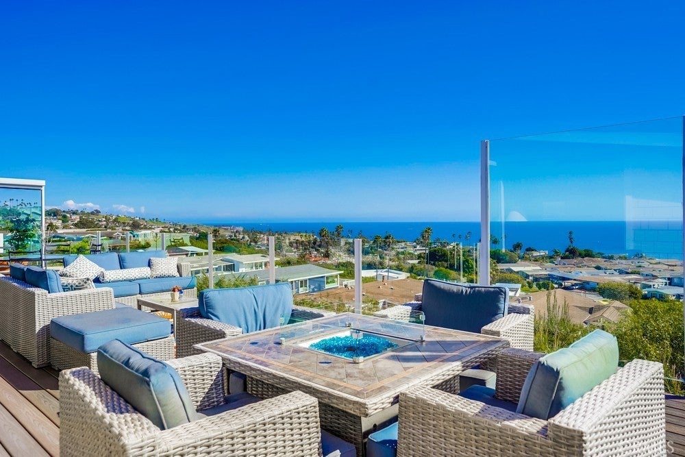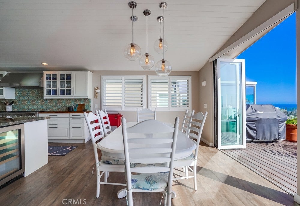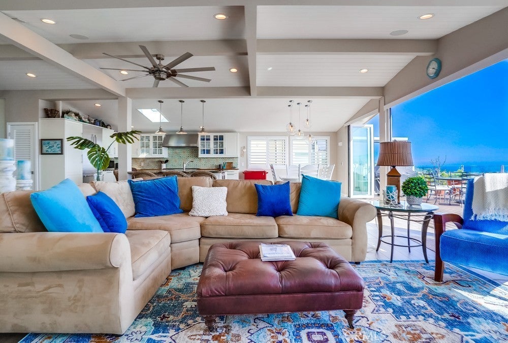 Fantastic opportunity to own in the highly desirable Palos Verdes Shores! Enjoy panoramic ocean & Catalina Island views from this amazing, completely remodeled home! Custom, turnkey 3-bedroom, 2-bathroom home is located on a quiet cul de sac! 1950+ sq. ft. of living space gives you the perfect forever home. Private, wraparound Trex deck with glass railings boasts stunning ocean views, magical sunsets & electronic awning for shade. Enjoy great views from open concept kitchen featuring Granite countertop island & breakfast bar, stainless steel appliances, 6-burner gas cooktop, Thermador oven, hooded vent, dual sink basin, built-in microwave, wine fridge, Thermador sub-zero refrigerator, recessed lighting, pantry, soft-closing cabinetry & sliding pots & pans drawers. Light & bright open concept living room offers high-beam ceilings, folding panoramic doors, deck access, & stunning ocean & sunset views. Dining area features exquisite chandeliers, outdoor deck access, beamed ceilings & jaw-dropping ocean views! Primary bedroom boasts beamed ceilings, skylight, ash wood ceiling fan, walk-in closet with custom cabinetry/drawers, skylights & recessed lighting. Bathroom ensuite equipped w/tranquil polished stone floor walk-in shower & large soaking tub. Guest bedroom features mirrored sliding door closet, recessed lighting & ceiling fan. Third bedroom can also be used as a gym or office. Huge storage room & workshop spans width of home. Individual laundry room features storage drawers & cabinetry plus pet door. Lots of natural light, dual pane windows, wide plank easy care waterproof flooring, vaulted ceilings, recessed lighs, window shutters, sliding barn door, extra wide hallway, high efficiency ductless mini-split heating & cooling system & storage found throughout this spectacular, 1-of-a-kind home. Exterior of home has privacy frosted glass fencing, pathways & driveway paved w/stone pavers, Travertine tile front steps, ledger stone skirting & low maintenance/long lasting Hardi-cement siding. Carport fits 2 cars & golf cart. Palos Verdes Shores is a gated community w/security, coastal hiking access, community activities, private Golf Club, salon, new heated pool & hot tub, carwash, sauna, tennis & pickleball courts, dog parks, gardens, newly remodeled rec. center w/gym, movie theater, billiards, office center, lounges, banquet hall, property manager & maintenance. Community near grocery stores, banks, medical centers, restaurants, resorts & freeways.