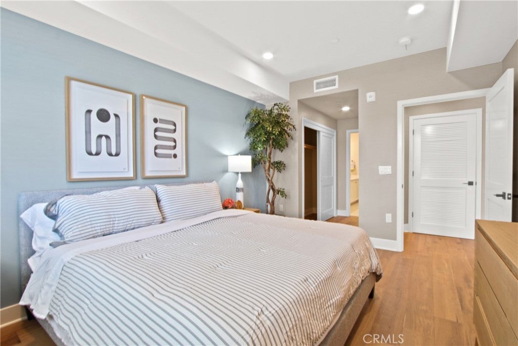 La Sevilla is a brand-new collection of upscale single-level condominiums in the prestigious Rolling Hills Estates, seamlessly combining comfort, simplicity, and modern design. Plan C features an open concept living and dining area that flows effortlessly onto a private balcony, creating a perfect blend of indoor relaxation and outdoor enjoyment. The home showcases elegant finishes, including wide-plank hardwood flooring throughout, quartz countertops, a full tile backsplash, and a premium stainless-steel appliance package with a French-door refrigerator, built-in microwave, gas range with AirFry, and dishwasher. The spacious primary suite includes a luxurious bathroom with a glass-enclosed shower, quartz counters, designer porcelain tile, and stylish stainless-steel accents. Residents have access to a grand courtyard with inviting sitting areas and a dual fireplace, as well as a modern fitness center, remote-work lounge, community room, and a barbecue area with a firepit—ideal for gatherings and leisure. Situated on the scenic Palos Verdes Peninsula, La Sevilla offers the tranquility of a high-end neighborhood combined with exceptional walkability. Just steps away are Peninsula Center shops, the public library, grocery stores, coffee shops, and a variety of local restaurants. Additionally, the community is minutes from scenic hiking trails and the stunning beaches of Palos Verdes, making it easy to enjoy outdoor adventures and coastal beauty.