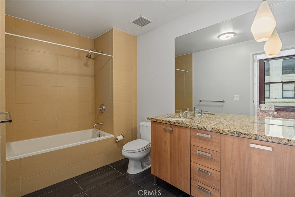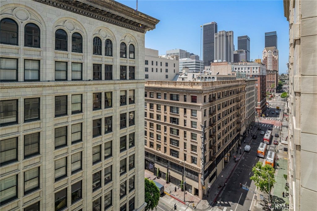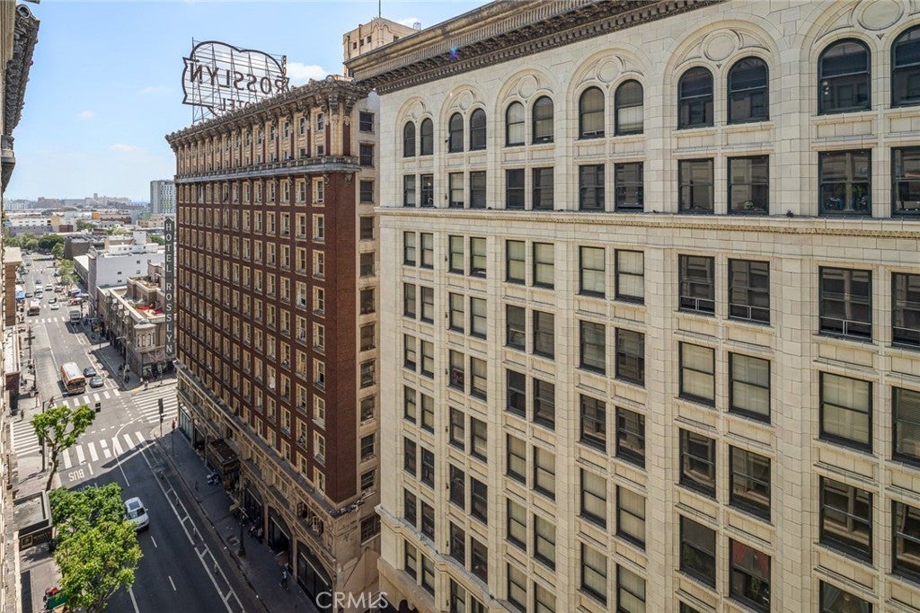 Live the best of DTLA life in this sleek 2-bathroom loft on Spring Street in the iconic Rowan building. This cool loft is one of the few units in the building to have an oversized 2-bedroom floorplan, on tax records, (which is currently set up as one big open loft space with one separated bedroom). The layout is such that the bedroom has been sectioned off as a separate room. It also features 10-foot ceilings, exposed brick walls, top of the line appliances and overlooks 5th Street. The large windows let in luscious amounts of light. The sleek kitchen is open to the living room. There’s a roomy bathroom with shower/tub combo en-suite with the private laundry area. Located in the Old Bank District in the booming Historic Core of Downtown LA, the Rowan was originally built in 1912 and exquisitely remodeled in 2008. Today’s residents enjoy a beautiful mix of historic building features and high-end modern conveniences. Historic features include exposed brick walls, original large windows with beautiful mahogany frames, historic marble flooring in the lobby and restored exterior façade. The Rowan is a full amenity building, including a 24-hour doorman, resident’s lounge, hot and cold plunge pools, outdoor BBQ area, dog run, on-site dry-cleaning valet and bike storage. All common areas are even WIFI-enabled. Parking is available to rent in the adjacent Old Bank District Garage, which is located directly behind the Rowan, and accessed via a partially gated alley.
