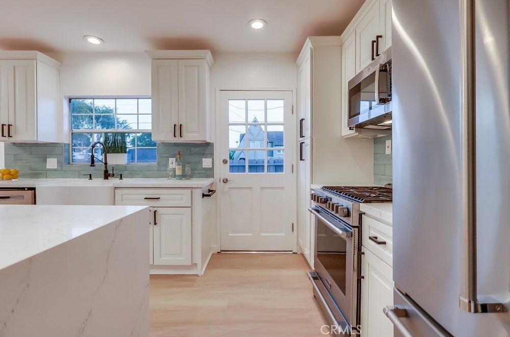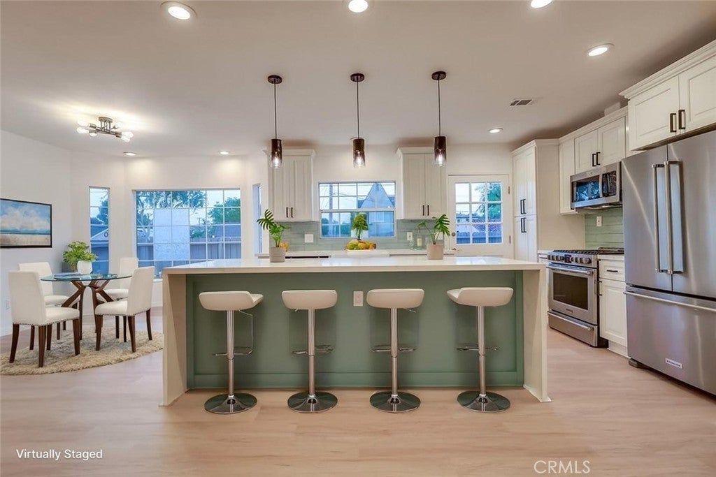 Welcome to 3403 Falcon Ave in the heart of Historic California Heights in Bixby Knolls. Charming designer Spanish 3-bedroom, 3-bathroom home is newly remodeled & has everything you could dream of - perfect for rental income producing! Fantastic open concept home boasts 1850 sf of living space residing on a massive corner lot & spares no expense including paid off solar system & magnificent Spanish archways! Spacious living room offers cozy gas fireplace, large bay & picture windows capturing plumeria tree & rose bush views & lots of natural light. Stunning chef's kitchen features jaw-dropping finishes, including gorgeous farm sink, custom ceiling-to-floor cabinets, kitchen island equipped w/4-seat breakfast bar & lots of countertop space & storage. Open & airy family room & dining area provides you with the perfect entertainer's layout & new windows. Home offers 2 primary bedrooms w/attached bathrooms & walk-in closets in both - one has a tub/shower combo & the other has a walk-in shower. 3rd guest bedroom can be used as an office or gym! Laundry room inside home comes w/washer & dryer plus lots of storage cabinets. Home offers several terraces & patios surrounding home & grassy yards-ideal for indoor/outdoor living space, BBQs, entertaining, lounging & letting pets run. Long, gated 5 car driveway leads to attached 2-car garage equipped w/electricity and storage. Meticulously remodeled home offers central A/C & Heat, new coppered plumbing, new roof, lots of storage, plus on-site & street parking. Home resides in an excellent school district & conveniently located near restaurants, Reservoir Park, shopping malls, grocery stores, a short drive to the ocean & freeways. Don't miss this opportunity to make this your forever home!