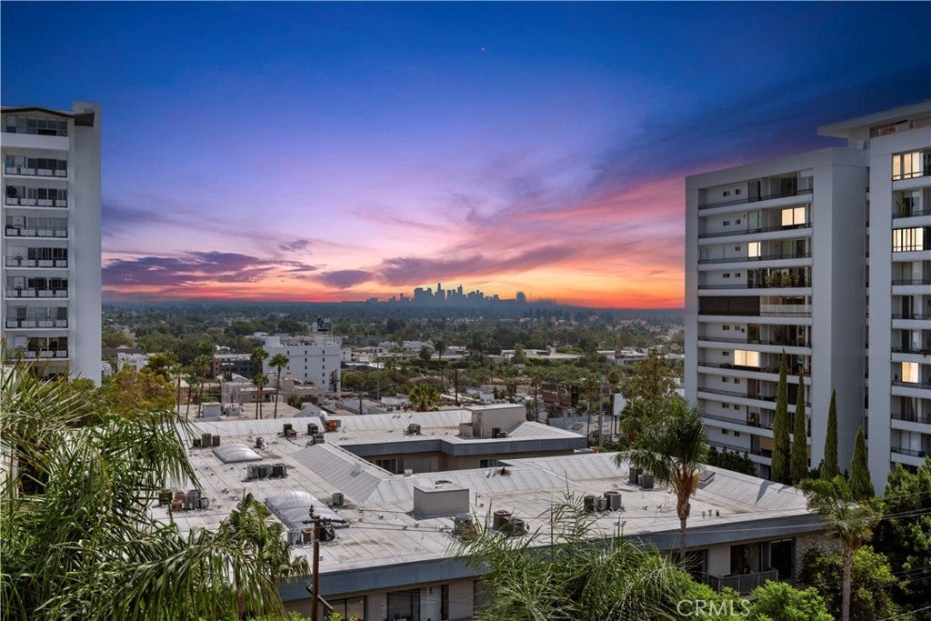 Proudly introducing this stunning 1-bedroom, 1-bathroom penthouse condo offering 731 sq ft of upgraded living space and panoramic skyline views, including the iconic Downtown Los Angeles cityscape. Located on the TOP FLOOR of the coveted Park Wellington, this beautifully updated unit combines luxury, comfort, and location in one incredible package. Step inside to find hardwood floors, a remodeled open-concept kitchen with granite countertops, stainless steel appliances, and a breakfast bar perfect for casual dining or entertaining. The spacious living area flows seamlessly to a large private balcony, ideal for soaking in the city lights and skyline sunsets. The bedroom features ample natural light, city views, and a generous walk-in closet. The remodeled bathroom boasts travertine tile, an elegant vanity, and a roomy walk-in shower—all freshly painted and move-in ready. Park Wellington is one of West Hollywood's premier full-service, resort-style communities, offering: 24-hour doorman/concierge and security, Heated year-round pool with lounge areas, Pergola-covered spa and sauna, North/south tennis court, Fitness center, Lush grounds and a professionally managed HOA. Just moments away from the best of West Hollywood and the Sunset Strip—including world-class shopping, dining, and nightlife!!