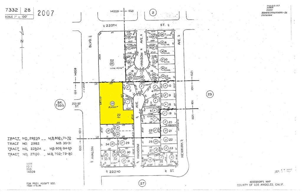 The subject property is a commercially zoned land parcel of approximately 39,377 square feet that has 247 feet of frontage on the primary corridor of Avalon Boulevard in the City of Carson. The parcel is irregular in shape as it has 82 feet of frontage on the back portion of the lot that fronts a cul-de-sac street (Hansome Avenue) which has SFR’s (Single Family Residences). The property is vacant other than a 1,363 square foot building constructed in 1937 that has been used for business offices for the owner for the past several years. The property will be delivered vacant “as-is” at the close of escrow. This offering provides a multitude of potential development opportunities including multi-residential, commercial and mixed use. Buyer to verity with City of Carson the zoning uses permitted and development standards for its intended use and development.