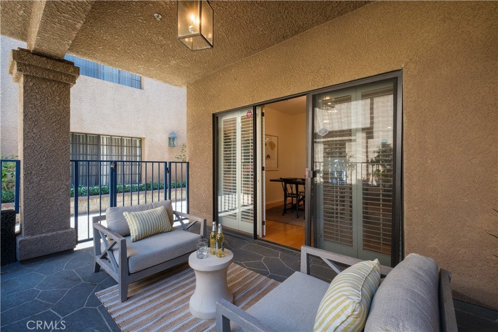 Spacious, light-filled, this single-level 2-bedroom, 2-bathroom home offers an exceptional lifestyle in one of Arcadia's most sought after neighborhoods. Featuring a large living room with hardwood floors, high ceilings, a gas fireplace, and plantation-shuttered windows. The open dining area includes a built-in cabinet with recessed lighting and leads to a pleasant, covered patio with tranquil tree and mountain views. The kitchen and guest bathroom were remodeled in 2023, with new flooring and modern updates. The kitchen offers ample cabinetry, counter space, updated appliances, and a bright breakfast nook. Off a secondary hallway are two bedrooms, including a primary suite with a walk-in closet and a remodeled en-suite bath; the second bedroom has mirrored closets and an updated bath. The roof for the entire complex was updated within the last few years. Amenities include in-unit laundry, nearby elevator and stair access to underground parking with two side-by-side spaces, and a large private storage unit. Perfectly situated near top-rated Arcadia schools, shopping, fine dining, local parks, Santa Anita Race track, and major transportation options, this home truly offers it all.