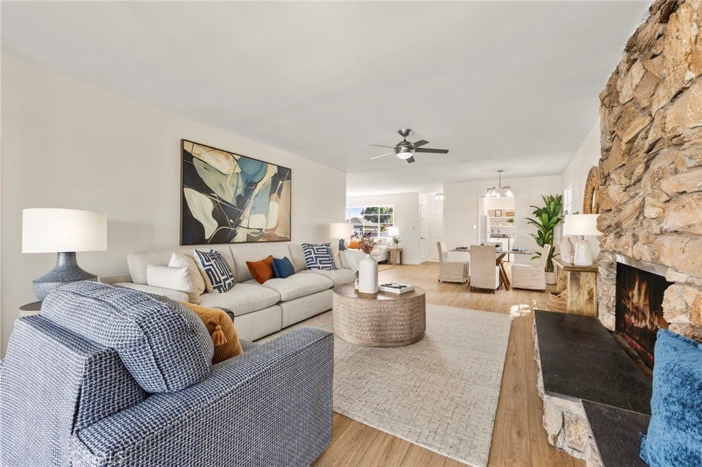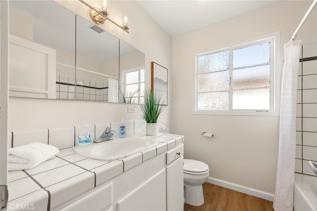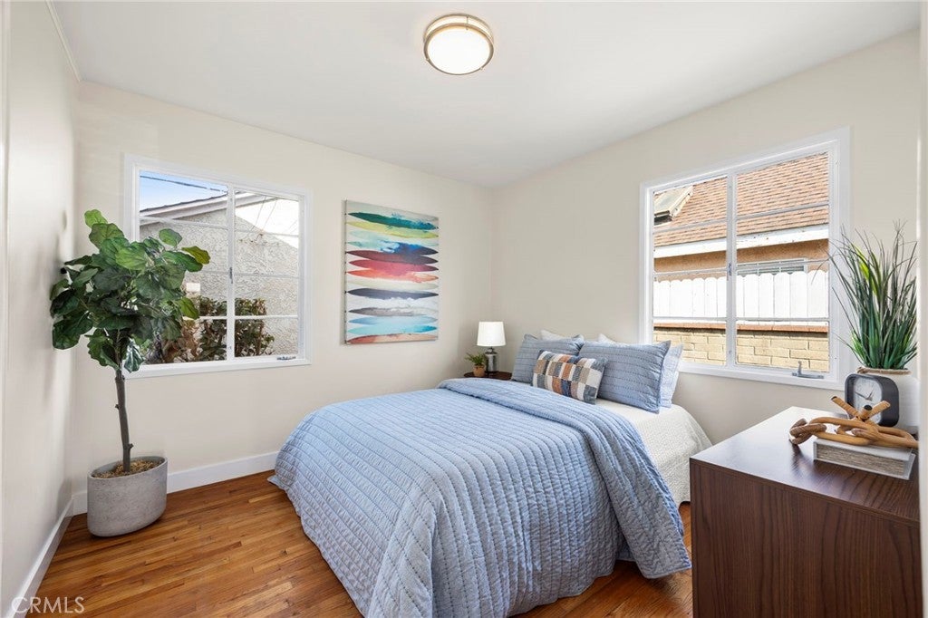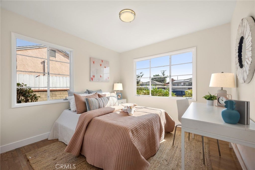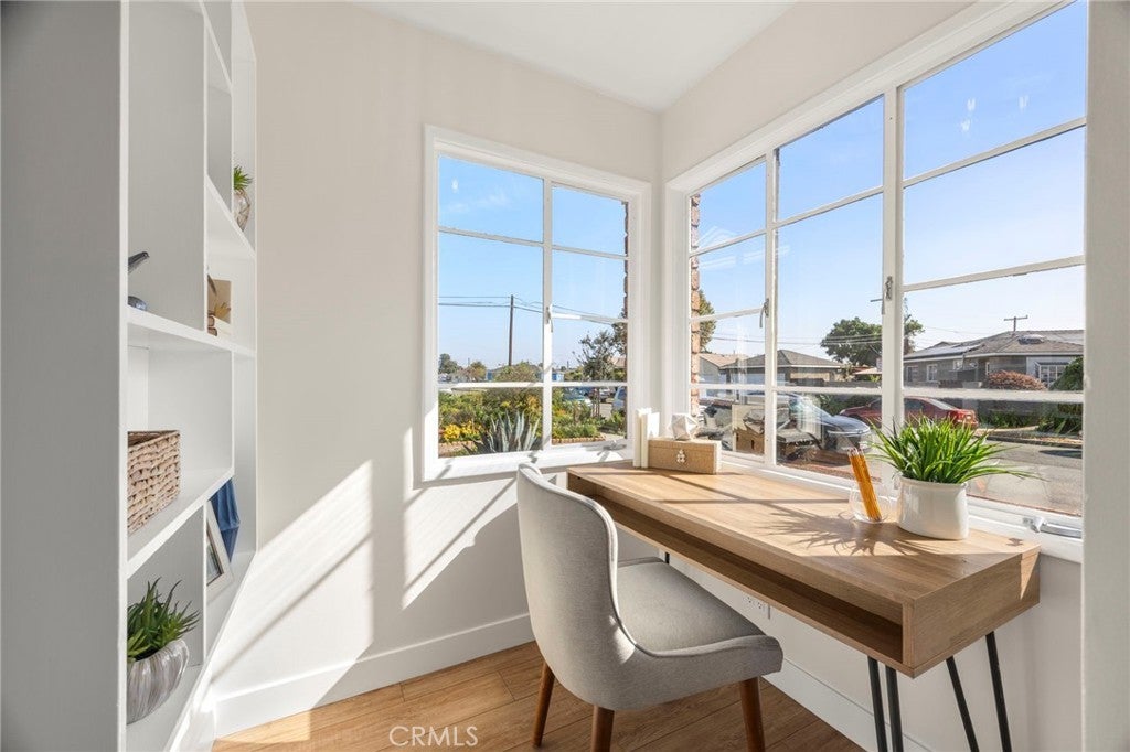 Fantastic Gardena Location! Nestled on a sunny corner lot with mature trees, this charming three-bedroom, one-bath family home offers comfort, warmth, and flexibility in a highly sought-after neighborhood. Over 1400 sqft of living space plus an additional detached bonus room and an enlarged garage with workshop room and storage room. The south-facing orientation and abundant south and west windows fill the home with natural light throughout the day, creating a bright and inviting atmosphere. Step inside to a freshly painted interior featuring new plank-style flooring and baseboards in the main living areas. The living room features plentiful south facing windows. The spacious family room includes a beautiful stone fireplace with gas starter, two ceiling fans, and sliding glass doors opening to the rear yard—perfect for entertaining or relaxing on the oversized rear covered porch. The kitchen offers white tile counters, a new stove, updated lighting, pantry, refrigerator and dishwasher, and a convenient laundry closet including washer and dryer. There is a sunny office nook ideal for work or study. Each of the three bedrooms includes double-door closets with overhead storage, and there’s an entryway coat closet plus a hall linen closet for added convenience. The bathroom features a new three-mirror medicine cabinet, modern light fixture, and a full tub-shower with classic white tile walls. Outside, you’ll find low-maintenance yards, a two-car detached garage, and a separate workshop and storage rooms—plus a bonus detached hobby room, perfect for creative projects or a home gym. With 1,441 sq. ft. of living space, thoughtful updates, and a bright, cheerful layout, this home offers both comfort and functionality in one of Gardena’s best locations.