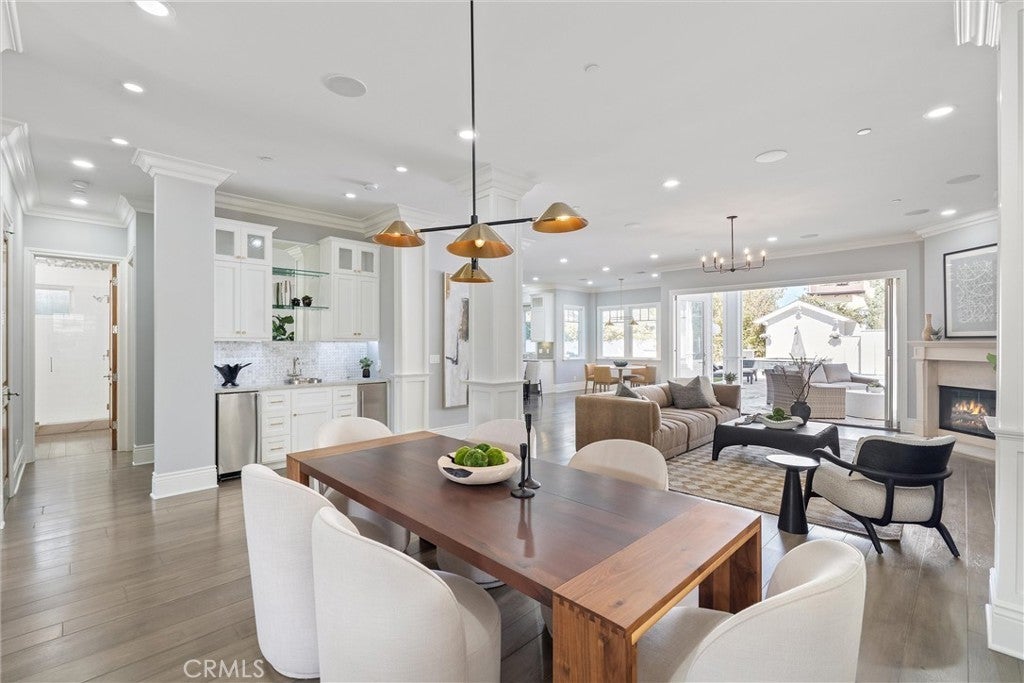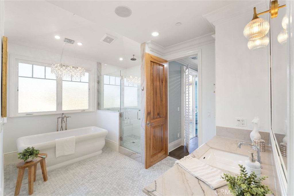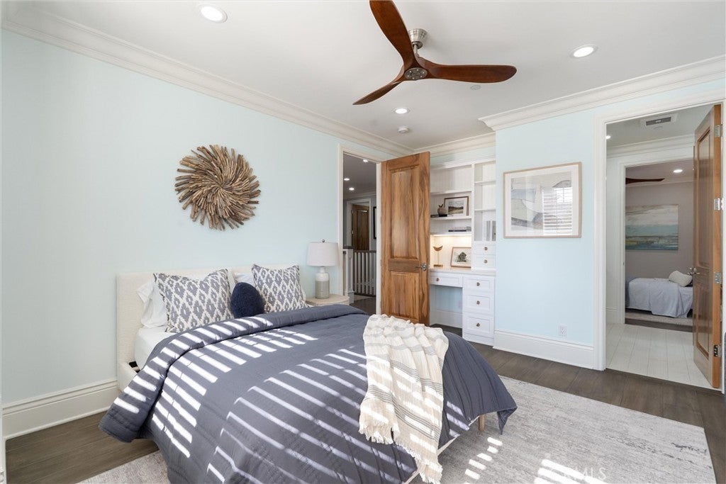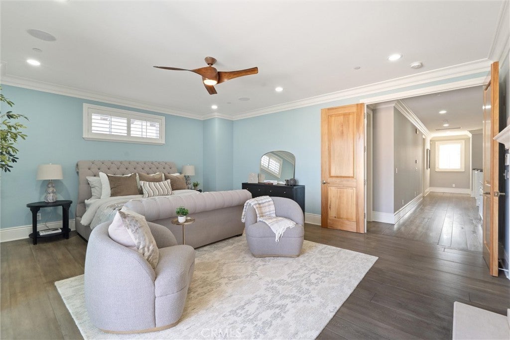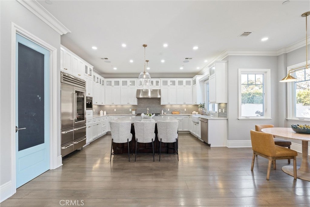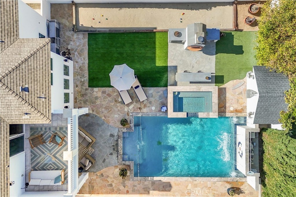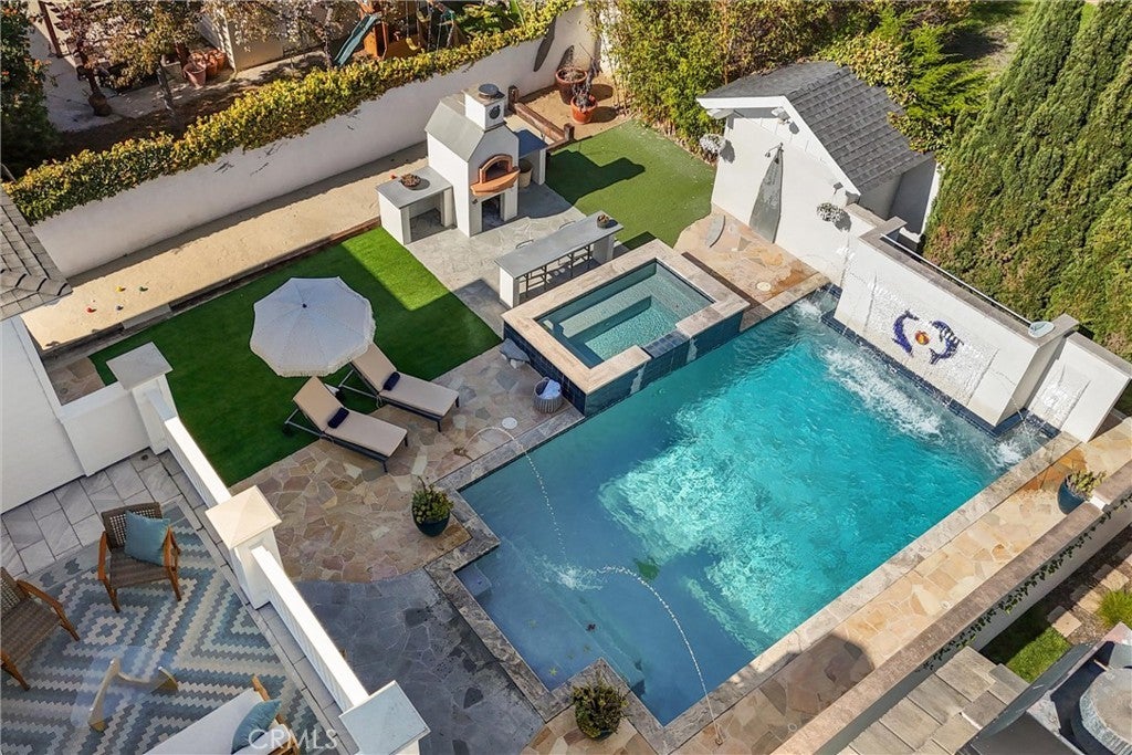 Discover a rare opportunity for refined living in this newly updated Manhattan Beach custom residence, thoughtfully refreshed with an interior designer's touch. Located on a desirable street, this home masterfully blends coastal elegance and functional design with its sophisticated interiors and a magnificent outdoor space. The property features 5 bedrooms and 4 beautifully appointed bathrooms in 4,431 sf of living space. Rich French oak floors and tasteful crown molding flow throughout, creating an atmosphere of warmth and timeless elegance. Modern amenities like an integrated sound system, outdoor security cameras, central vaccum system, a dedicated theater room, and a convenient laundry room, and a three-car garage enhance daily living. The stunning Chef's kitchen, designed for discerning tastes is appointed with high-end appliances such as a Sub-Zero fridge, a professional-grade six-burner Thermador stove, an integrated Miele espresso maker, a Villeroy & Boch prep sink, complemented by an expansive quartzite island, abundant counterspace, and a generous walk-in pantry. The property’s true highlight is the expansive, sun-drenched backyard—a rare Manhattan Beach feature. Surrounded by mature trees for privacy, this space is a resort-style paradise centered around a stunning heated pool and spa with a fun waterfall feature, outdoor shower, designated bathroom, bocce court, pizza oven, a spacious green area, and a comfortable seating space with a fireplace and TV. This property offers an unparalleled retreat from the daily hustle. It is a quiet, private legacy property where every detail has been thoughtfully considered to deliver the quintessential Manhattan Beach experience.
