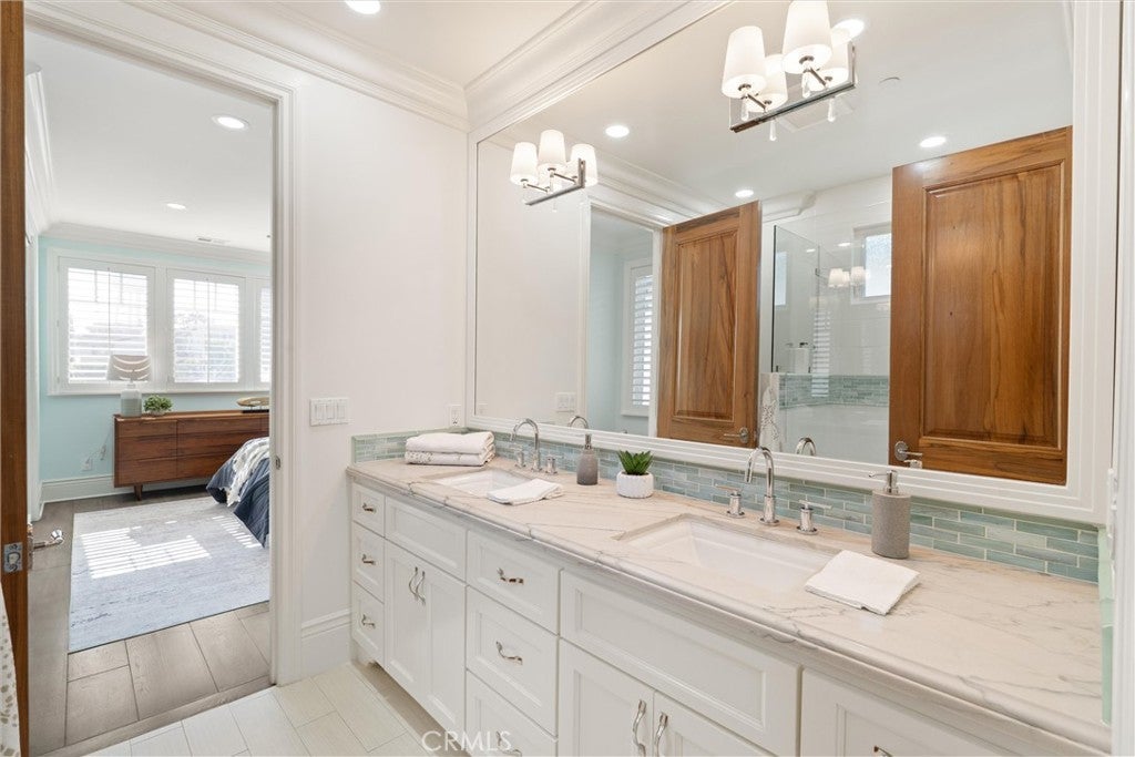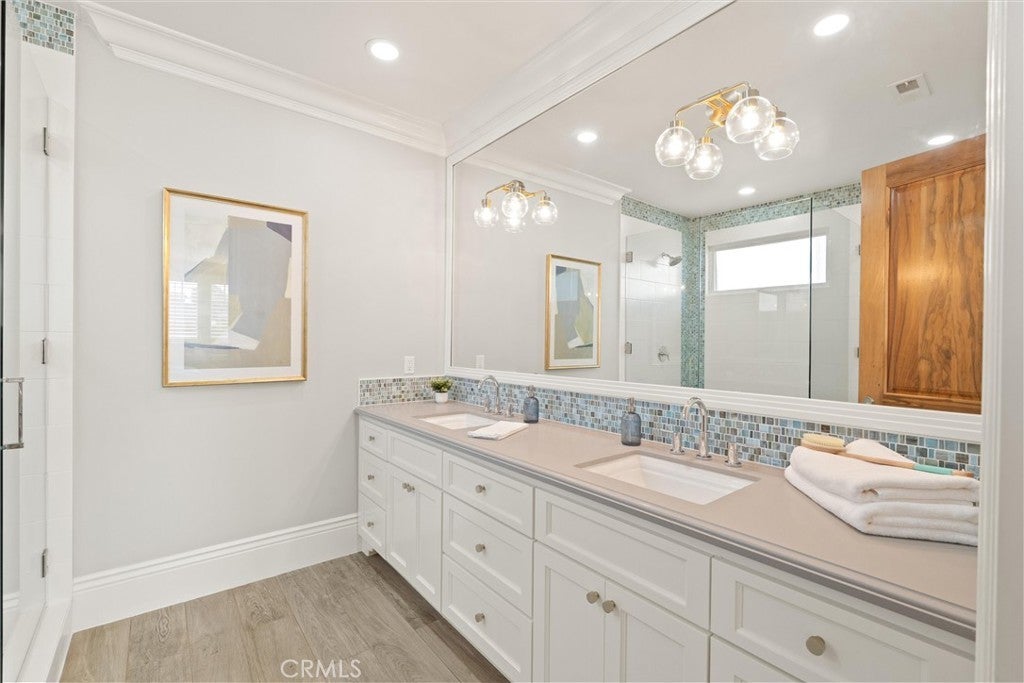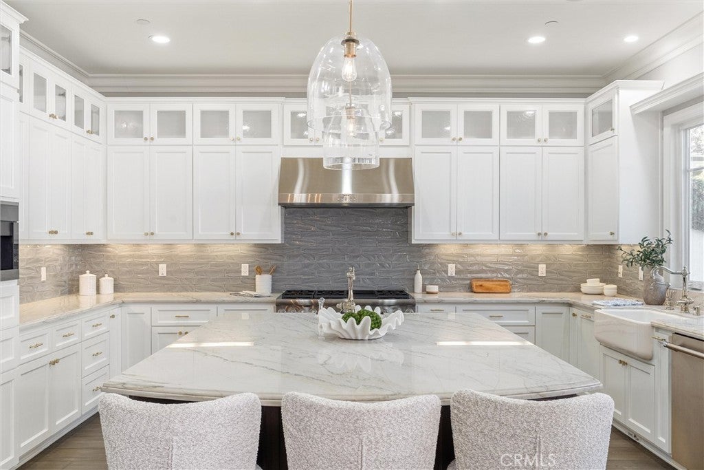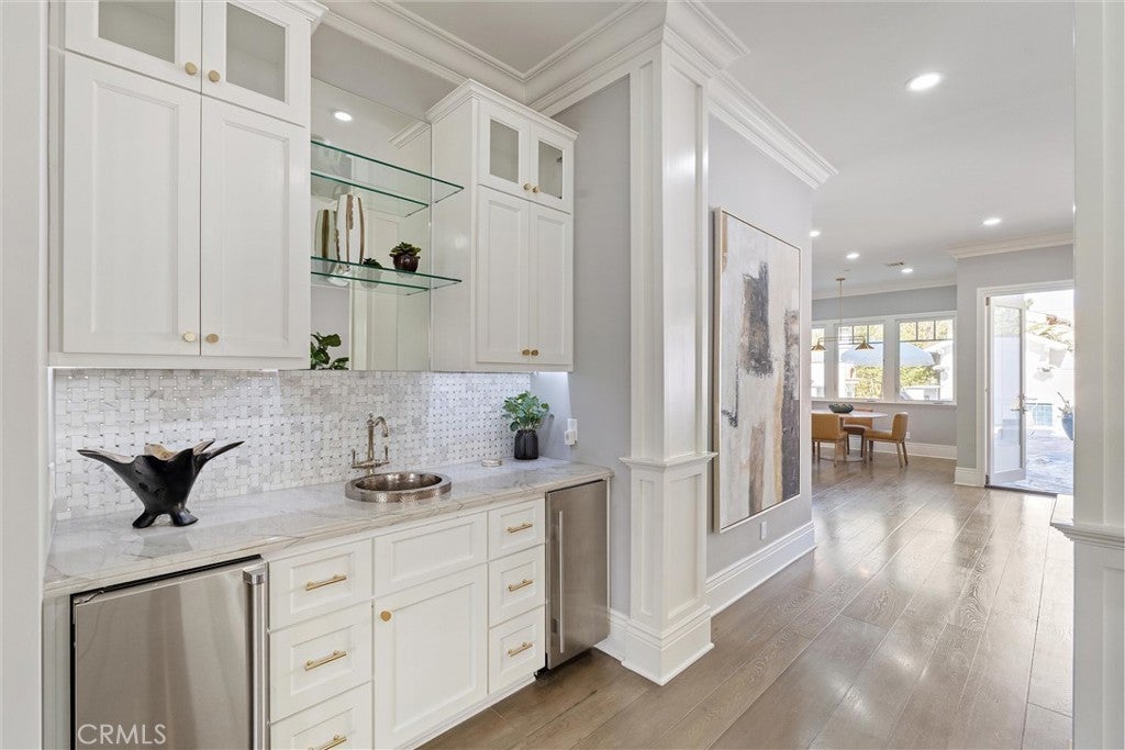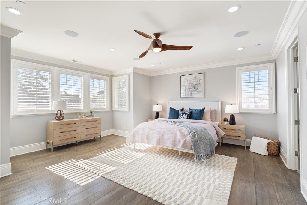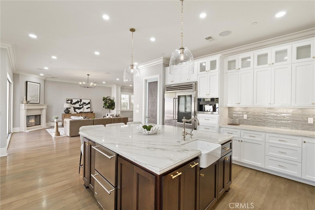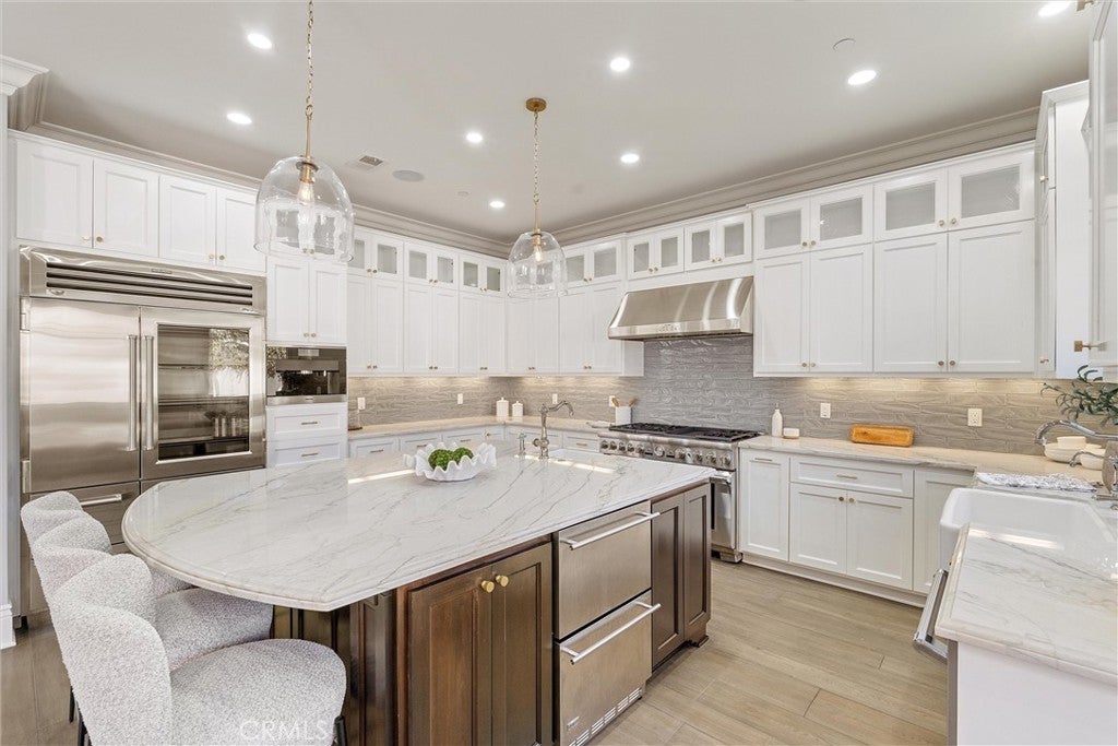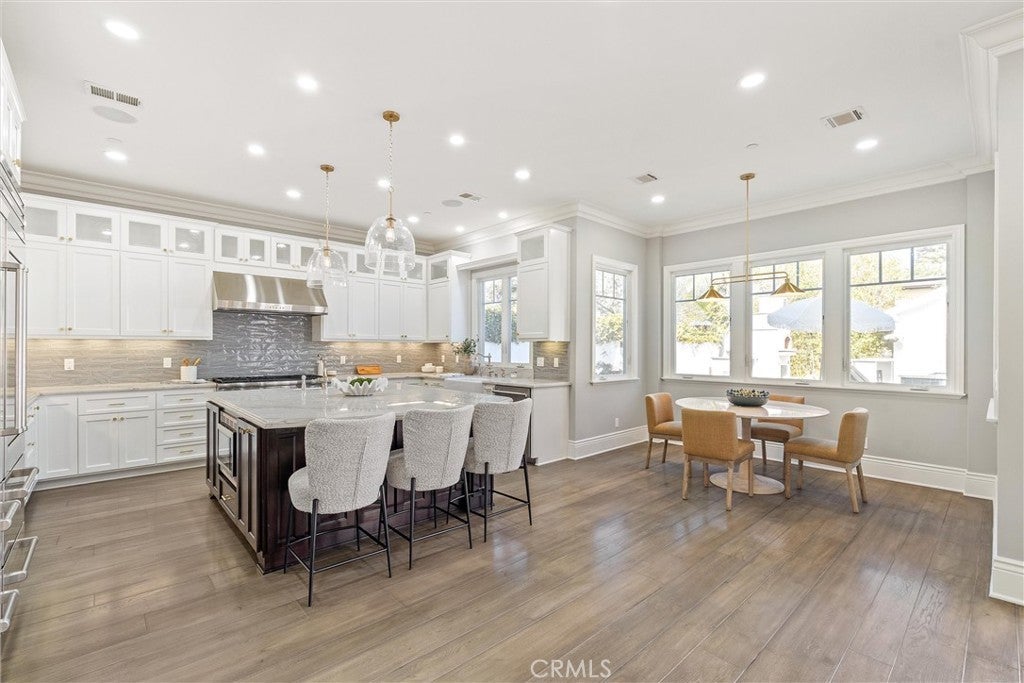 Discover a rare opportunity for refined living in this newly updated Manhattan Beach custom residence, thoughtfully refreshed with an interior designer's touch. Located on a desirable street, this home masterfully blends coastal elegance and functional design with its sophisticated interiors and a magnificent outdoor space. The property features 5 bedrooms and 4 beautifully appointed bathrooms in 4,431 sf of living space. Rich French oak floors and tasteful crown molding flow throughout, creating an atmosphere of warmth and timeless elegance. Modern amenities like an integrated sound system, outdoor security cameras, central vaccum system, a dedicated theater room, and a convenient laundry room, and a three-car garage enhance daily living. The stunning Chef's kitchen, designed for discerning tastes is appointed with high-end appliances such as a Sub-Zero fridge, a professional-grade six-burner Thermador stove, an integrated Miele espresso maker, a Villeroy & Boch prep sink, complemented by an expansive quartzite island, abundant counterspace, and a generous walk-in pantry. The property’s true highlight is the expansive, sun-drenched backyard—a rare Manhattan Beach feature. Surrounded by mature trees for privacy, this space is a resort-style paradise centered around a stunning heated pool and spa with a fun waterfall feature, outdoor shower, designated bathroom, bocce court, pizza oven, a spacious green area, and a comfortable seating space with a fireplace and TV. This property offers an unparalleled retreat from the daily hustle. It is a quiet, private legacy property where every detail has been thoughtfully considered to deliver the quintessential Manhattan Beach experience.