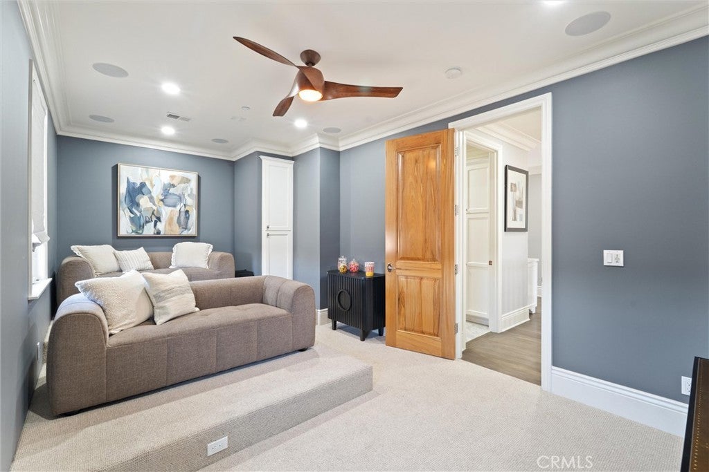 Wet Bar, Balcony, Breakfast Area, Ceiling Fan(s), Crown Molding, Separate/Formal Dining Room, Pantry, Recessed Lighting, Bedroom on Main Level, Primary Suite, Walk-In Pantry, Walk-In Closet(s), Built-in Features, Central Vacuum, Jack and Jill Bath, Quartz Counters, Smart Home, Tandem, Wine Cellar, Wired for Sound