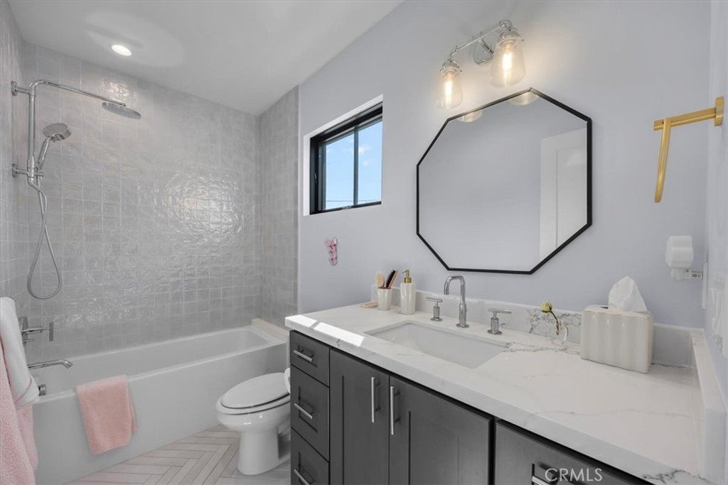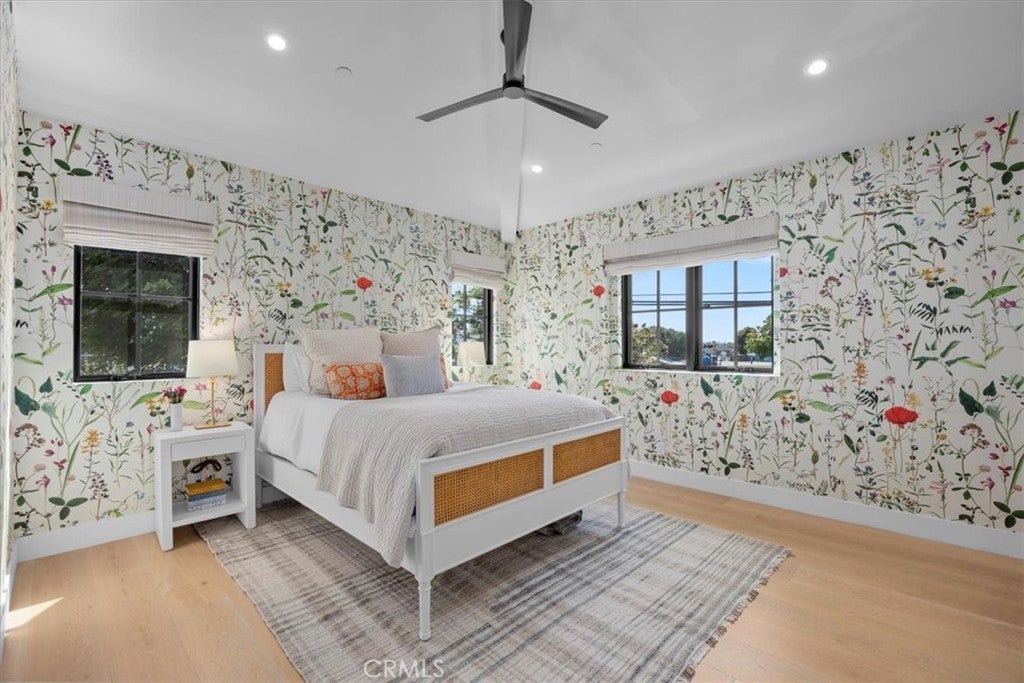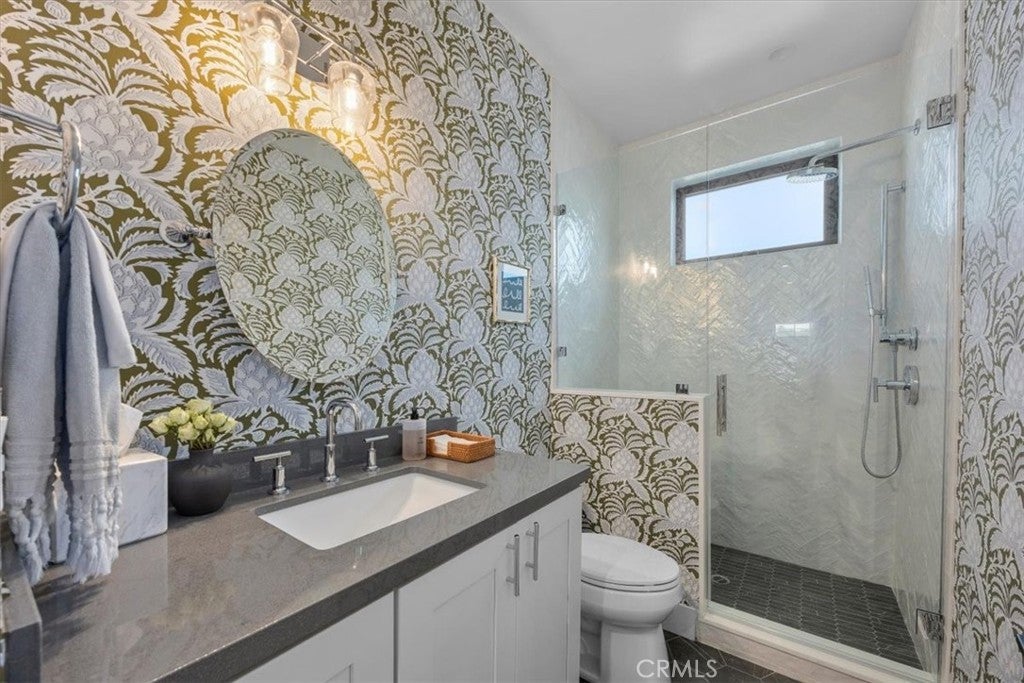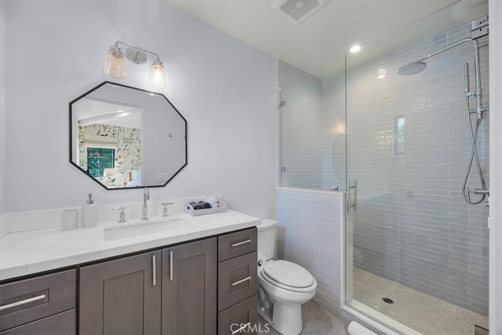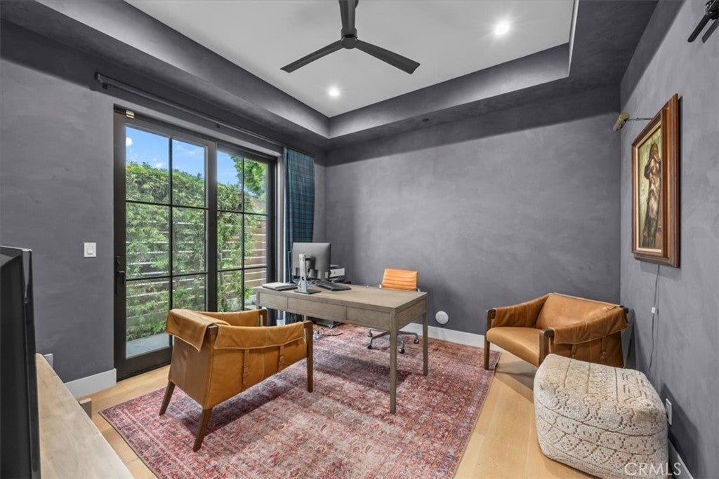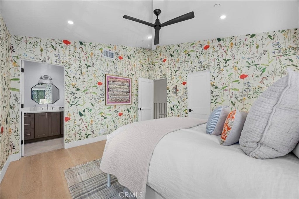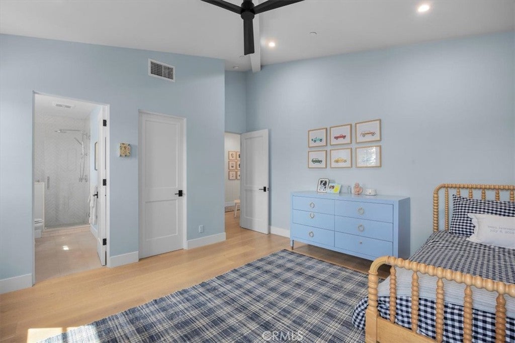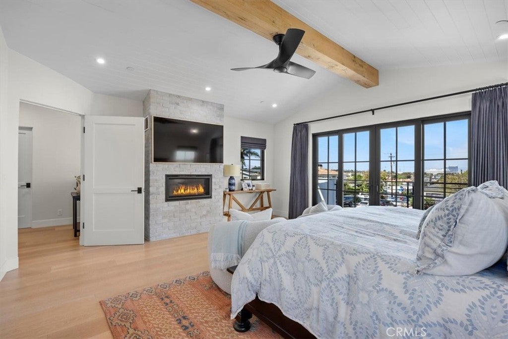 This exceptional five-bedroom, five-bath residence offers a seamless blend of indoor comfort and outdoor sophistication. Designed with timeless craftsmanship and thoughtful detail, the open layout flows effortlessly from welcoming living spaces to a serene backyard retreat. Created in collaboration with a decorator who previously worked closely with Nancy Meyers, the home captures that signature sense of warmth and layered refinement—spaces that feel both timeless and effortlessly livable. The family room features reclaimed wood beam ceilings, custom built-ins, and a striking fireplace, opening through concealed stackable sliders to an inviting outdoor lounge with a built-in BBQ, bar counter, and firepit-ready seating area. The professionally landscaped yard includes eco-conscious turf and a spacious play area—ideal for entertaining or relaxing in style. The chef’s kitchen is both functional and refined, anchored by a generous island with handcrafted cabinetry, floating wood shelving, designer tilework, and stone countertops. A walk-in pantry, beverage bar, and top-tier appliances—including a built-in beverage refrigerator—create an effortless flow between everyday living and entertaining. A light-filled living room with shiplap accents and a cozy fireplace extends to the covered front porch, while a custom built-in mud area and finished two-car garage add convenience. The main-level guest suite offers private outdoor access, perfect for visitors or a dedicated home office. Upstairs, the primary suite is a tranquil retreat with vaulted reclaimed-wood ceilings, a brick fireplace, dual custom closets, and a spa-inspired bath featuring a freestanding tub and walk-in shower. Each additional bedroom includes its own en suite bath and abundant natural light. Refined finishes include wide-plank hardwood floors, curated lighting, 10-foot ceilings, tankless water heater, upstairs laundry, and sustainable landscaping. Ideally located near award-winning schools, Polliwog Park, Manhattan Village, and the beach, this home embodies elevated design and effortless comfort.