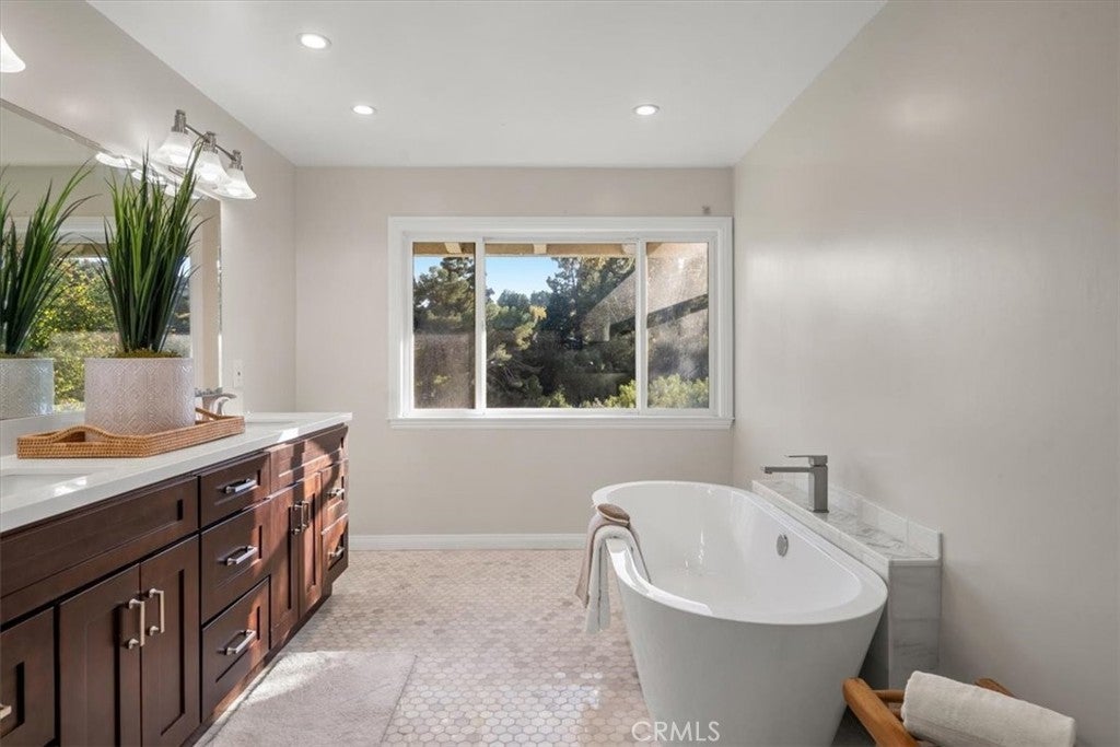 Price Improvement for this exceptional Southern California home. Come take a look at this beautiful 4-bedroom 3-bathroom home with a versatile bonus room, offering 2,800 sq ft of interior living space set on an expansive 22,637 sq ft lot. Nestled on a tranquil tree lined street in one of Rolling Hills Estates most sought-after neighborhoods, this "Ranchview" home delivers an unmatched lifestyle of privacy and convenience. The open-concept living and dining areas are filled with natural sunlight and designed for both relaxed everyday living and the epitome of indoor-outdoor entertaining. The well appointed kitchen flows directly out to the backyard where you're greeted with both open and covered patio areas, an outdoor BBQ island, and a gas firepit to make entertaining and dining alfresco a breeze. The three spacious bedrooms downstairs provide comfort for family and guests, while the bonus room offers flexibility for a home office, fitness room or a guest room. The cozy fireplace, which is situated in the middle of the living rooms, provides warmth and ambiance for those chilly evenings. Retreat to the primary suite upstairs, complete with a spa-inspired ensuite bathroom, walk-in closet, and peaceful garden views. In addition to the patio and grassy area, the backyard unfolds several levels down the canyon, creating a picturesque natural escape. Wander down through terraced gardens filled with a variety of mature fruit trees, offering the joy of homegrown produce and endless opportunities for gardening and exploration. With its generous lot size, natural surroundings, and spacious interior, this home is truly a rare find. Located minutes from top-rated schools, scenic equestrian and hiking trails, tennis clubs, upscale shopping and dining, and easy access to freeways, this timeless property captures the very best of Rolling Hills Estates living. Don't miss your chance to make this exceptional residence your own!