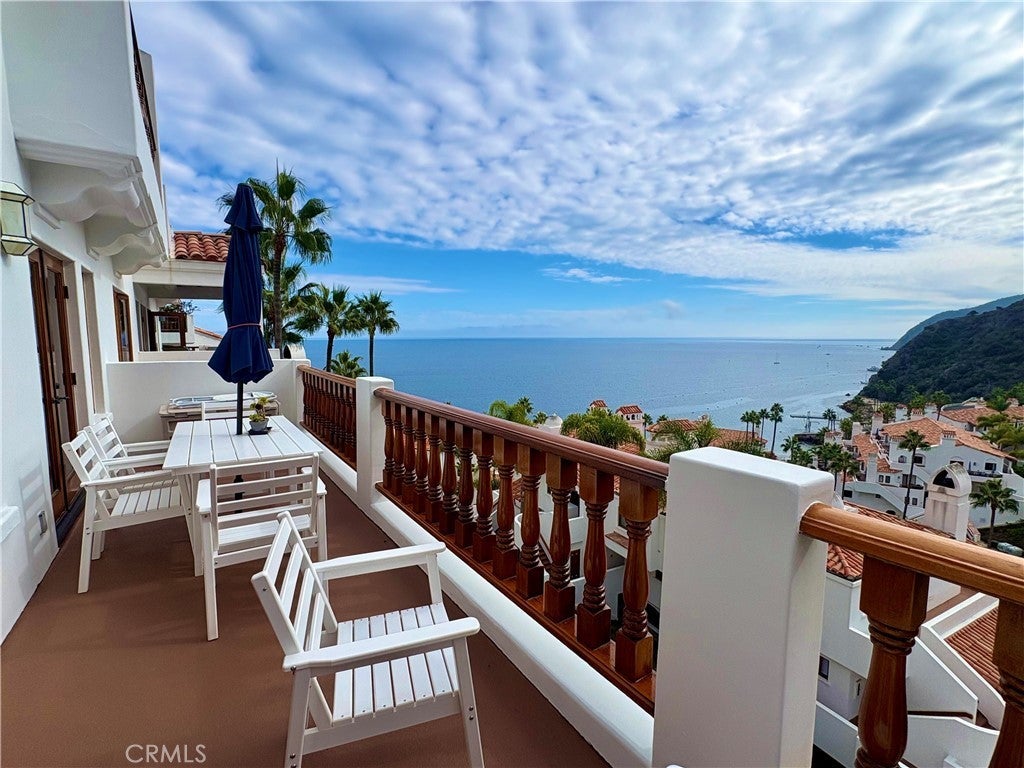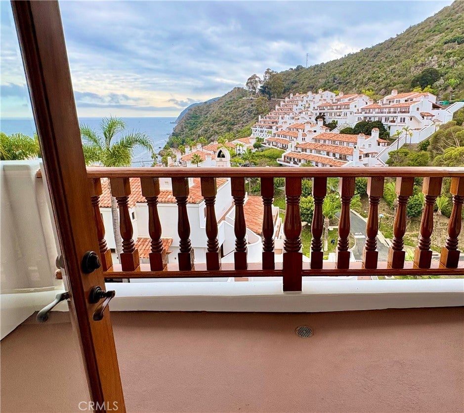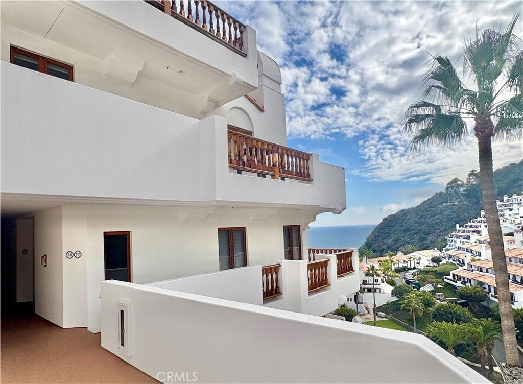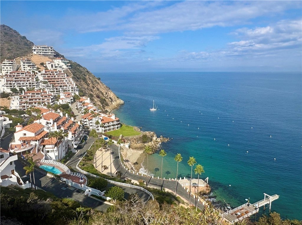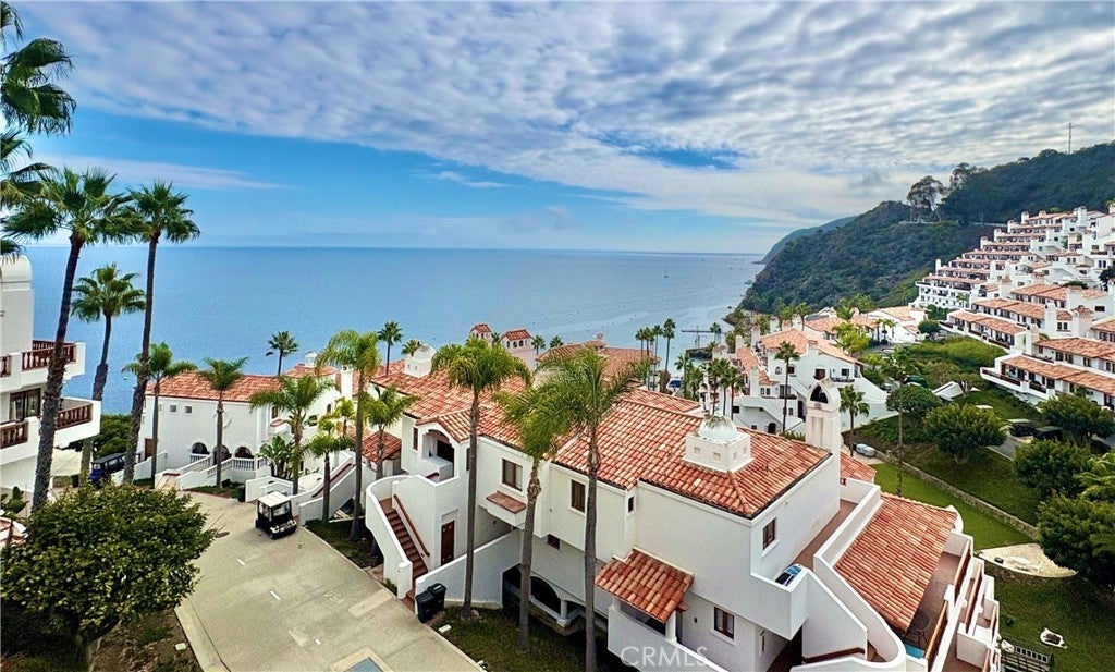 Stunning two-level Hamilton Cove Villa with an ocean view from every room! This 2BR/2BA villa offers approximately 1,660 sq. ft. of well-designed living space within the desirable Hamilton Cove gated community. The main level features a spacious entry with a storage closet, leading to a fully equipped kitchen with original tile, mahogany cabinetry, and a bar-height breakfast counter. A designated dining area with built-in cabinetry sits just off the kitchen. The living room has abundant natural light through wood-trim windows and double French doors that open to a private balcony offering an unparalleled view of both the ocean and the cove. Additionally, the living room has a queen sleeper sofa and plenty of room for relaxing and entertaining. A pocket door provides privacy for the main-level bedroom, or can be opened for a flowing abmiance. This bedroom includes 2 mirrored closets and French doors to the balcony. The main-level has a three-quarter bath with tiled counters, an adjacent laundry closet has washer, dryer and storage for convenience. A staircase from the entry leads to the lower-level primary suite, with French doors to private balcony, and additional private access to/from the property. The spacious "spa like" bathroom features a double vanity, soaking tub, and a separate shower and water closet. The villa is tastefully furnished and includes a Yamaha golf cart. Hamilton Cove amenities include a heated pool and spa, fitness center, 18-hole putting course, croquet court, sand volleyball court, pier, dock, some moorings and a beach area with built-in BBQs and picnic tables. HOA dues apply.