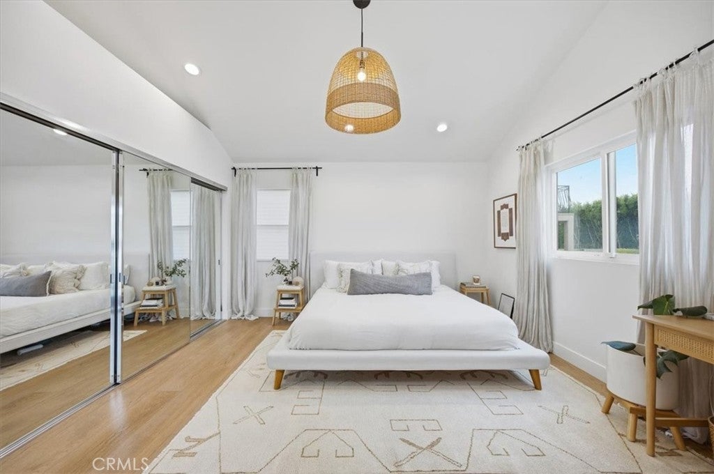 Nestled on an oversized Manhattan Beach lot, this charming single level home offers warmth, character, and a blend of thoughtful updates throughout. An impressive detached garage of approximately 900 square feet sits just behind the home and provides exceptional bonus space for parking, storage, a workshop, or exploring the potential for an accessory dwelling unit with verification to be completed by the buyer with the city. A spacious living room with a classic fireplace flows easily into an open dining area and a well designed kitchen that provides generous counter and cabinet space, a built in desk, ample storage, newer appliances, and a bright window above the sink that fills the room with natural light. Down the hallway are three comfortable bedrooms, including a welcoming primary suite with extra tall ceilings, wide plank luxury vinyl flooring, and its own private bath. One of the additional bedrooms also features a cozy bonus playroom space that has been tastefully updated, adding flexibility to the floor plan. The second bath offers both a tub and a separate shower, and all three bedrooms benefit from upgraded closet systems by California Closets along with premium sliding doors that enhance both function and style. The expansive lot offers excellent curb appeal and a spacious backyard with ample room to relax, garden, or play, including an additional ten feet of outdoor space located behind the garage for even more usable yard area. In the past two years the home has gained a new heating and air conditioning system with updated ducting, completely updated electrical wiring and plugs, an upgraded electrical panel, electric vehicle charging, and new recessed lighting and fixtures throughout. Additional highlights include a dedicated laundry room and a basement that provides valuable extra storage. Lovingly maintained and full of charm, this home offers comfort, flexibility, and a rare lot size in a highly desirable neighborhood.