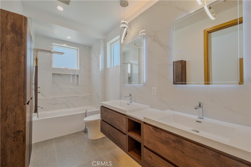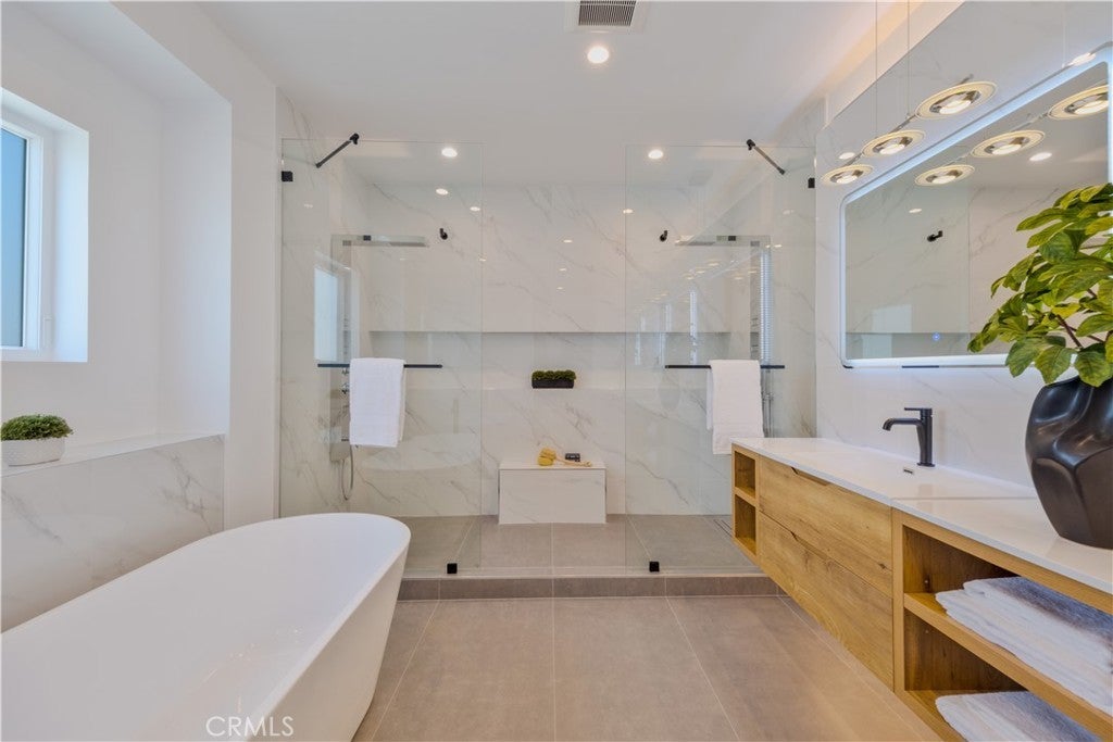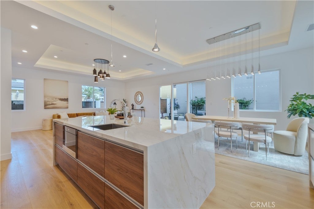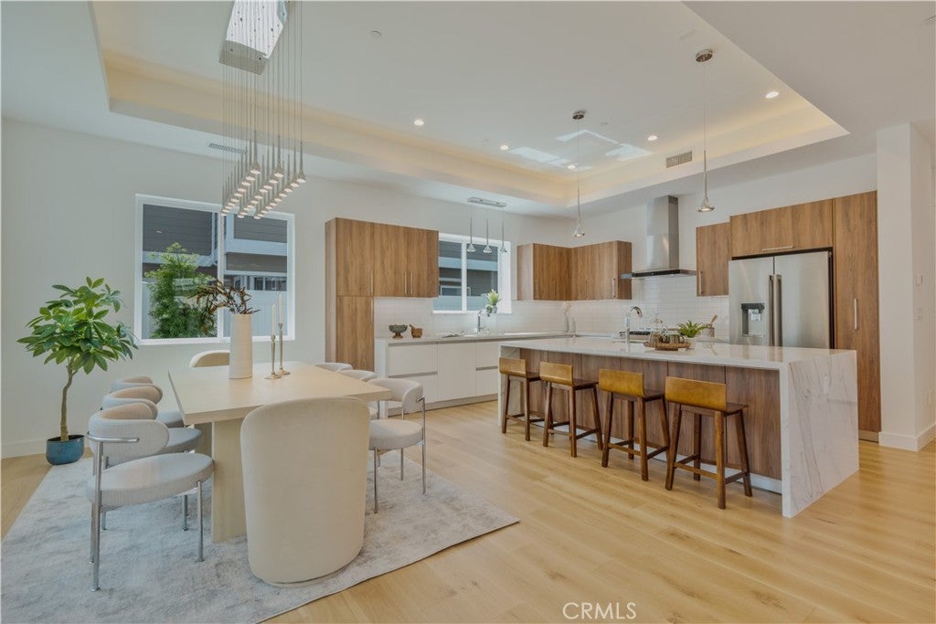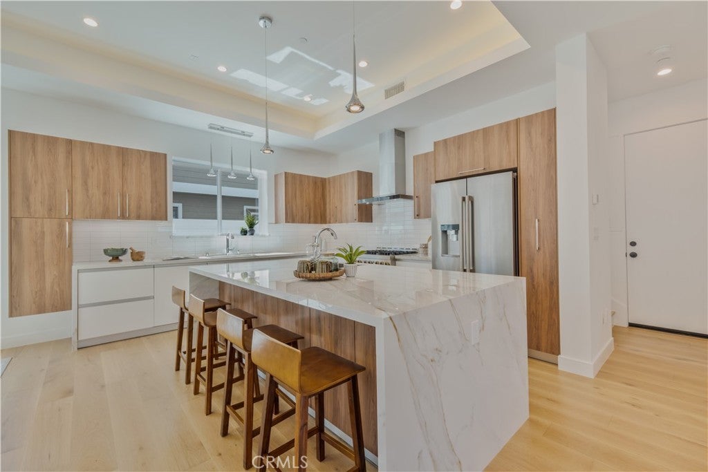 Step into modern luxury with this beautifully crafted 4-bed, 3.5-bath detached townhome, where thoughtful design and high-end finishes come together to create the perfect living space. Artfully designed by Alex Ioda, whose signature modern minimalism defines the home’s unique presence, and built by Ioda Construction Inc., this residence blends clean lines, warm textures, and purposeful functionality throughout. Wide-plank oak engineered hardwood flooring complements the custom-built cabinetry, durable porcelain kitchen countertops, and a striking waterfall island that serves as the home's central gathering point. High-end appliances, including a JennAir range, refrigerator, microwave drawer, and Bosch dishwasher, ensure a top-tier culinary experience, while under-cabinet lighting and a stylish dry bar add extra flair. The master suite is a true retreat, featuring a private balcony, a stunning walk-in closet, spa-like bathroom with double-glazed porcelain tiles, a standalone soaking tub, and a two-person shower. Custom built-in closets provide ample storage and imported solid Nordic Oak interior doors from Spain, complete with magnetic latches, add a sophisticated touch. Designed for convenience and modern performance, this home is equipped with a high-efficiency electric heat pump for heating and cooling, a hybrid water heater, and a central vacuum system. Seven Philadelphia Solar Panels and a SolarEdge Hybrid Inverter make it ready for energy-conscious living. Tech-savvy features include pre-wiring for surround sound, coaxial and ethernet connections throughout, and LED touch mirrors for a modern finish. The spacious walk-in laundry room with a sink, an electric vehicle charging outlet, and a central smart hub further enhance functionality. The home’s seamless indoor-outdoor flow makes it perfect for both relaxing and entertaining. Situated in the heart of North Redondo, you’re moments from top-rated schools, neighborhood parks, and the best of South Bay living. WHEN YOU BUY HERE, YOU’RE BUYING A LIFESTYLE.
