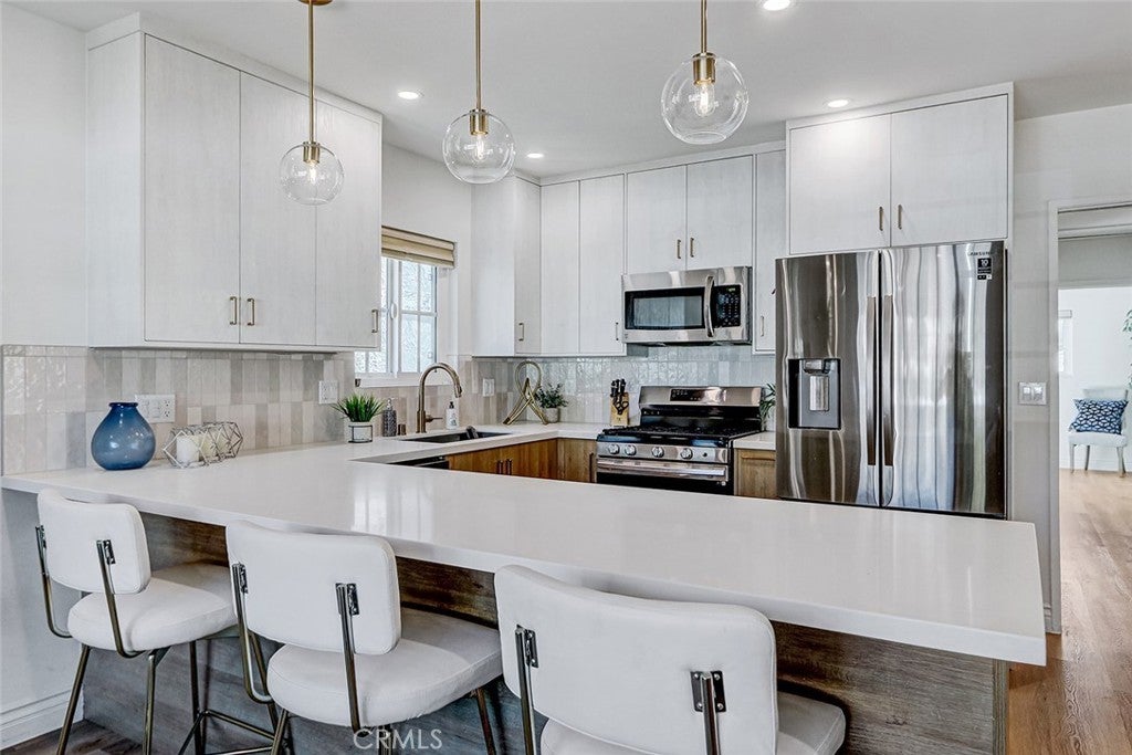 Great new price! Look, here it is! Home! This beautifully modernized, efficient home features an open floorplan, maximizing the sense of space. New luxury flooring throughout. The kitchen is a knockout, featuring clean lines and contemporary design, with stainless steel appliances and sink. Enjoy the sleek lighting, both from designer fixtures and recessed lights. The primary bedroom in back is surprisingly spacious, with plenty of light and closet space. A second bedroom is also bright and comfortable. Your modern bathroom features classy tile in the walk-in shower, slick fixtures and open shelving. The quality of all of this work stands out, as it was a labor of love by the homeowner. Now, as much as this home is tricked-out and move-in ready, there’s potential, too! See the very spacious backyard. It’s a blank slate, waiting for your ideas… A lush garden? Sports court? Outdoor entertaining space? There’s a lot to work with. This street-to-alley lot puts a 2-car garage at the rear of the property on a quiet alley. Ever considered adding an ADU? You have good options here. All of this in an ultra-convenient location in San Pedro’s friendly Holy Trinity neighborhood, just one stoplight from the 110 Freeway and Vincent Thomas Bridge, and walking distance to grocery stores, restaurants and shops. Be here as San Pedro builds out its exciting new waterfront project. What a great place to grab your own front-row seat!
