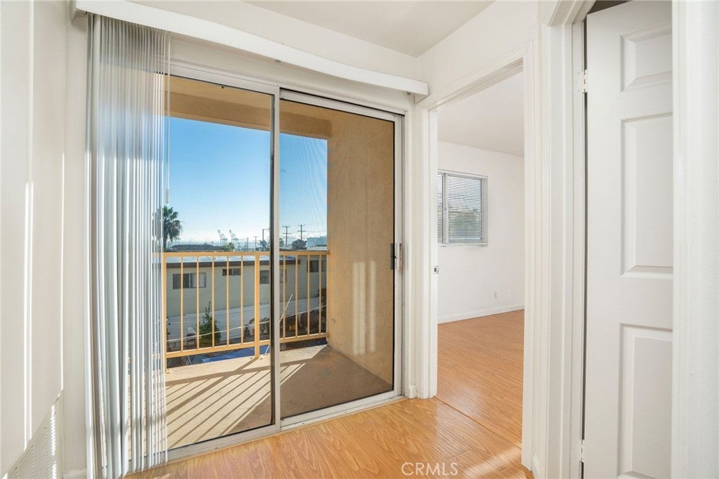 Welcome home to the LOWEST priced townhouse style condo with 3 spacious bedrooms, 3 baths and 3 balconies in San Pedro! This home has been thoughtfully refreshed in 2025, featuring new interior paint, updated bathrooms with modern vanities and fixtures, re-grouted counters, a refreshed white kitchen with newly painted cabinets and modern hardware, updated lighting, and detailed touch-ups throughout — making it fully move-in ready. The lower level features two generously sized bedrooms, including a primary suite with a large walk-in closet, a bonus office/retreat, and a private balcony. A separate side entrance offers flexibility for guests, work-from-home needs, or multi-generational living. The laundry area is conveniently located on this level with side-by-side machines. Upstairs, enjoy an open and bright living room that flows into the refreshed kitchen with ample cabinet and counter space, a breakfast bar, and access to a second balcony with neighborhood views. The third bedroom and a bath with walk-in shower are ideally positioned on the opposite side of the living area, offering excellent privacy for family, roommates, or guests . Additional highlights include highly desired two side-by-side parking spaces with storage in a secured garage, low-density living in a boutique 4-unit building, and HOA dues that cover water, insurance, common areas, and management.This ready to move-in home is on a cul-du-sac and is conveniently located, close to 110 Freeway, supermarkets, the beach, downtown San Pedro restaurants and coffee shops.