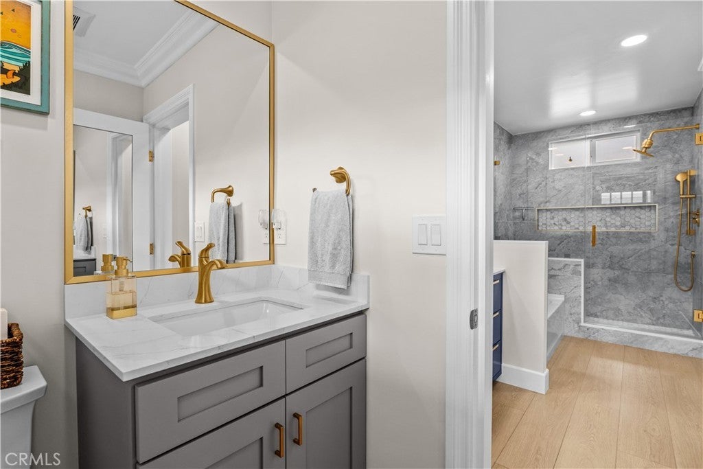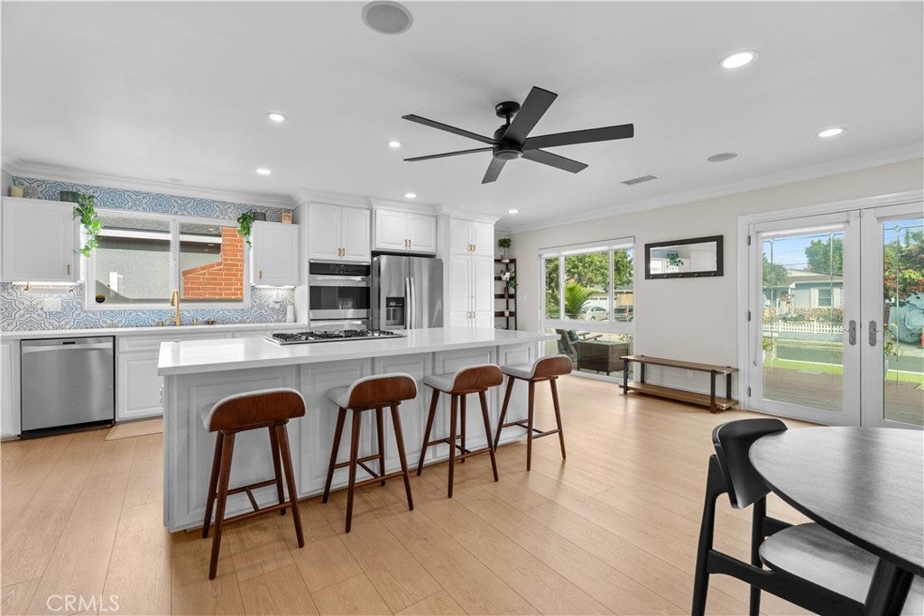 Welcome to 22631 Kathryn Ave, a beautifully reimagined coastal-inspired home in one of Torrance’s most sought-after neighborhoods. Step inside to discover brand-new flooring and an inviting open-concept living space designed for effortless entertaining. The stunning chef’s kitchen features sleek new countertops, an oversized island with a built-in beverage refrigerator and a professional cooktop, plus a stylish coffee bar and coffee cabinet that add both charm and functionality. Every detail has been elevated, from the solid wood doors with brass hardware to the custom closet doors and built-in cabinetry in the laundry room. Fresh interior paint complements the home’s thoughtful upgrades, creating a bright and cohesive aesthetic throughout. Both bathrooms have been transformed into luxurious spa-like retreats, complete with West Elm vanities, designer finishes, and a serene ambiance. Modern comforts abound with a new HVAC system, tankless water heater, and updated amenities that enhance everyday living. The home seamlessly connects to the outdoors, where you’ll find a relaxing jacuzzi, outdoor shower, and new vinyl access gate for added privacy. French doors have been newly installed from the garage, opening the space to the backyard and enhancing indoor/outdoor flow. The garage itself is fully upgraded with epoxy floors, cabinetry, overhead storage, and even a concrete slab behind the garage for additional storage needs. Perfectly located, this home offers the best of the South Bay lifestyle—just a 12-minute bike ride to the beach, a short stroll to Seaside Elementary, and only five minutes on foot to the magical Torrance Christmas Lights neighborhood. Stylish, functional, and ideally situated, this is coastal living at its finest.