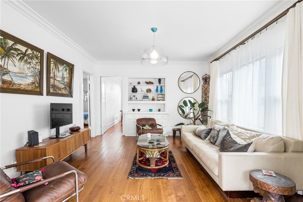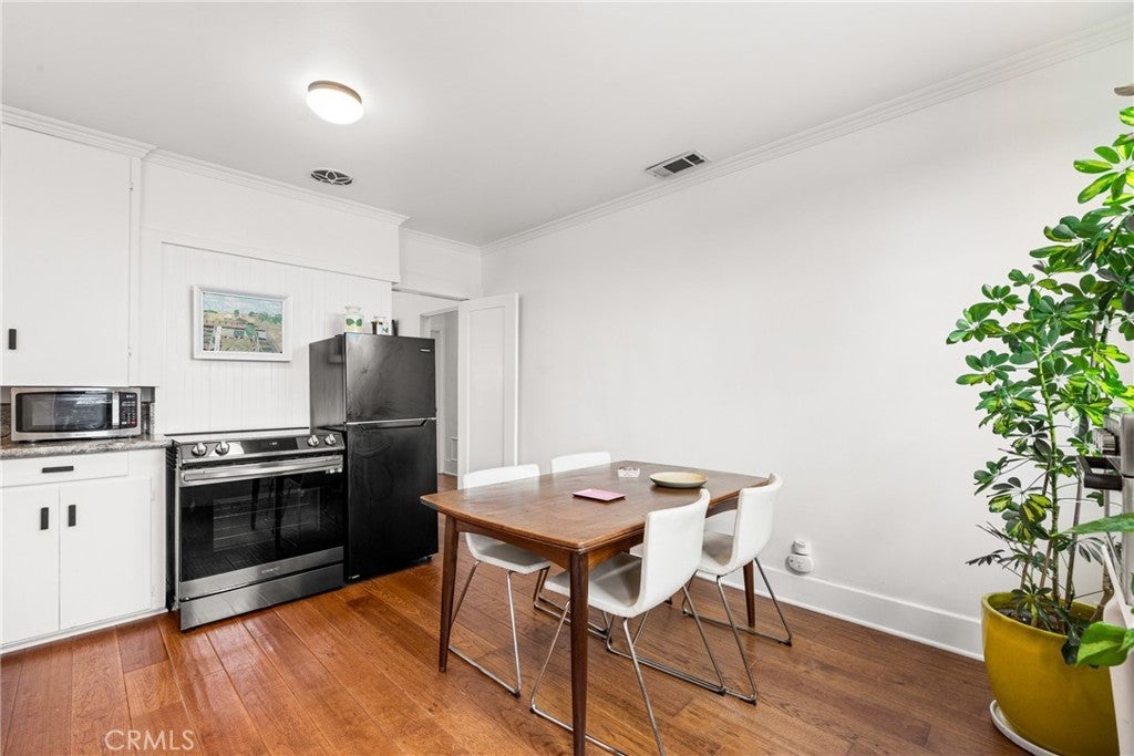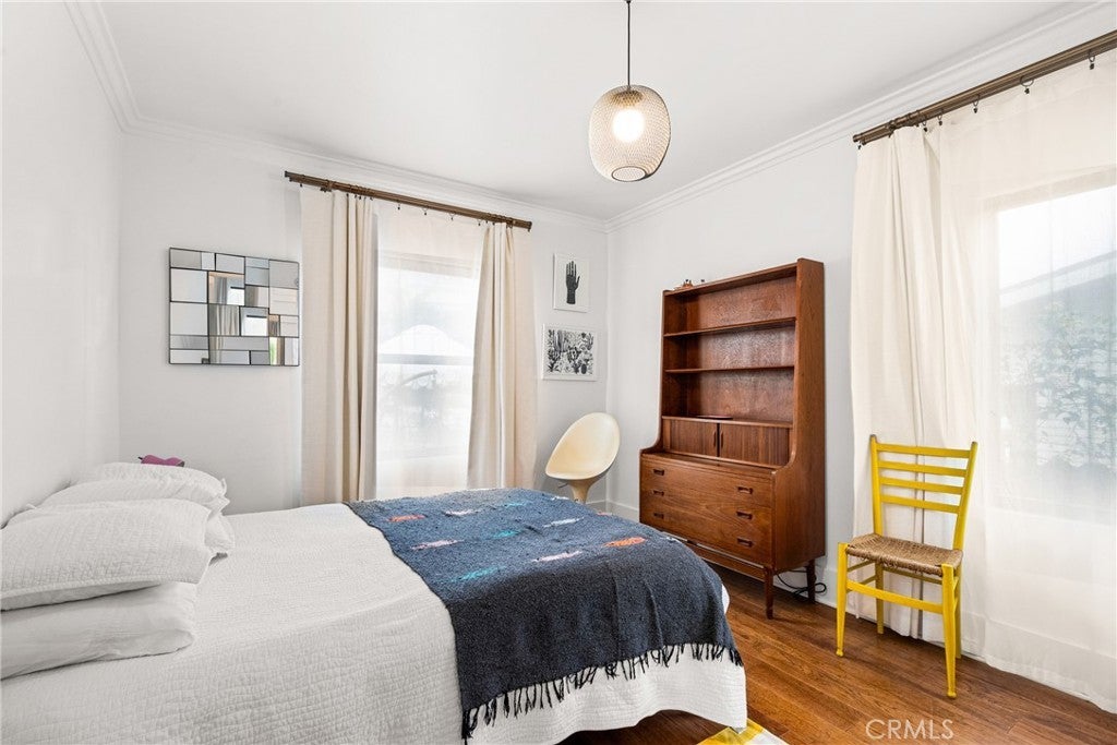 This remodeled coastal cottage blends historic charm with modern updates in one of San Pedro’s most desirable beachside neighborhoods. Offered as a month-to-month rental with a minimum three-month stay and a maximum term of one year, the home is located just a short distance from Cabrillo Beach on the gentle slopes of the Whiskey Flats area. The interior features refinished wood floors, a marble-floor entry suitable for a small workspace, and an updated eat-in kitchen equipped with a new stove, refrigerator, microwave, dishwasher, and an in-kitchen washer and dryer. New casement windows in the bedrooms and bathroom provide natural light and coastal breezes, while updated voile and linen curtains, privacy blinds, and dimmable lighting add comfort throughout the home. Furnishings include a curated blend of mid-century and modern pieces, new beds and linens, original artwork, and large houseplants. Outdoor living spaces include a balcony off the kitchen with a peek-a-boo ocean view, a private front garden with drought-tolerant landscaping, solar pathway and hanging lighting, and a small bubbling fountain. The front patio offers dining and seating areas, with additional seating along the side driveway. The property also provides an outdoor clothesline, secure locked bike storage, and under-house storage space. Convenience features include keyless entry and multiple exterior motion-sensor lights. Garden maintenance is provided one to two times per week to maintain the landscaping and outdoor areas. The home is located near a neighborhood café, diner, and market, with convenient access to Trader Joe’s, Sprouts, local movie theaters, and the 110 freeway. Downtown San Pedro offers a weekly farmers market, restaurants, fitness studios, creative spaces, and the upcoming West Harbor waterfront development. A seasonal weekend tram from Cabrillo Beach connects the area to the downtown district, adding to the convenience and coastal lifestyle this location provides.