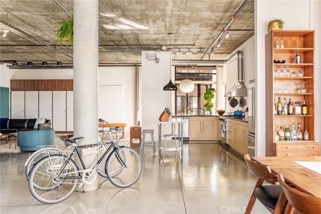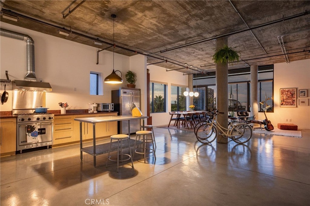 Perched on the top floor of the iconic Temple Lofts, this corner unit delivers the kind of design, light, and privacy that define true loft living. With nearly 1,800 square feet of open space, this one-bedroom home blends industrial architecture with modern upgrades in a way that feels both refined and effortlessly cool. The northwest-facing orientation is a standout feature—floor-to-ceiling windows capture treetop views, wide-open sky, and colorful sunsets, filling the space with natural light all day long. Because of its corner location within the complex (facing 9th St), you get an uncommon sense of openness and privacy that’s rare in urban living. The private balcony extends your living space outdoors, making this home feel even larger and more connected to its surroundings. Inside, polished concrete floors, soaring ceilings, exposed ductwork, and clean architectural lines set the tone. The chef’s kitchen features stainless steel appliances, granite counters, and a freestanding island perfect for cooking, hosting, or casual dining. The layout flows effortlessly between living, dining, working, and lounging moments—ideal for those who value both style and functionality. A newly added full-height bedroom wall creates a fully enclosed primary suite while preserving the loft’s open flow, enhanced by a custom floor-to-ceiling primary closet and a beautifully designed entry closet, both by California Closets. Originally built in 1927 as the Long Beach Masonic Temple, Temple Lofts is a celebrated example of adaptive reuse, where key architectural elements were thoughtfully preserved during its 2005 residential conversion. The lobby retains its original 1920s character, complete with historic tile, light fixtures, and period-appropriate detailing—setting a distinct tone the moment you enter. Modern conveniences complement the historic charm, including a fitness center, resident lounge, community deck with BBQs and a fire pit, secured guest parking, and on-site management. Unit 519 also includes a private storage cage (conveniently located at the entrance of the storage room) and two assigned side-by-side parking spaces for everyday ease. Located in the heart of Long Beach, you’ll have easy access to the city’s best dining, coffee shops, farmers market, boutique fitness studios, entertainment, arts, and the waterfront—making this home an ideal landing spot for those who want space, style, and a connected urban lifestyle.