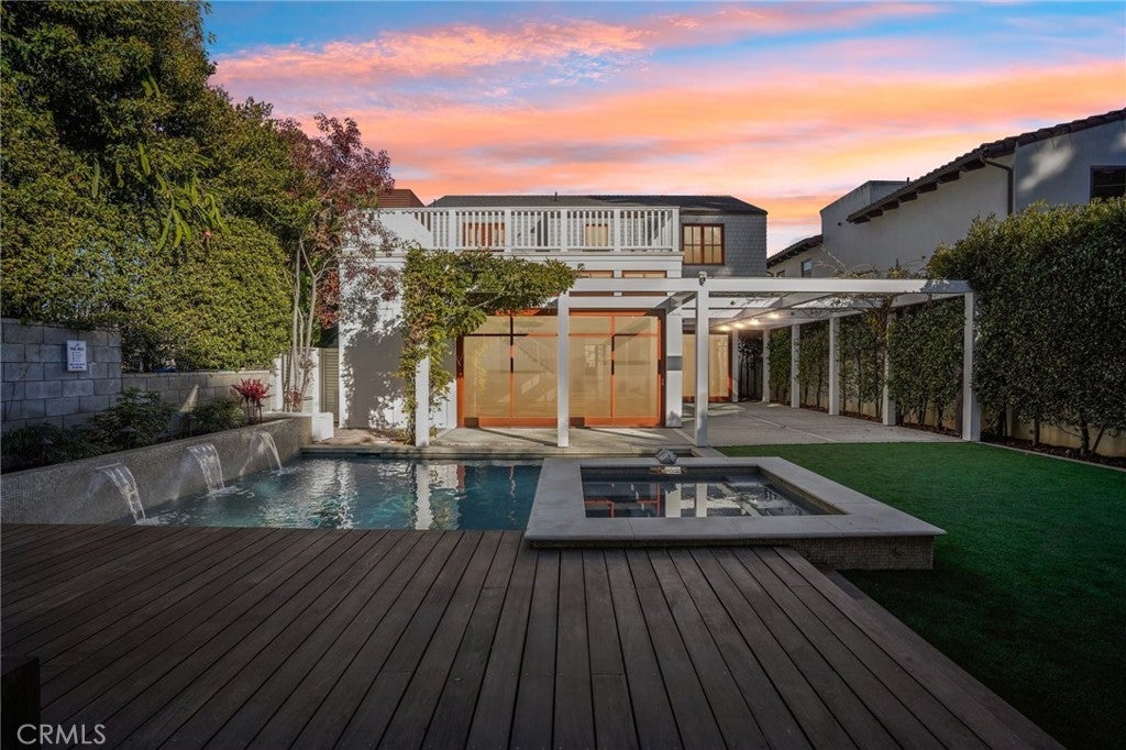 Set on one of Hermosa Beach’s most sought-after Hermosa Valley streets, 2119 Power Street offers a rare combination of scale, privacy, and timeless design — all on an expansive almost 11,000 square foot lot. Designed by Jon Starr, this home pairs thoughtful architecture with warm, coastal sophistication — creating an atmosphere designed for everyday ease and elevated living. A sun-filled two-story entry sets the tone, drawing your eye through the interior of the home to the large backyard and pool. The main level unfolds into an expansive, open living space anchored by a gourmet kitchen with a large center island, a spacious dining room with large custom doors opening to the yard, and a beautifully detailed family room surrounded by sliding doors, large windows, and clerestory windows that flood the space with natural light. The indoor–outdoor connection is exceptional. Through 9-foot sliding doors, the living areas open to a resort-like backyard featuring a pool with attached spa, generous patios, and a built-in firepit that becomes a natural gathering spot year-round. The yard extends upward into a thoughtful terraced design, with an elevated turfed second level ideal for meditating, reading, entertaining, or lounging, or even reimagined as a pickle ball court. The lot continues further with a private garden perfect for growing herbs, fruits, and vegetables — a retreat within a retreat. Upstairs, the primary suite offers a quiet sense of escape with dual walk-in closets and a spa-inspired bath. Four additional bedrooms complete the level, including one that opens to a spacious terrace overlooking the pool and lush yard. At the front of the home, a custom bar and entertaining room opens to a welcoming porch — a signature detail of the home and a favorite place to unwind above one of Hermosa’s most cherished streets. Recent updates include new interior and exterior paint, a new roof, refinished hardwood floors, and new carpeting — enhancements that refresh the home while honoring its original craftsmanship and coastal character. Power Street is a truly special enclave — peaceful, beautifully situated, and just a short stroll from the beach, Valley Park, schools, and the best of Hermosa living. Homes of this scale and quality rarely become available here. 2119 Power Street stands as a distinctive offering in one of Hermosa Beach’s most beloved neighborhoods.