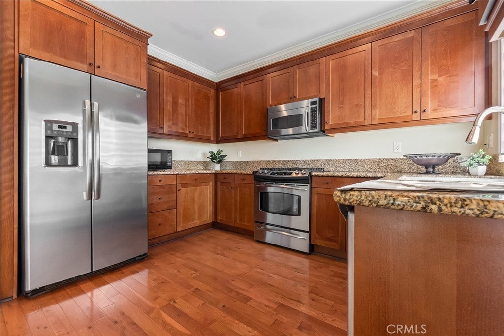 Rare opportunity in Old Town Torrance! This light-filled end-unit townhome offers a true 3-car tandem garage with additional enclosed storage; a standout feature rarely found in the area. Well maintained Mediterranean-style townhome in Historic Old Town Torrance. This well-kept 3-bedroom, 2.5-bath end unit offers a rare combination of privacy, abundant natural light, and turn-key presentation. With only one shared wall, end-unit windows allow for a bright interior, making this home a standout within the 20-unit community. The main floor features a living room designed for comfort and style, with soaring ceilings, crown molding, recessed lighting, hardwood floors, and a gas and wood-burning fireplace. The kitchen, with stainless steel appliances and abundant cabinetry, flows effortlessly into the dining area and opens to a private balcony, ideal for entertaining or relaxing. Upstairs, all three bedrooms feature new plush carpeting and large windows, with open views and cool coastal breezes. The spacious primary suite offers a separate shower, soaking tub, generous walk-in closet and additional private balcony. Exceptional highlights include the oversized 3+ car tandem garage, with enclosed storage and a standing washer and dryer—making this home a rare find in Old Town Torrance. Conveniently within walking distance of local shops, restaurants, and parks, with easy access to major transportation routes, and located in the Torrance Unified School District. Agent Remarks End-unit inventory with this layout, turn-key condition, and 3-car garage capacity makes it a standout in Old Town Torrance.