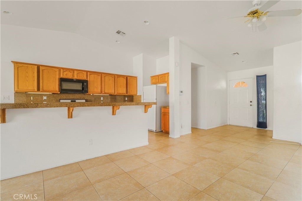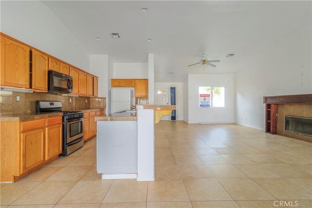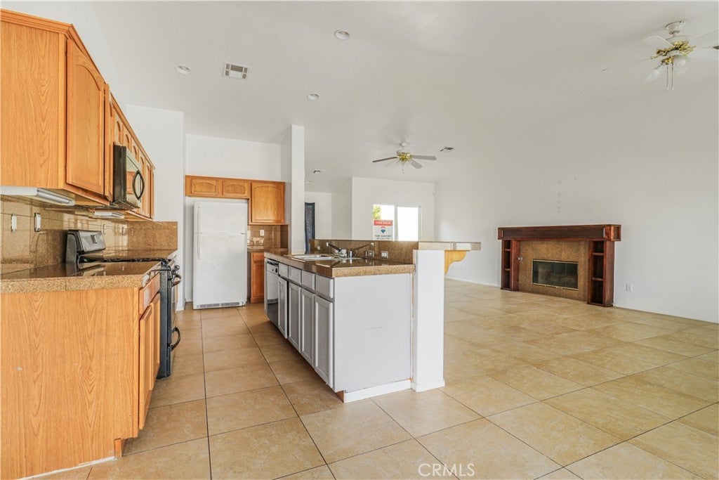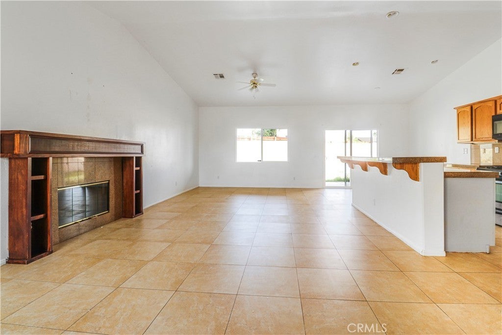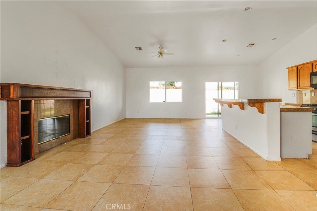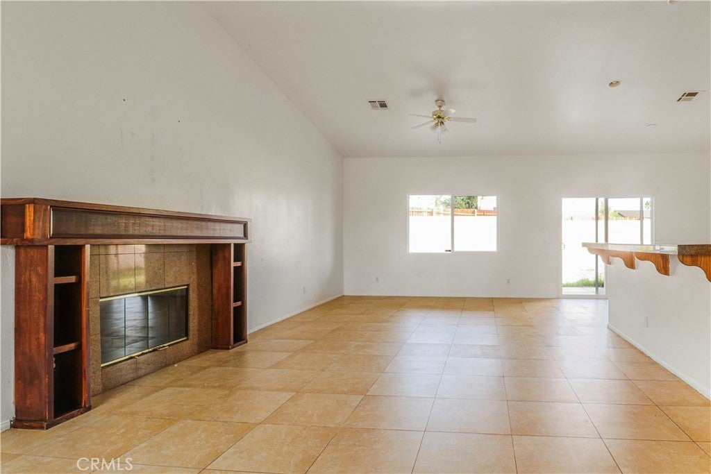 Welcome to this incredible four bedroom, two bathroom single story home offering 1,718 square feet of comfortable living space on a generous 7,405 square foot lot. The 2005 built property includes a spacious two car garage and is located in sunnny Desert Hot Springs. As you step inside, you are greeted by an open and inviting floor plan centered around a warm and cozy fireplace. Tile flooring flows throughout the family room, living room, kitchen and dining area, giving the home a clean and cohesive feel. A large window that brings in abundant natural light, creating a bright and uplifting atmosphere in every room. The kitchen is designed for both style and functionality. It features a central island with a stainless steel sink, granite countertops, refreshed cabinetry and stainless steel appliances. The in kitchen dining area is positioned next to a sliding glass door that opens to the backyard, allowing natural light to pour in and creating an easy transition from indoor to outdoor living. The primary bedroom offers a peaceful retreat with a double sink bathroom, a relaxing soaking tub and a spacious walk in closet. The remaining bedrooms are equally inviting. Each one enjoys great natural light and has its own closet, making them ideal for family members, guests or a home office. The backyard is truly impressive in size. It includes a full length patio that is perfect for outdoor dining, entertaining or simply enjoying the desert evenings. The low maintenance landscaping provides a clean foundation that is ready for your personal vision and creativity. This home is conveniently located near major highways, golf clubs, shopping, public transportation and a variety of dining options, making everyday living both easy and enjoyable.