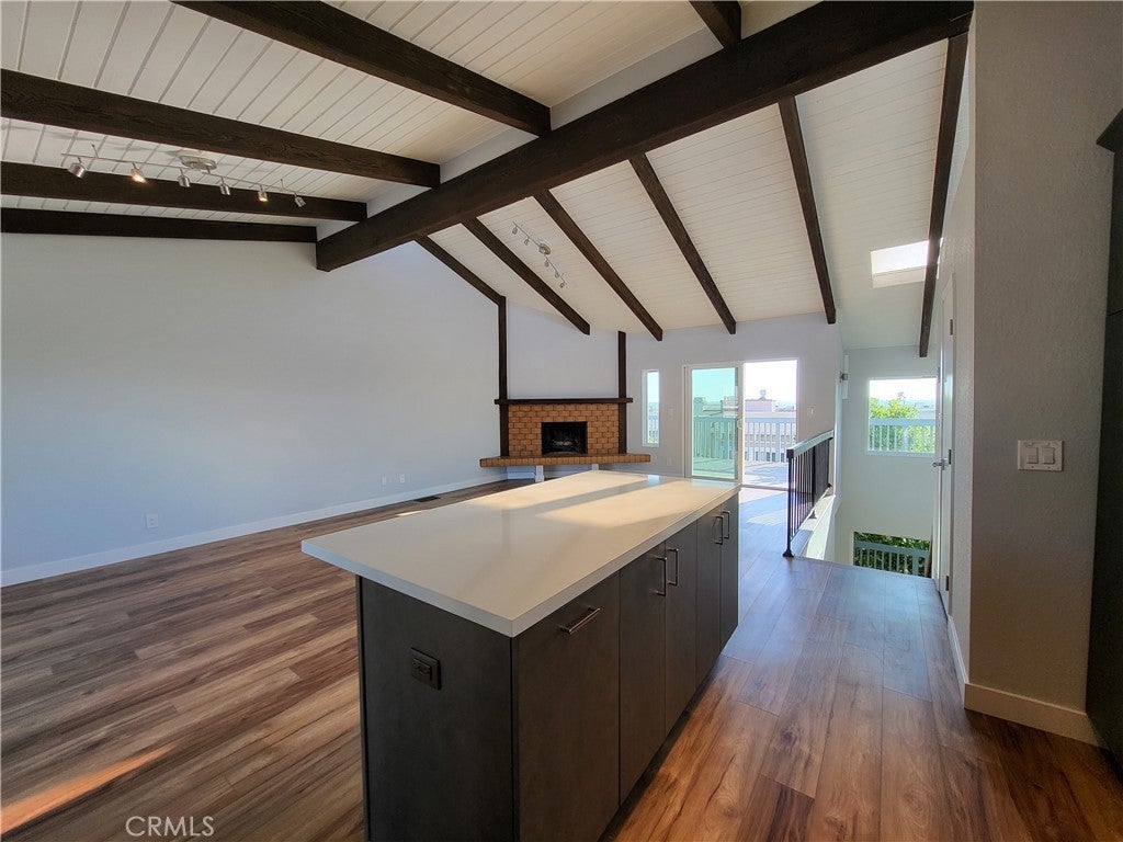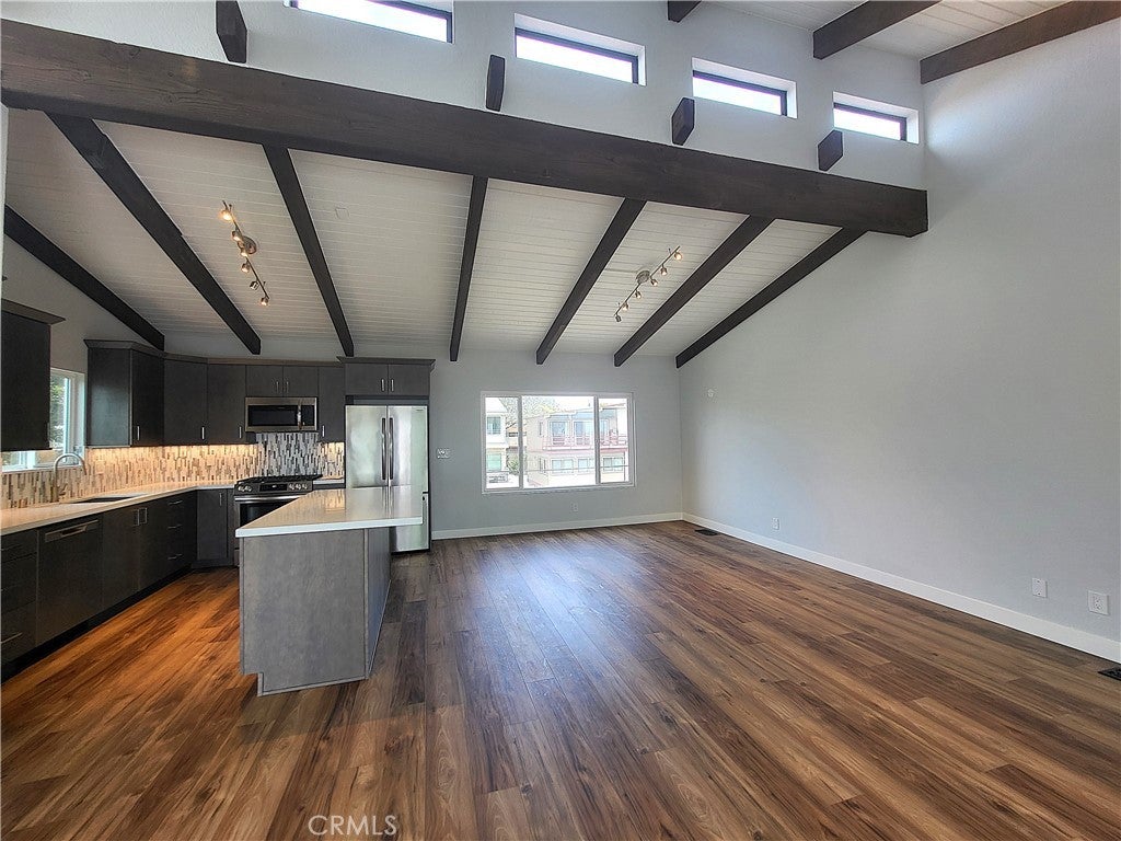 Hermosa Beach End Unit ~ Only 2.5 short blocks to the beach! Located West of PCH around the corner from the Hermosa Valley Greenbelt. A formal double-door entry leads to all levels. Downstairs you will find 2 guest bedrooms with shared full-size bath and plenty of storage in the hall closet. Halfway up to the top floor is a private & spacious primary bedroom en-suite with its own balcony, walk-in closet (with hidden loft access), remodeled bathroom with dual sinks, and dual shower with soaking tub. Upstairs you’ll find open living areas with vaulted beamed ceilings, remodeled kitchen, guest bathroom, gas fireplace, and access to a large deck with ocean views, room for seating, BBQing, and enjoying the beach life! The open concept kitchen comes offers sleek cabinetry, quartz countertops, S/S Frigidaire appliances, Kraus undermount sink, large island with eat-at breakfast counter, and pantry. Parking is a breeze with an attached 2 Car Garage with laundry hookups, and an additional driveway spot.