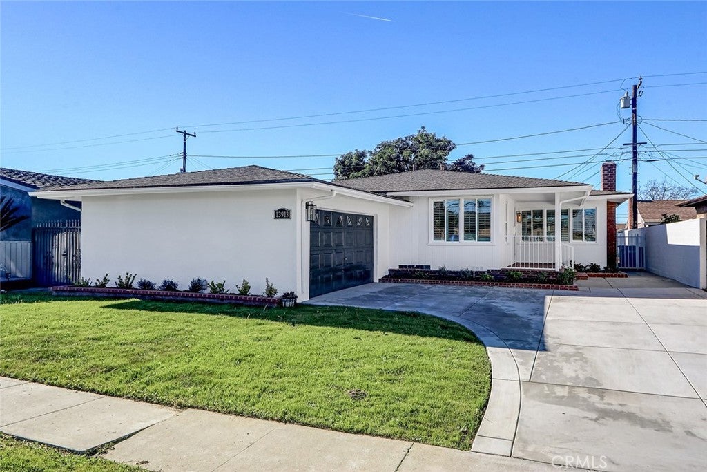 Tucked away on a peaceful cul-de-sac on one of the most desirable streets in Gardena, this spacious 3-bed/2-bath home just underwent a complete remodel inside and out. Upon arrival you're instantly greeted by tons of curb appeal with a timeless coastal exterior featuring white vertical siding and brick, newer windows, a large grass front yard, and fresh paint. Designed by top interior design firm Live Oak Interiors, this charming home has an ideal floor plan with an open concept living/dining area that opens up to the spacious covered patio and backyard. The large 150 square foot covered patio off the living room allows for the ultimate indoor/outdoor living and entertaining. The hardscaped backyard has tons of space as it wraps around the side of the property, allowing tons of room for kids to play. The chef's kitchen comes fully equipped with stainless appliances, quartz countertops, white shaker cabinets with brass hardware, and a custom Arto Brick handmade backsplash. Three large bedrooms each have ample closet space and tons of light. The two bathrooms have both been completely remodeled with new plumbing, fixtures, vanities, classic penny and subway tile, and a new tub in the hall bathroom. The laundry area off of the kitchen comes with a newer side by side washer/dryer included and additional cabinet storage. Upgraded mechanical systems in the house were fully permitted including central AC, newer windows and large living room slider, new copper and ABS plumbing throughout, new kitchen rewiring, an upgraded 200 amp electrical panel, new water heater, and a brand new concrete wall on the northern side of the property. In addition to this, the garage is fully finished off with new drywall, paint, and a fresh epoxy floor making it another usable space. Don't miss this A+ Hollypark cul-de-sac location within close proximity to schools, parks, and freeway access!