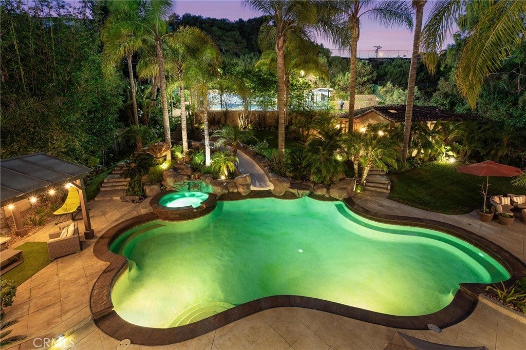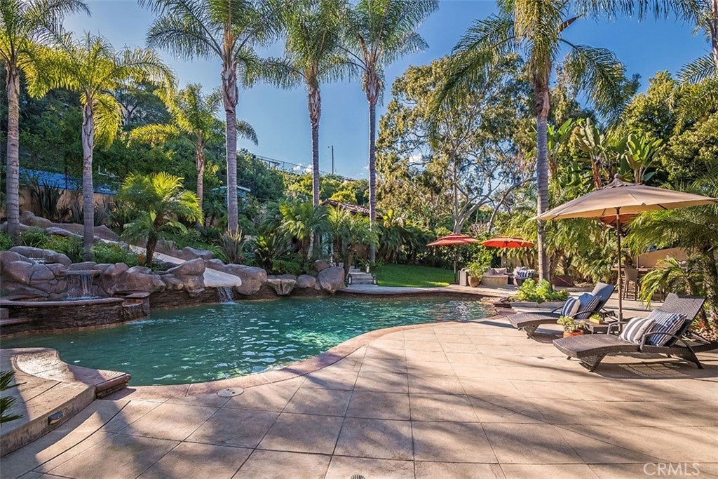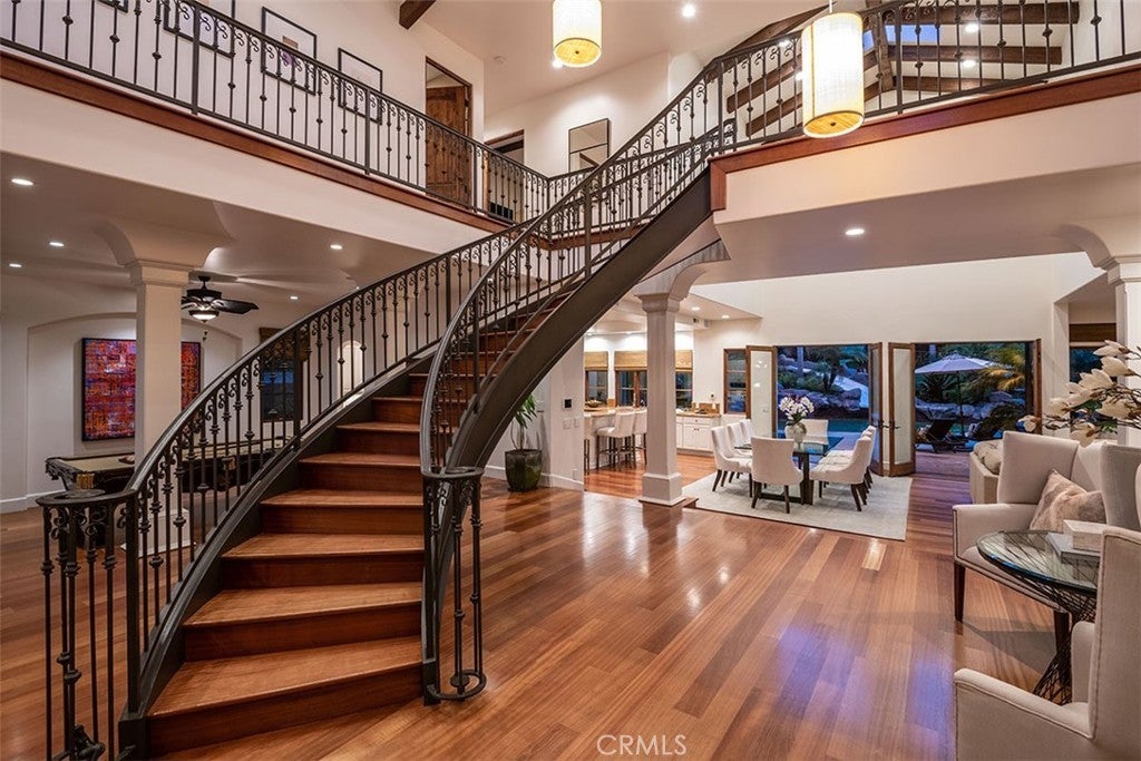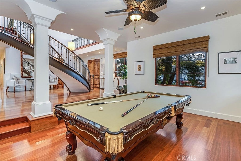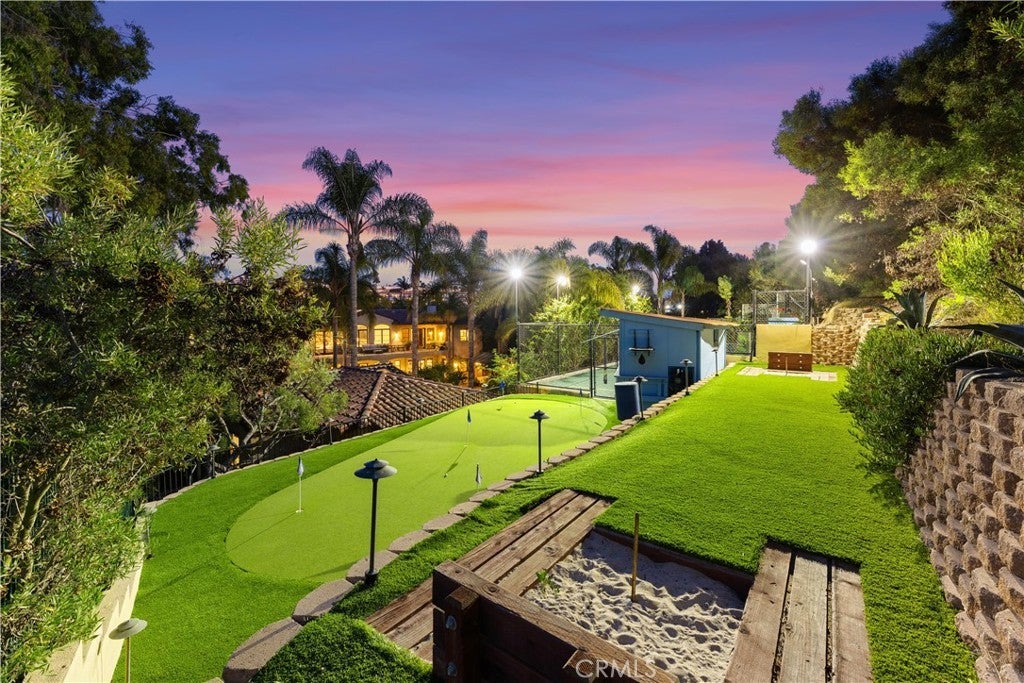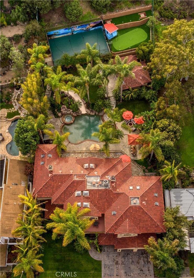 Nestled on the third largest lot in Hermosa Beach, this exclusive estate exudes an elevated atmosphere. Crafted in the style of a Tuscan compound, it seamlessly combines seclusion and practicality while being in close proximity to the mesmerizing waves of the Pacific Ocean. The main residence, featuring six bedrooms, epitomizes opulence and tranquility, equipped with cutting-edge technology such as an integrated Savant home automation system, movie theater, and a Tesla charging station bearing the signature of Elon Musk. Inside, the interiors are adorned with a 25-foot vaulted entrance, a gracefully curved staircase, expansive communal spaces, and a modern open-plan kitchen. Step outside, and you'll find an outdoor haven designed for entertainment. This area boasts not only a resort-style saltwater swimming pool resembling a tranquil lagoon but also a thrilling zip line for an added touch of adventure. Completing this outdoor paradise is a comfortable "living room" with a gas fire pit, a designated TV area with a fireplace, and a state-of-the-art 1,000 square foot sports court. A charming putting green awaits at the end of this outdoor oasis, providing the perfect space to practice your putting skills while enjoying the coastal ambiance. The guest retreat, nestled amidst lush tropical gardens, adds the final touch to this beachside villa, epitomizing the pinnacle of luxury living on the west coast.