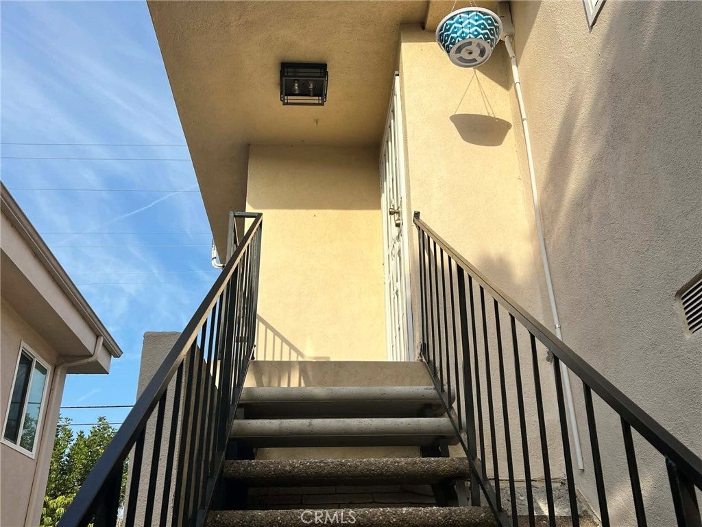 Beautiful 2 bedroom 1 1/2 bath upstairs unit with 1 car garage, laundry room, fridge, gas stove, and AC. No carpets. Plenty of air and light.