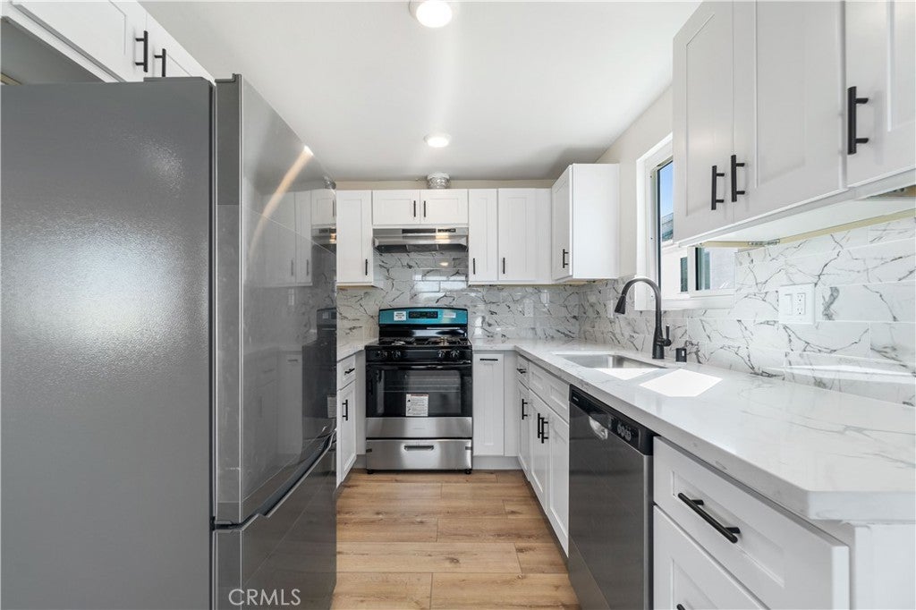Beautiful, modern renovations in this upstairs two-bedroom, two-bathroom spacious unit. Unit features luxury vinyl plank flooring, quartz countertops, modern tile work, white cabinets, recessed lighting, stylish fixtures and brand new appliances. Unit has a private balcony. Community laundry room for resident convenience. Just moments to schools, shops, restaurants, and freeway access. Near the vibrant 42-acre West Harbor Development, offering waterfront dining, retail, fresh markets, waterside recreation, and an outdoor amphitheater. Call to schedule a tour and one of these stunning units your home.