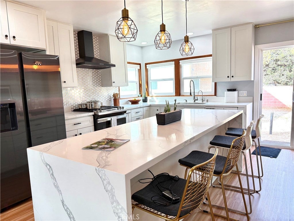 Great way to start the New Year! Look no further. This substantially remodeled Single family home offers a wide open floor plan, recessed lights, a quartz waterfall countertops in the spacious kitchen and an abundance of light from every side! New wood style flooring, newer kitchen quartz countertops, and newer cabinets. Has fridge and stove. Easy living as all this connects to the backyard through sliding glass doors. (Yard is divided with ADU in the back for privacy. Rental is only the house, not ADU.) This home includes two generous sized bedrooms. Use one as the main bedroom and the second for an office, guest room, or additional bedroom. Easy access in the newly remodeled walk in shower, all with very tasteful hardware and accents. Complete with a Split A/C unit, washer /dryer, 1 car garage and an extra parking spot on the driveway. Lovely neighborhood and the bonus is that it is not a through street! It is a "Very Walkable" area with a Walk Score of 74. Great location with lovely Craftsman style homes. Located near Anaheim High School, Benjamin Franklin Elementary School, and an abundance of restaurants you can walk to including Villains Brewing Company and the Anaheim Packing District. Close enough to take in a game at the nearby Angel Stadium and short distance to Disneyland. This very special property will not last long. The home will be move in ready mid January so apply soon! (Home comes unfurnished). Make sure to watch the video. Note that property is staged and currently has different furniture, etc.