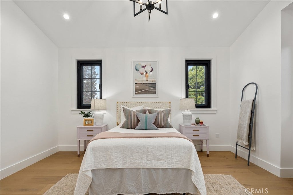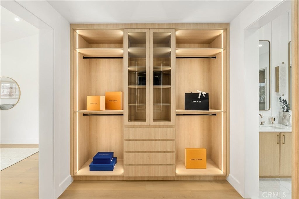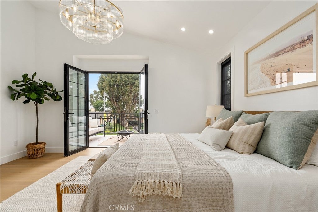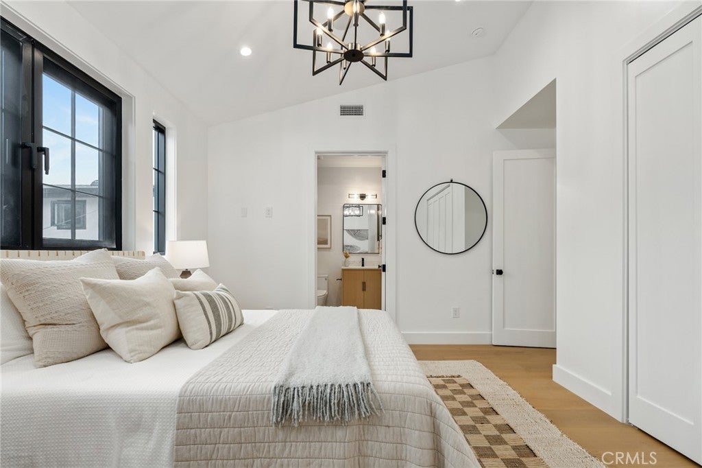 Exceptional new construction home in the heart of Manhattan Heights, Manhattan Beach, blending refined craftsmanship with modern coastal elegance. From the moment you enter, soaring ceilings on both levels and extra-wide European white oak hardwood flooring set a dramatic yet warm tone throughout. The heart of the home is the chef’s kitchen, thoughtfully designed with a full Thermador appliance package, sleek quartz countertops, and custom rift walnut cabinetry offering abundant storage. A spacious butler’s pantry adds both functionality and style which is perfect for entertaining and everyday living. The main level includes a generously sized bedroom with a private ensuite bathroom, ideal for guests or multigenerational living. Upstairs, natural light pours in through multiple skylights, creating a bright and inviting atmosphere. A versatile office or playroom with a metal-frame glass door opens to its own deck, providing flexible space for work or relaxation. Four additional bedrooms are located upstairs, including one with an ensuite bathroom and two connected by a Jack-and-Jill bath. The primary suite is a true retreat, featuring a private balcony, a custom walk-in closet with built-in cabinetry and lighting, and a spa-inspired bathroom with a custom rift white oak vanity, soaking tub, and beautifully selected tile flooring. Ideally located in close proximity to shopping, Meadows Elementary School, and Manhattan Village Mall, this thoughtfully designed home offers elevated finishes, exceptional natural light, and a layout tailored for modern living in a prime Manhattan Beach setting.