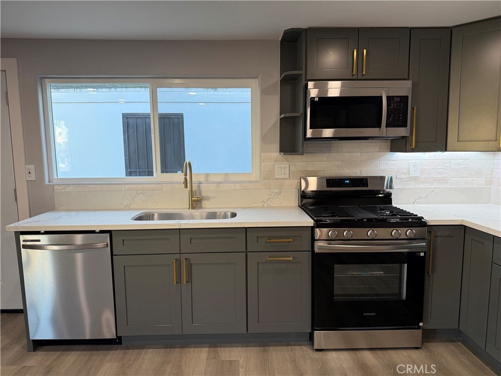 Fresh & modern renovated single story home with 3 bedrooms + 1 bathroom with a soaking tub. There is a single garage, your driveway + street parking available. Additional storage room in the back that is a detached but only a couple steps away- for your winter clothes or Christmas decorations. NEW: Flooring, recessed lighting, cabinets, paint, AC/heat and New Samsung appliances: Washer, dryer, dishwasher, stove/oven, microwave, and refrigerator. This home is a stand alone building + the garage that has its own privacy, with another building behind that has 4 units.