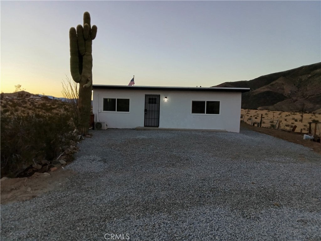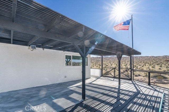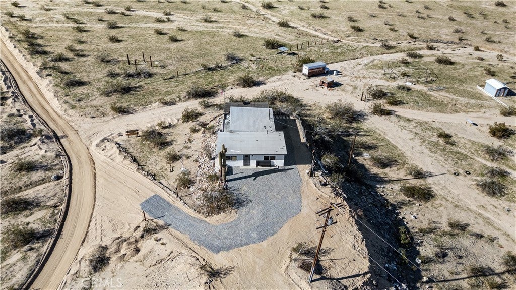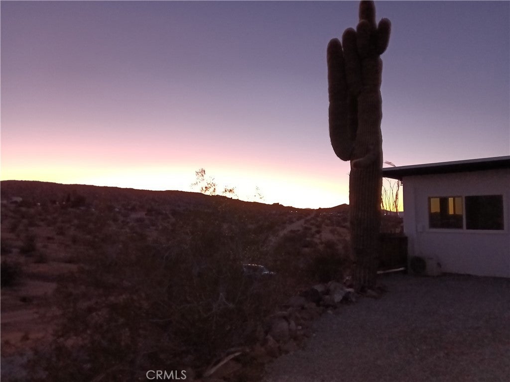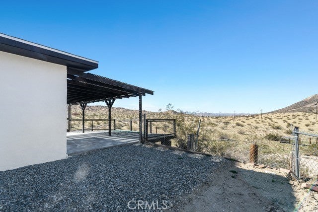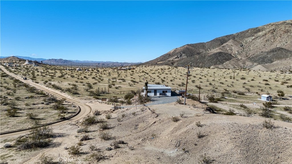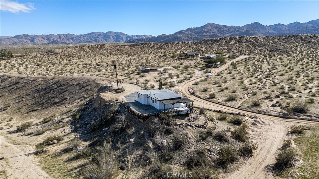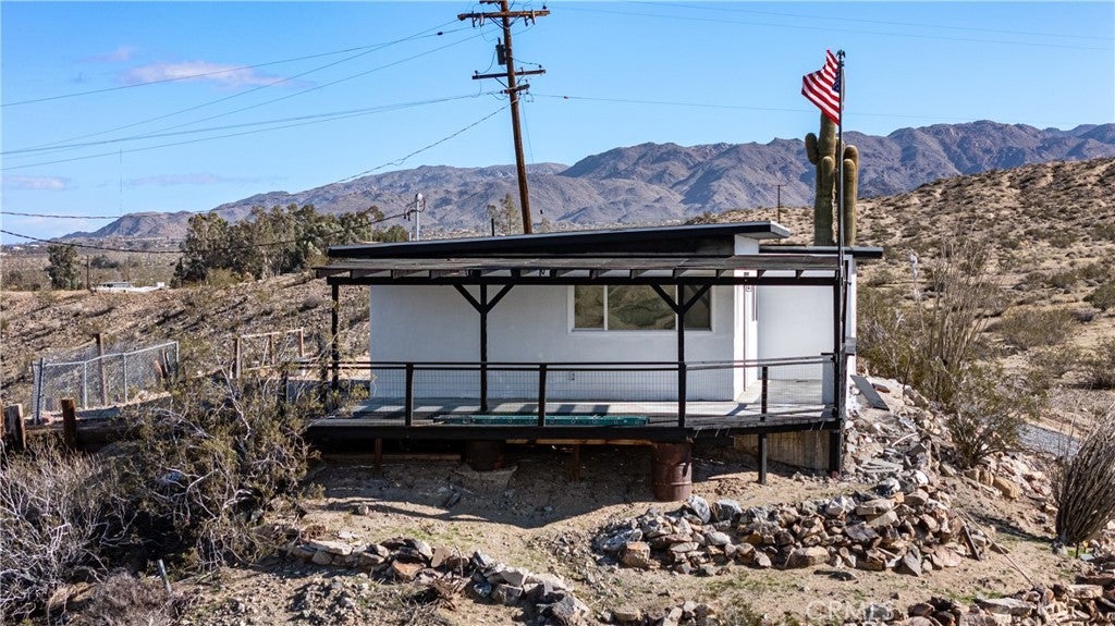 Welcome to a rare desert gem on 5+ acres in Twentynine Palms offering panoramic mountain views and boundless possibilities. This single-story ranch-style home features 2 bedrooms and 1 bathroom with a functional layout, tile flooring throughout, and plenty of natural light. Enjoy classic desert living with a spacious yard, tranquil setting, and a private view deck — perfect for stargazing and sunset gatherings. Ideal for investors, creatives, or those dreaming of a serene getaway close to Joshua Tree National Park. No HOA and abundant room for expansion, RV parking, outdoor projects, or accessory buildings. Discover desert living with space to roam and room to reimagine. This home is accessed via a quiet unpaved road enhancing the property’s privacy and authentic high-desert feel.